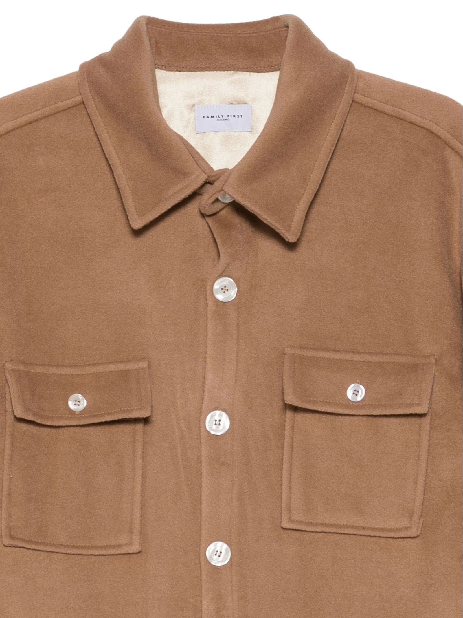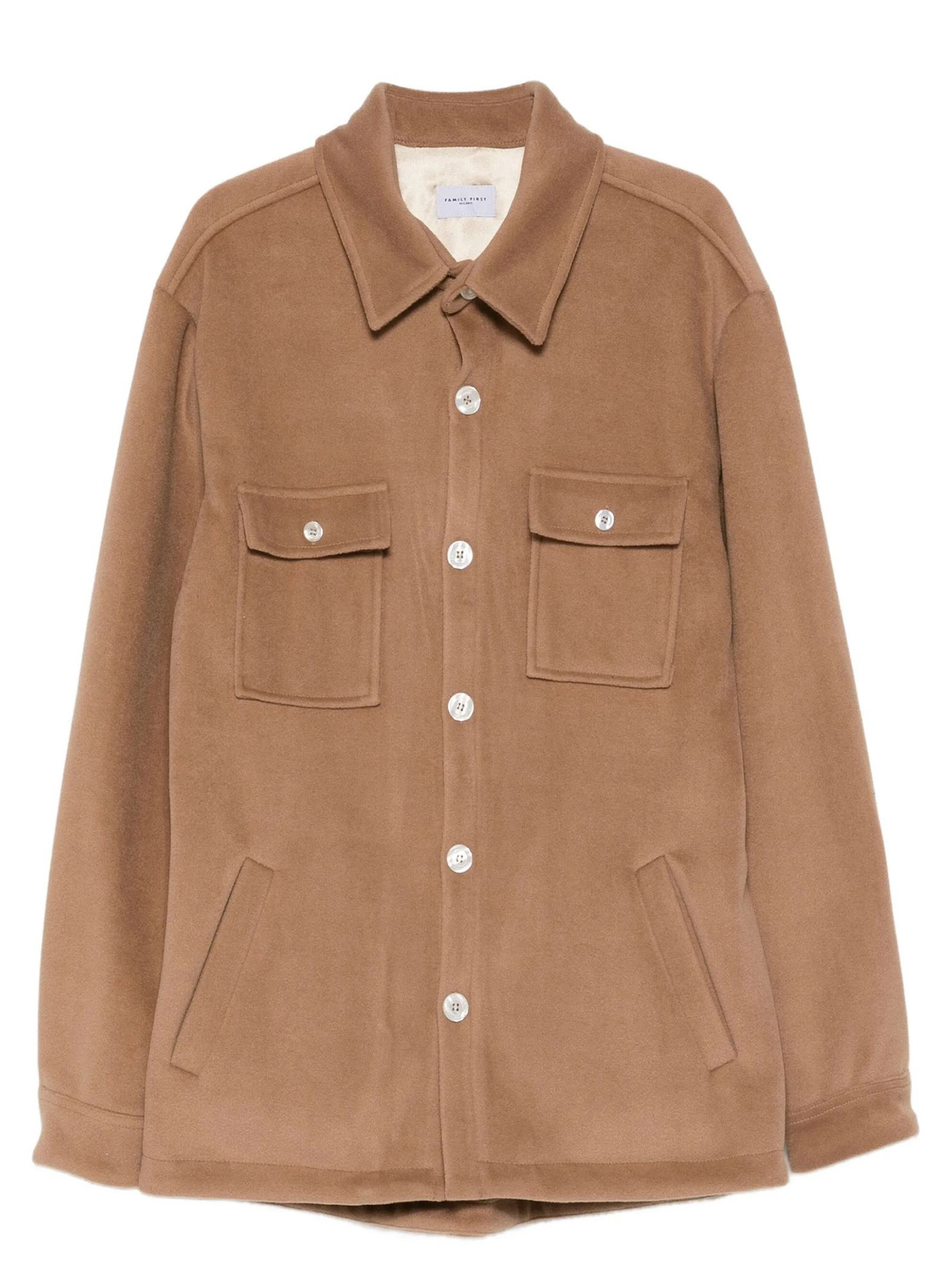 Caramel brown Jacket, button fastening, point collar, long sleeves, buttoned cuffs, chest pockets