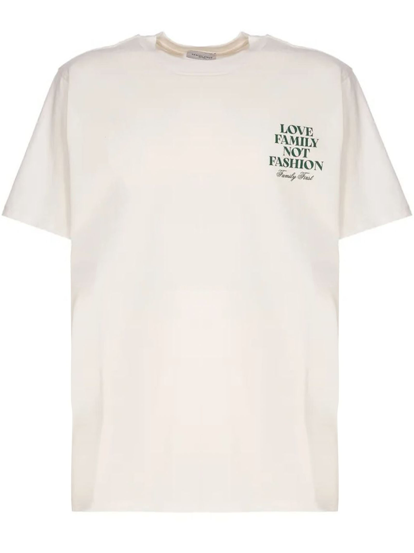 White cotton T-shirt featuring short sleeves, front logo, crewneck