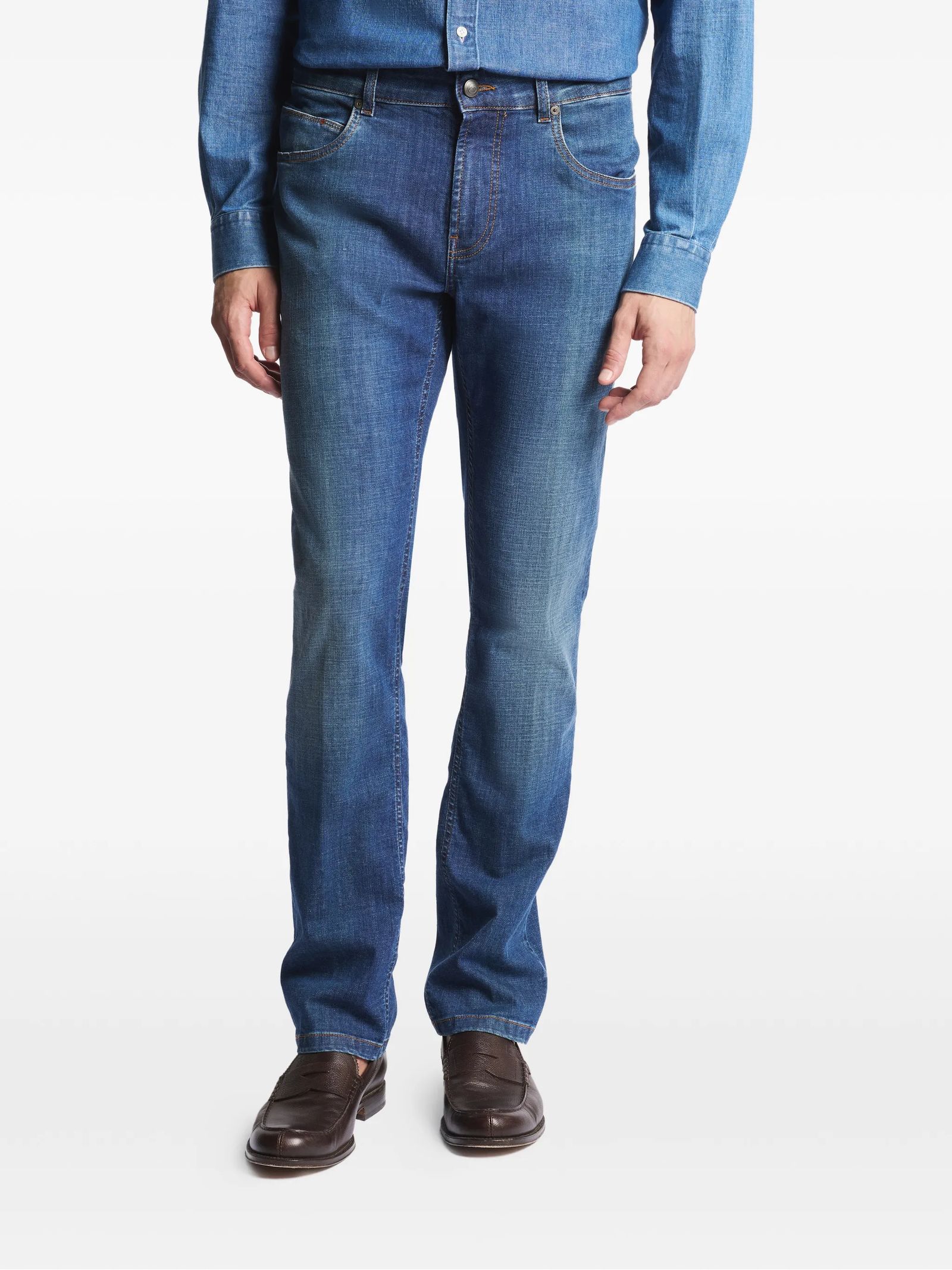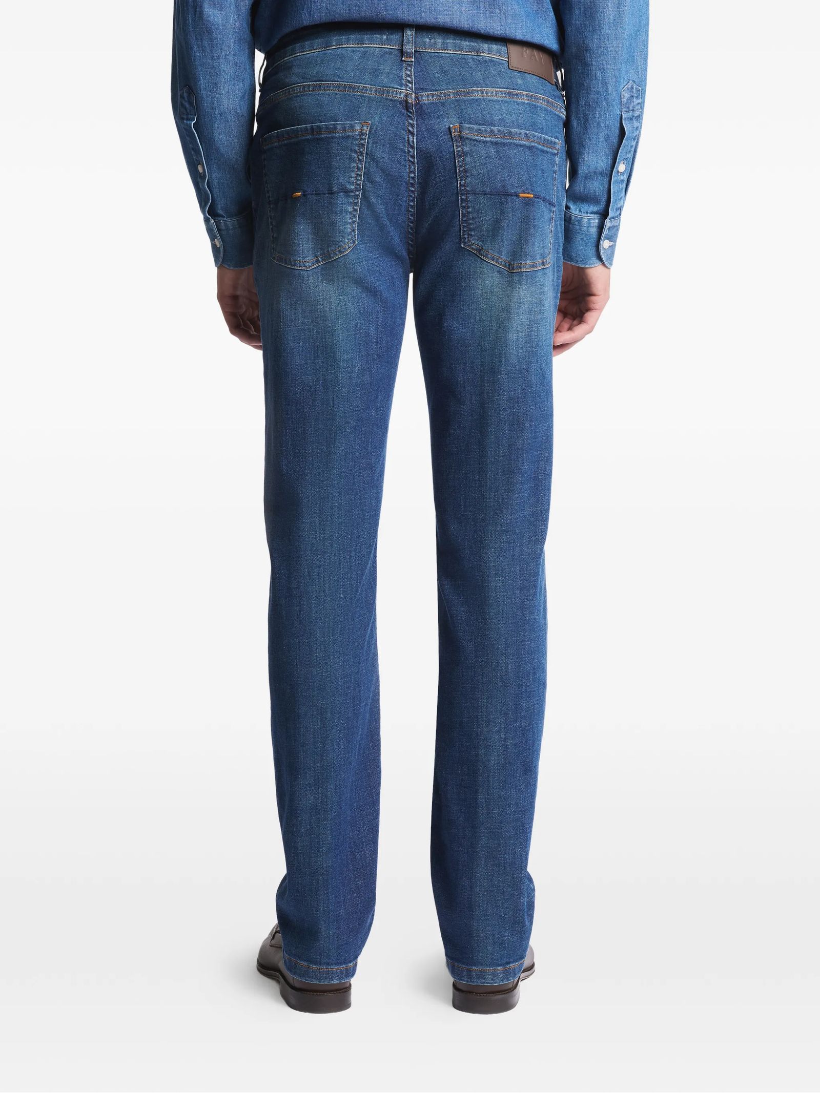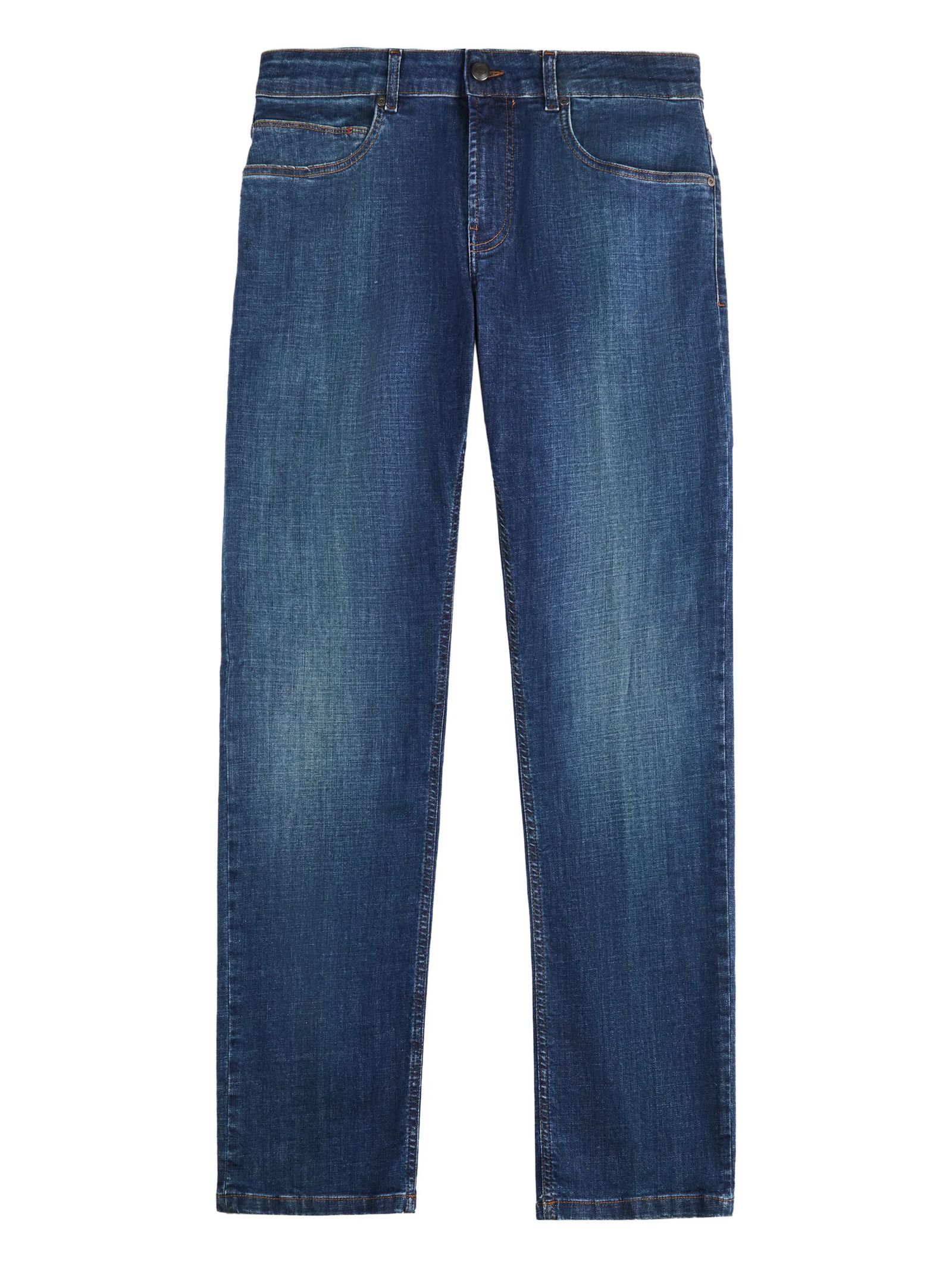Slim-fit 5-pocket jeans in slightly stretch denim, with the leather Fay tag on the back, Characterized by the distinctive front pockets with rivets, coin pocket and patch back pockets, they feature a zip and stud button fastening