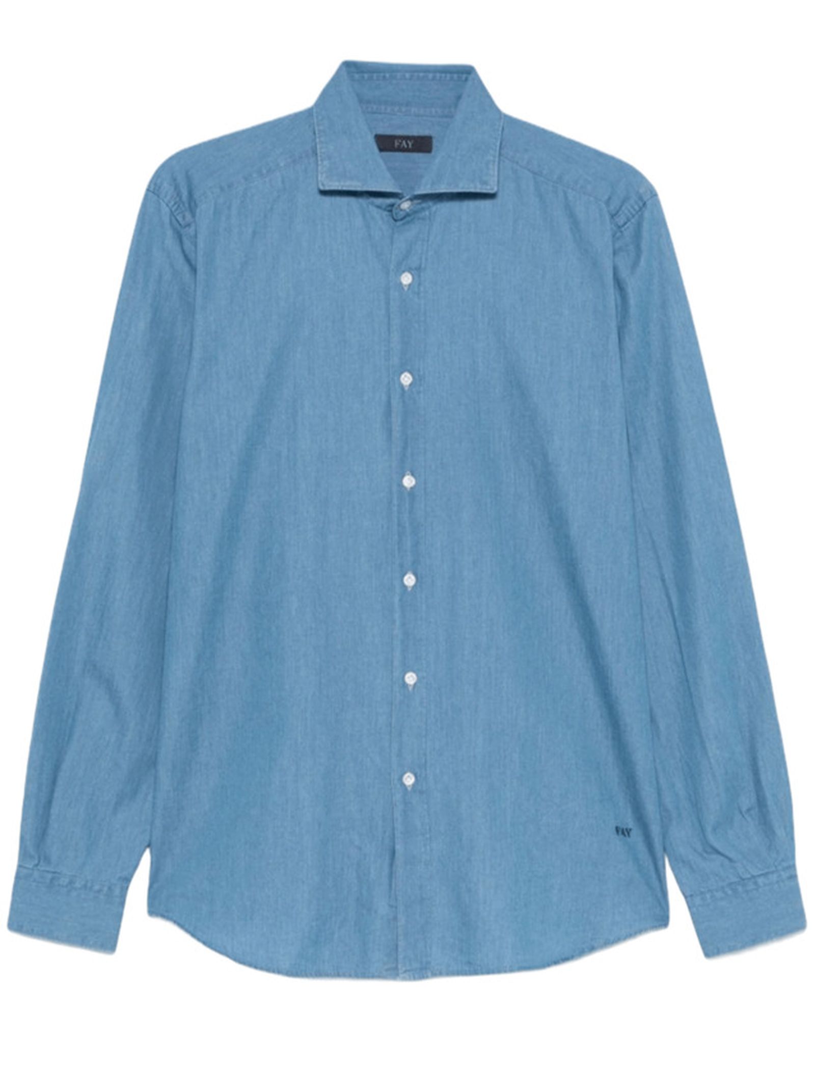 Light blue denim shirt with French collar and button-down placket. A timeless casual piece, embellished with the Fay logo embroidered on the bottom.