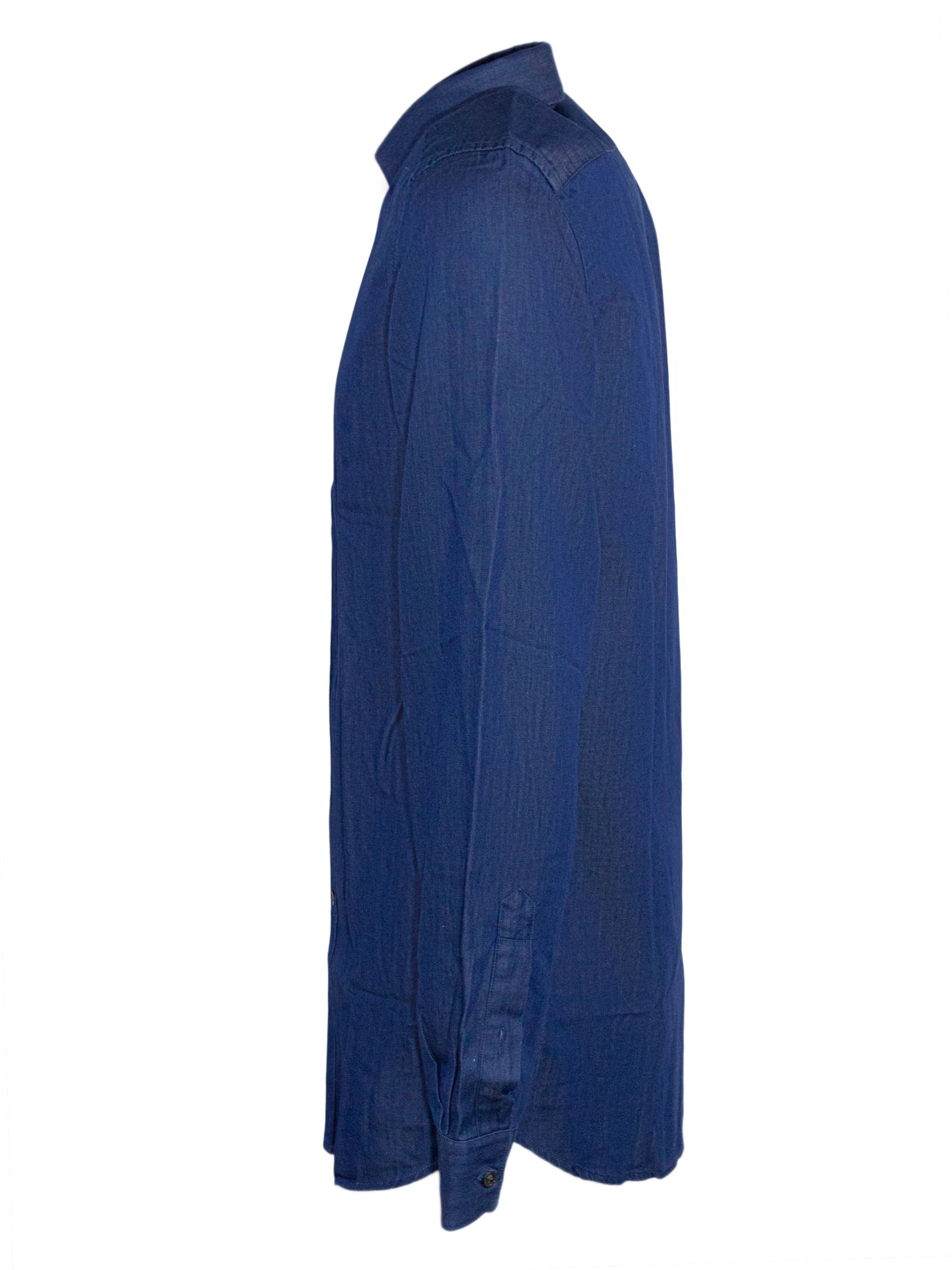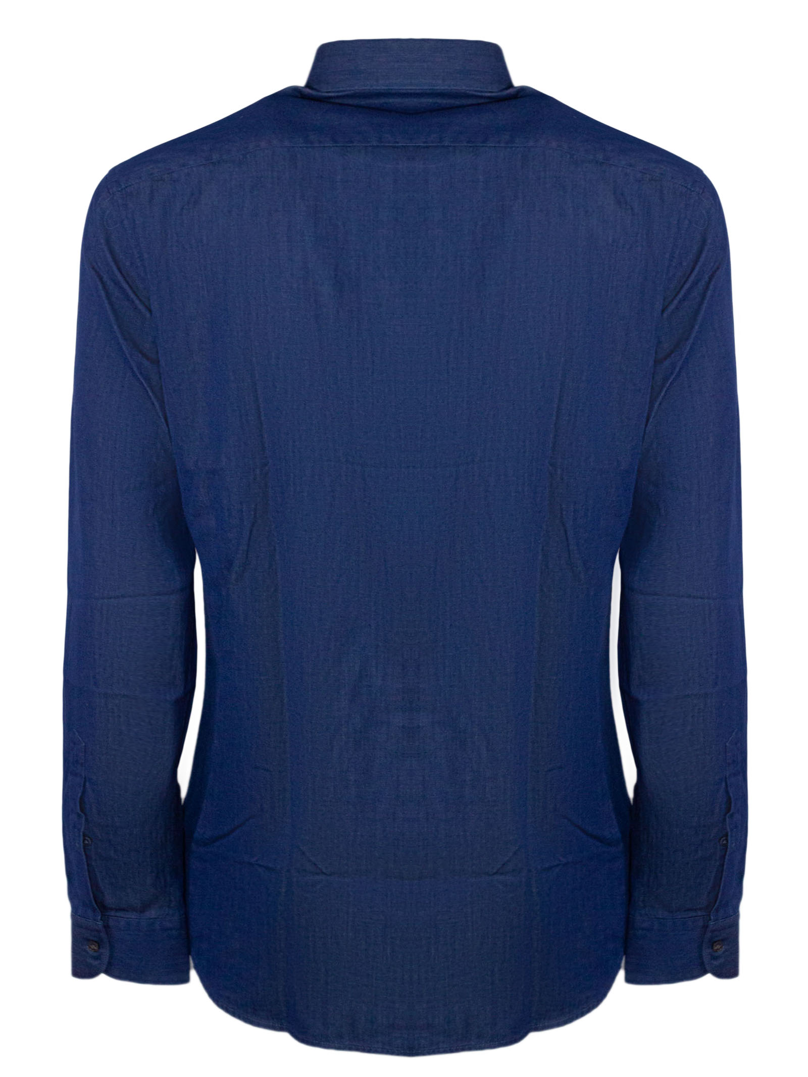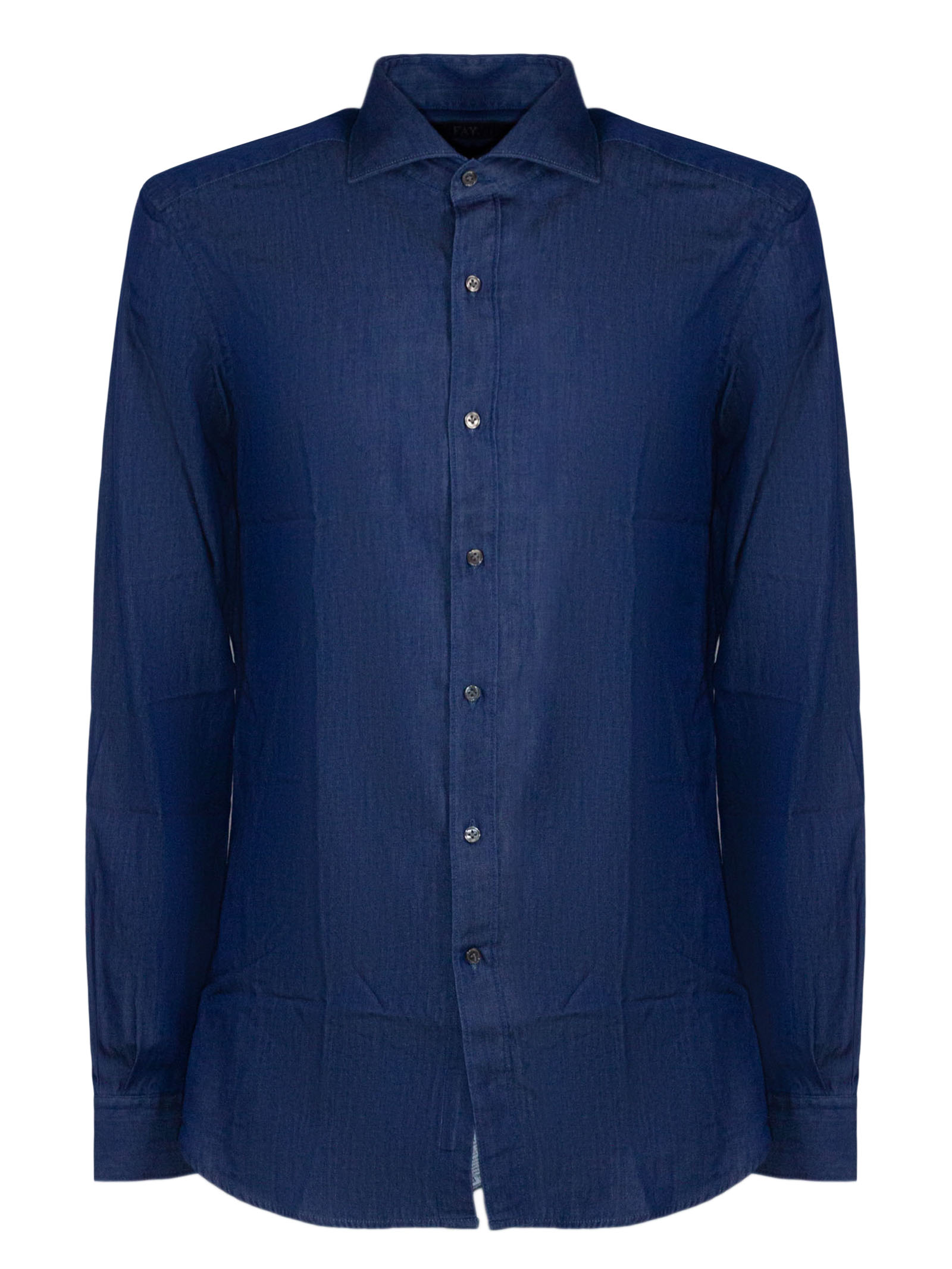 Regular fit blue denim shirt, French collar, button-down placket, embellished with embroidered Fay logo at the bottom, regular fit