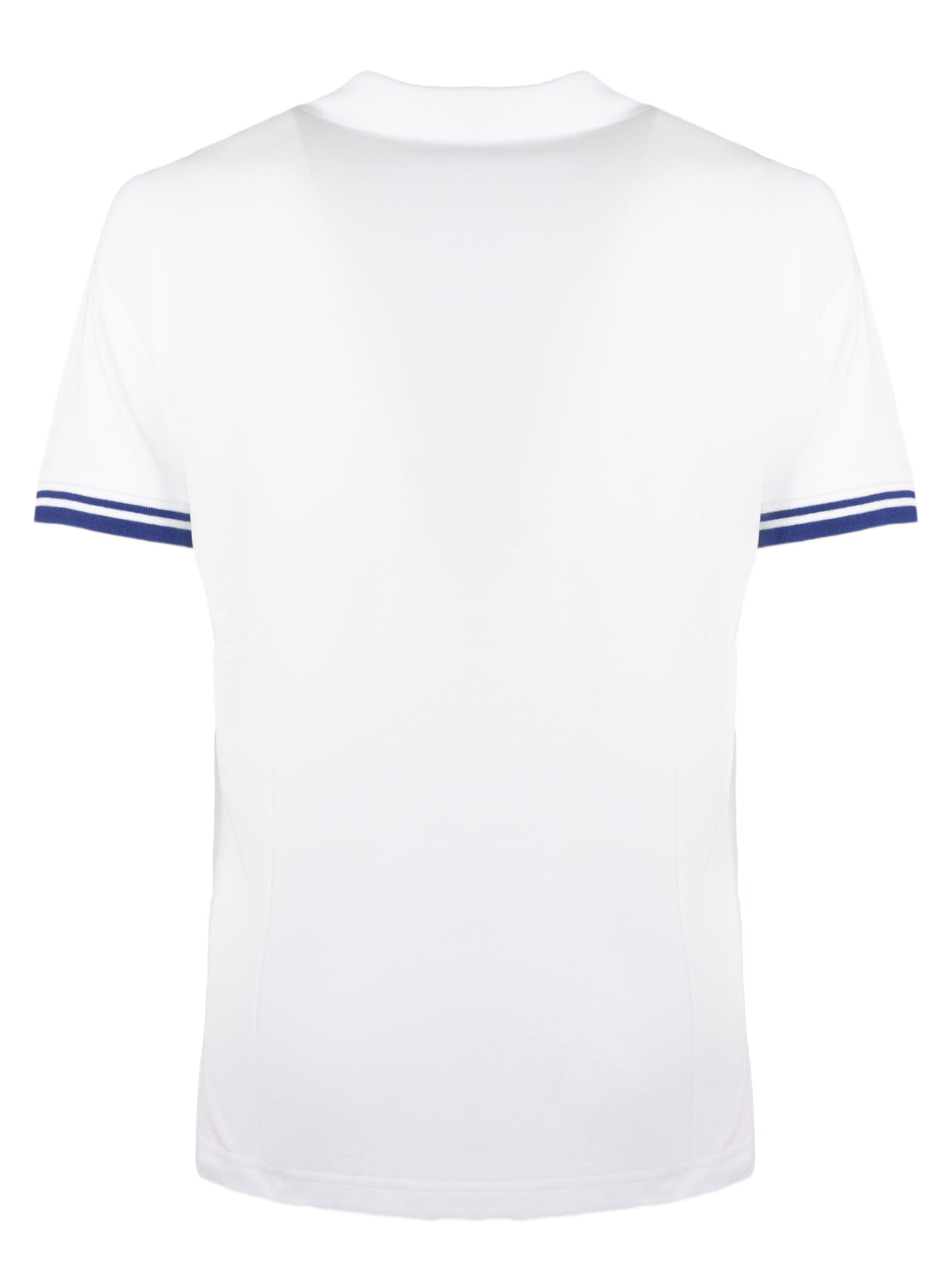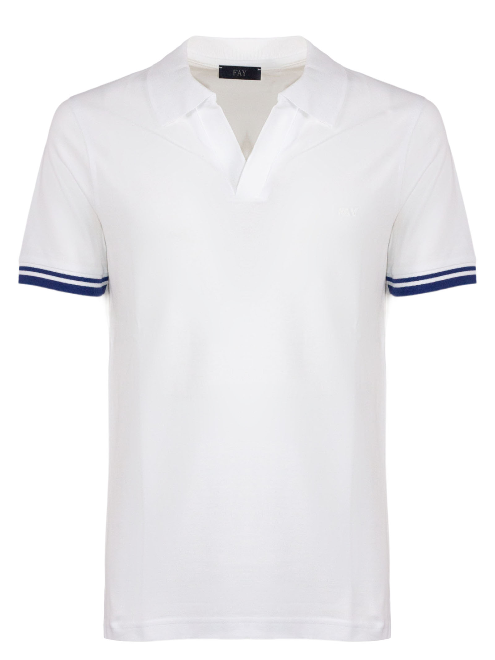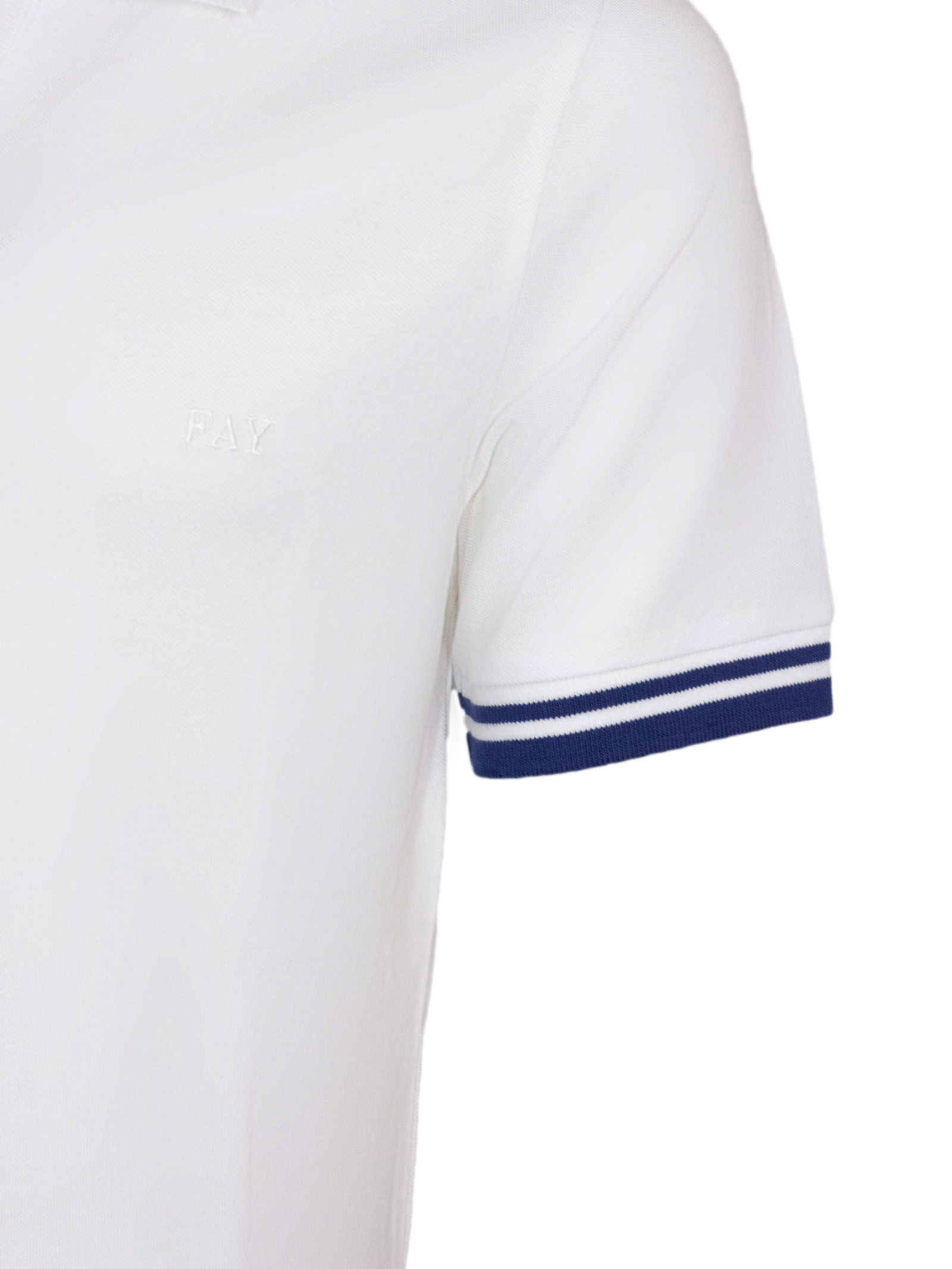 Slim-fit short-sleeved polo shirt crafted in stretch piquet, with contrasting trim, characterized by a ribbed collar with double construction, it is enhanced by the Fay logo embroidered on the chest