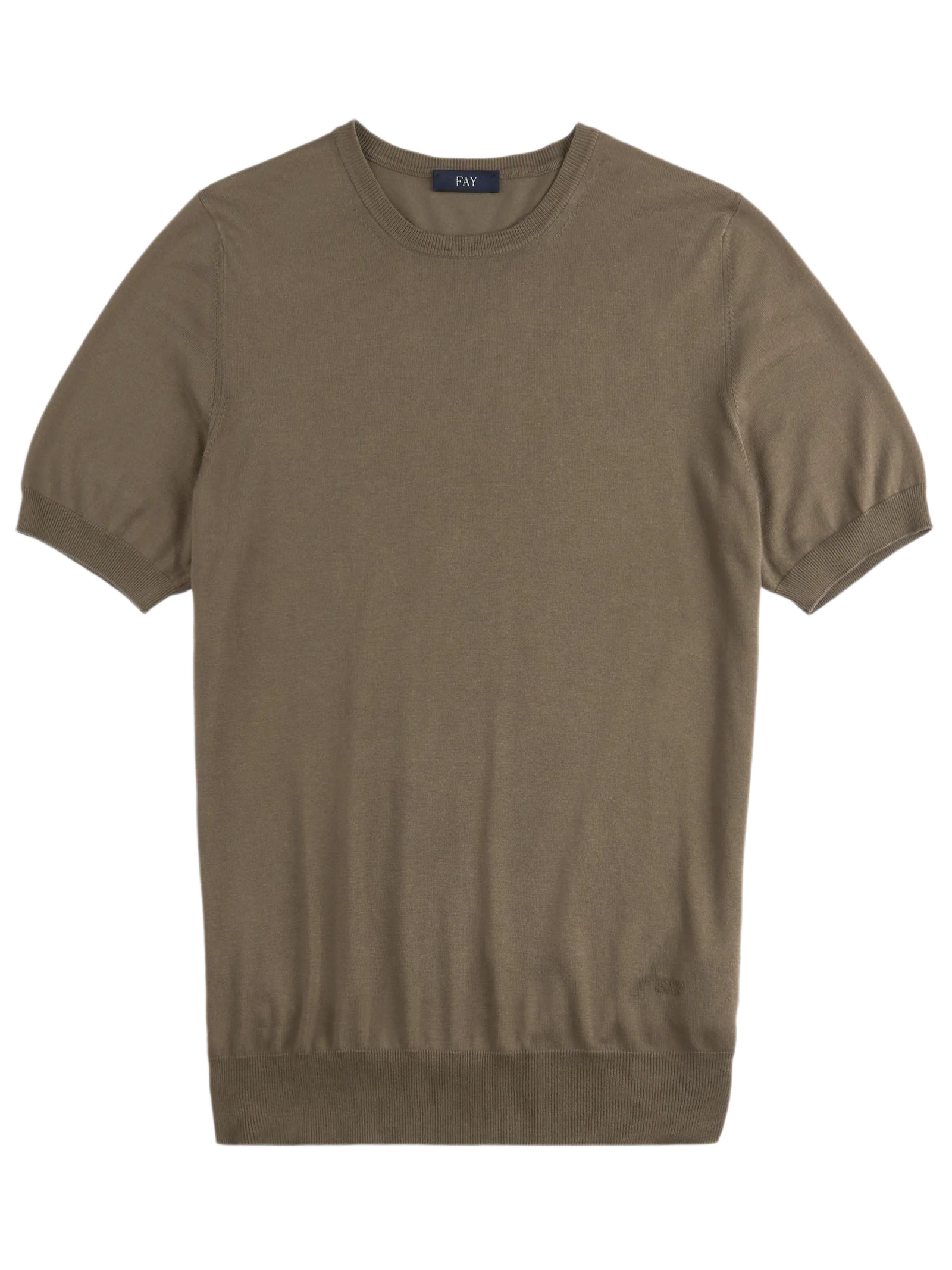 Short-sleeved T-shirt crafted in cotton shaved knit with frosted garment-dyed treatment. This refined casual garment is enhanced by the Fay logo embroidered on the bottom