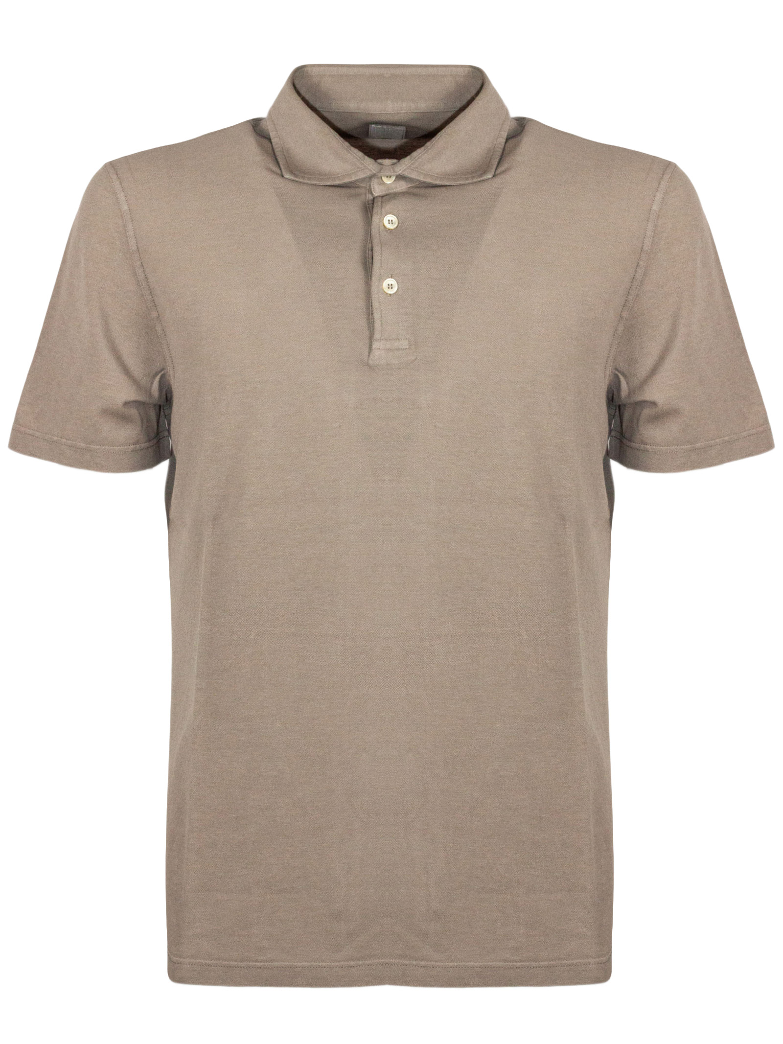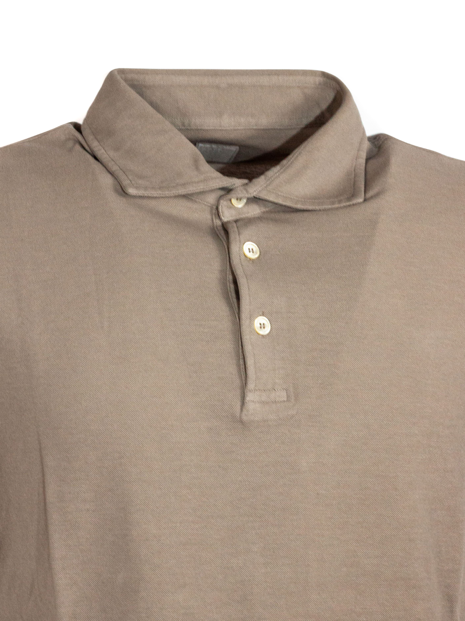 Beige Cotton Piquet Polo, Worked Details, Ribbed Details, Mother Of Pearl Buttons
