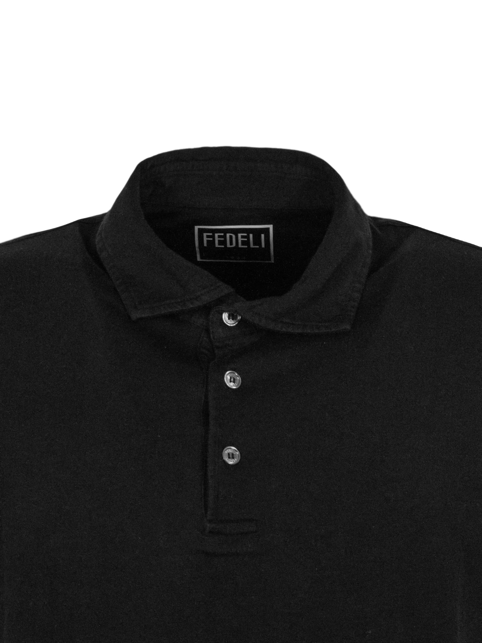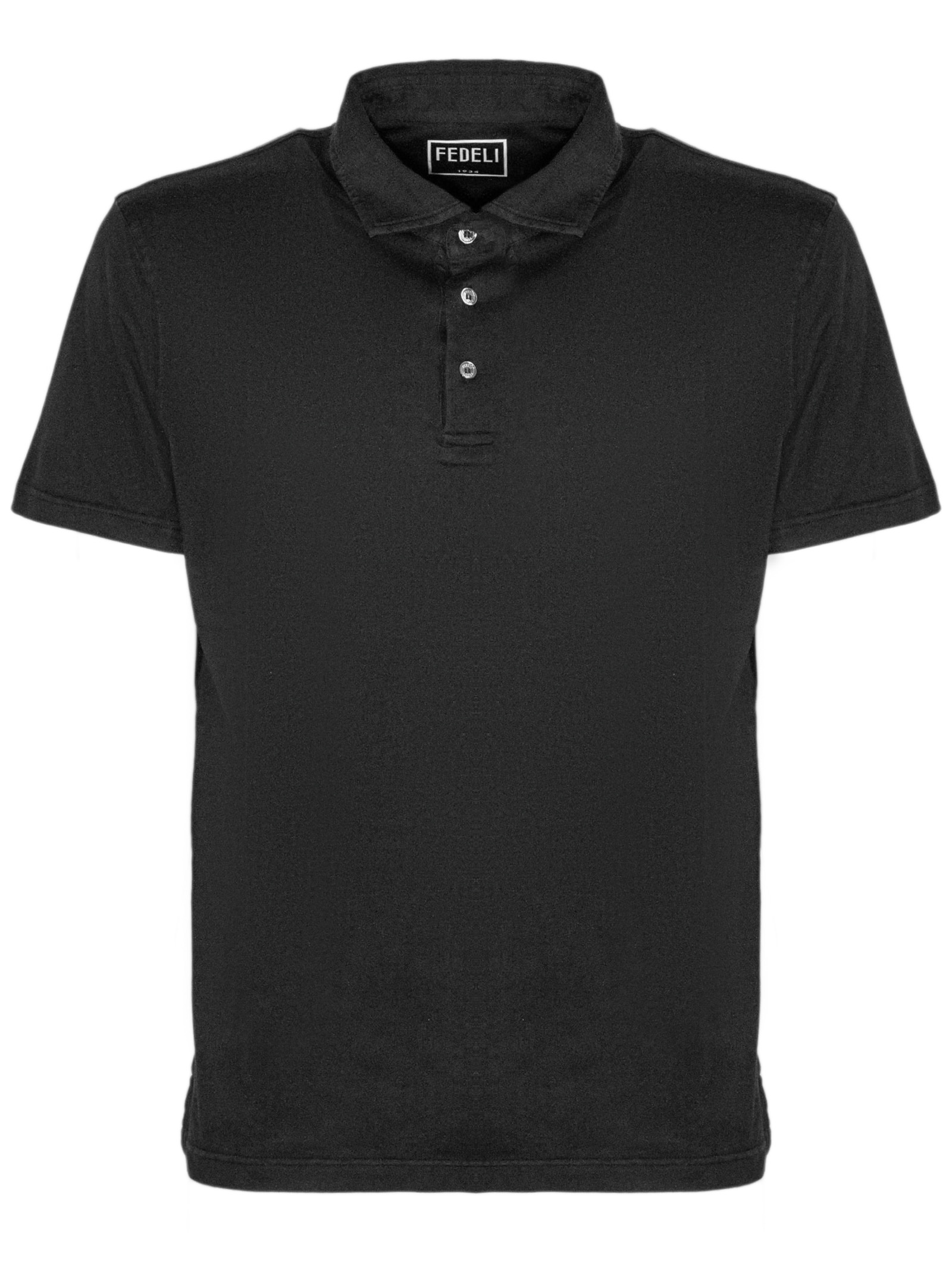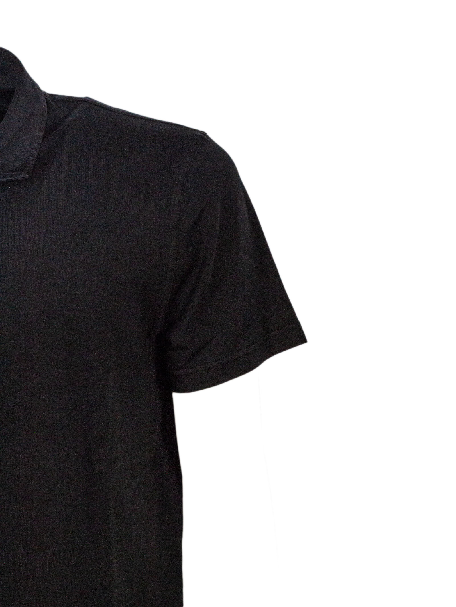 Black cotton polo shirt with a classic collar, button fastening and short sleeves