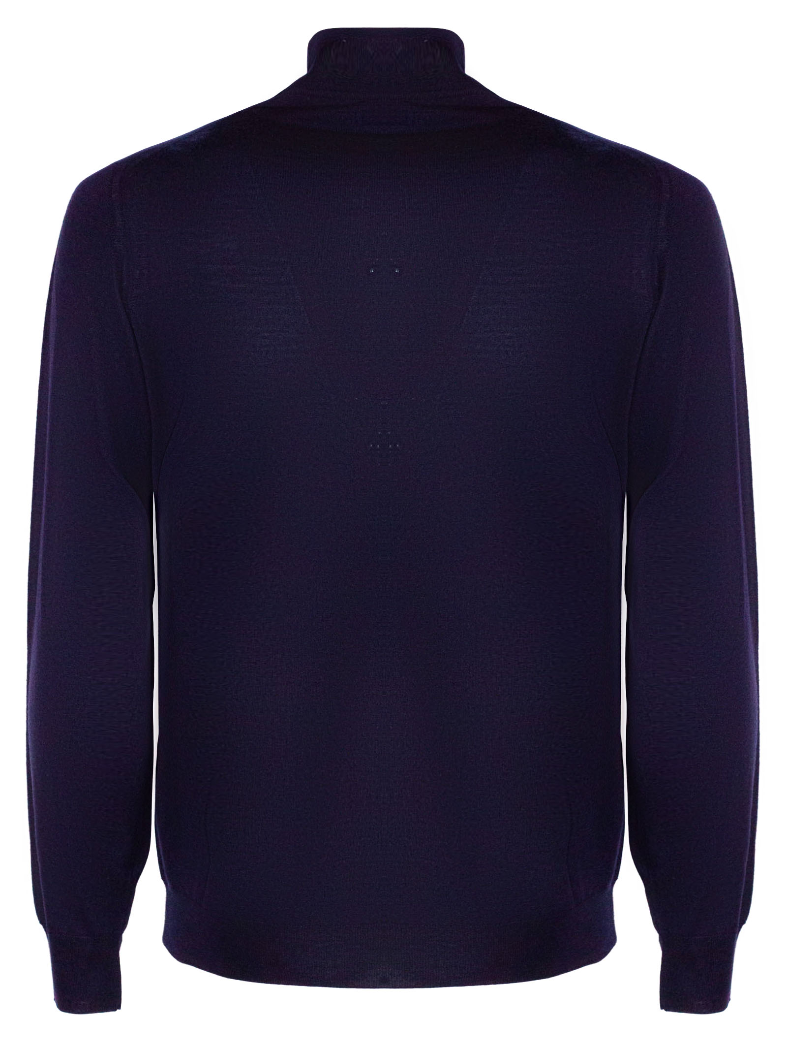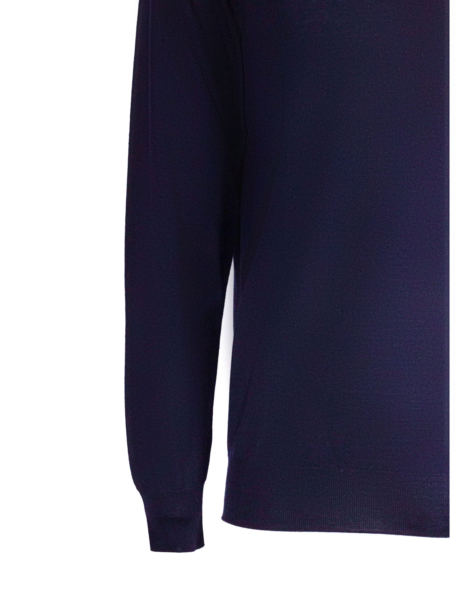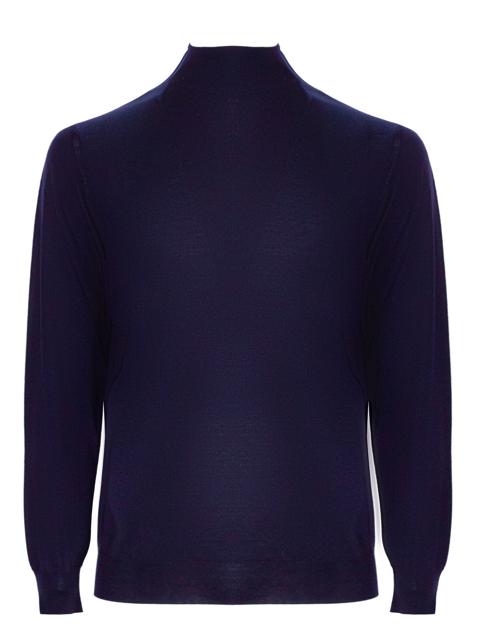Blue 140S virgin wool jumper with high neck, long sleeves and ribbed trim