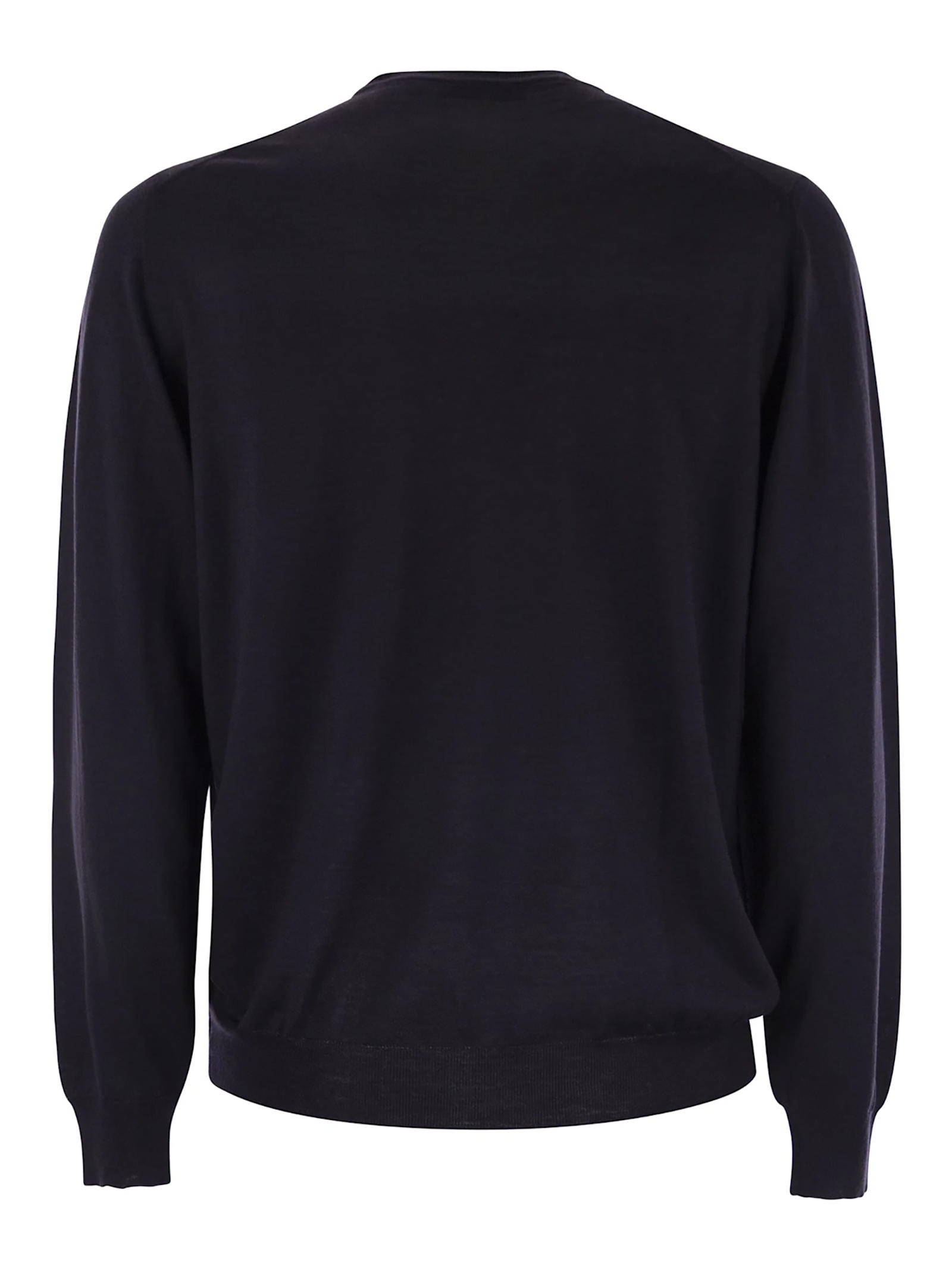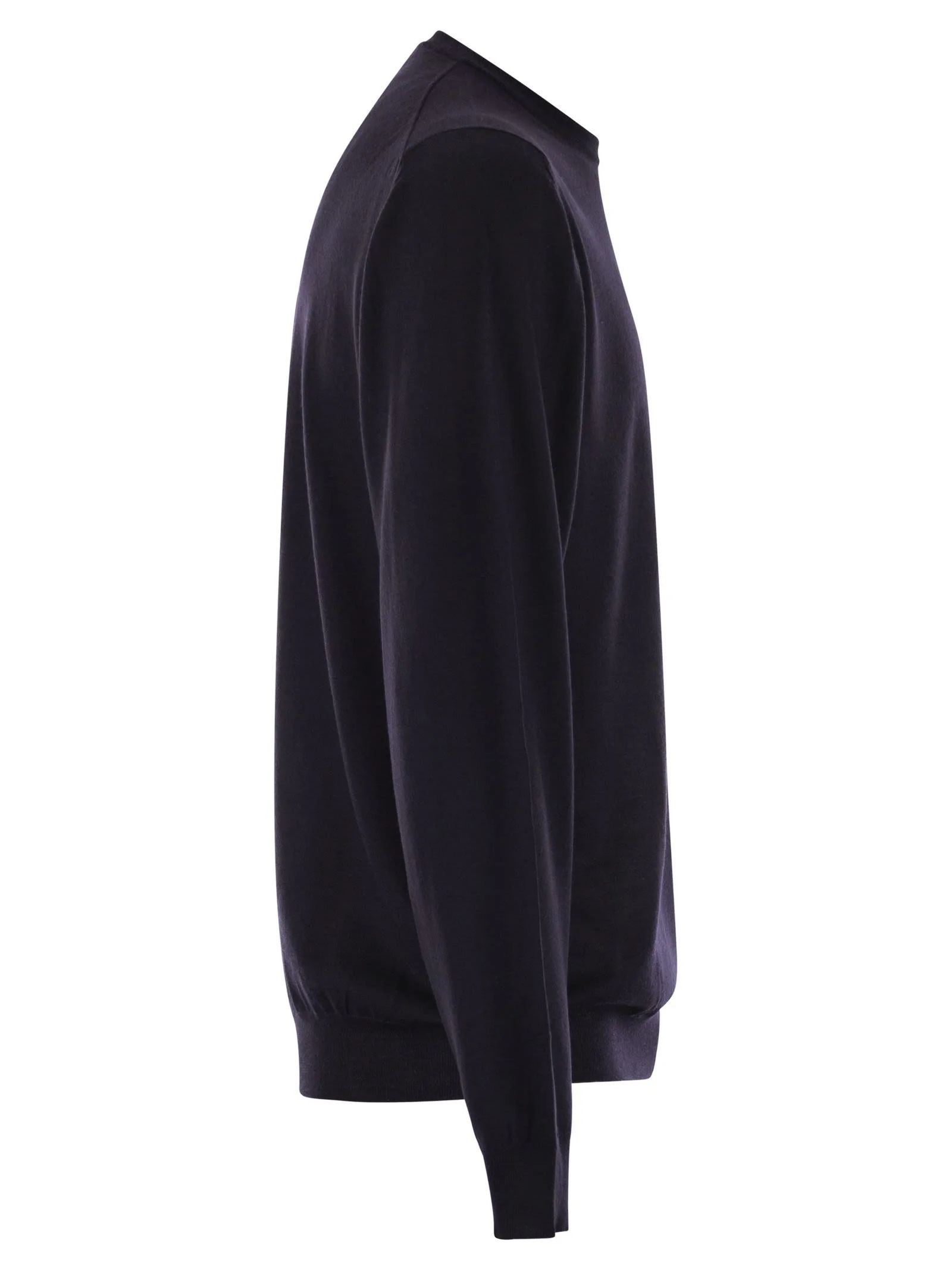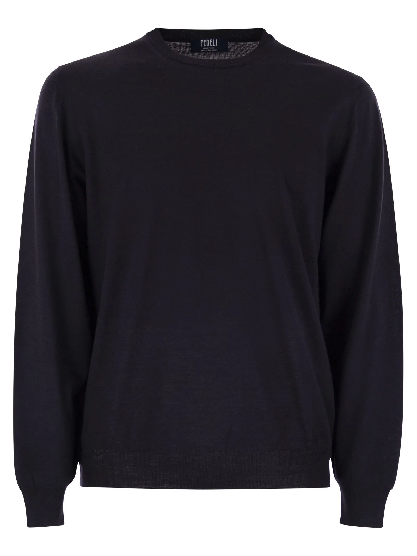 Dark blue superfine wool sweater, crew neck, long sleeves, shaved knit, 18 gauge