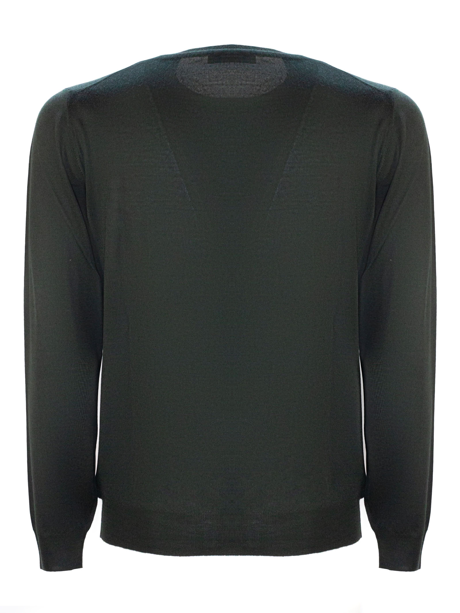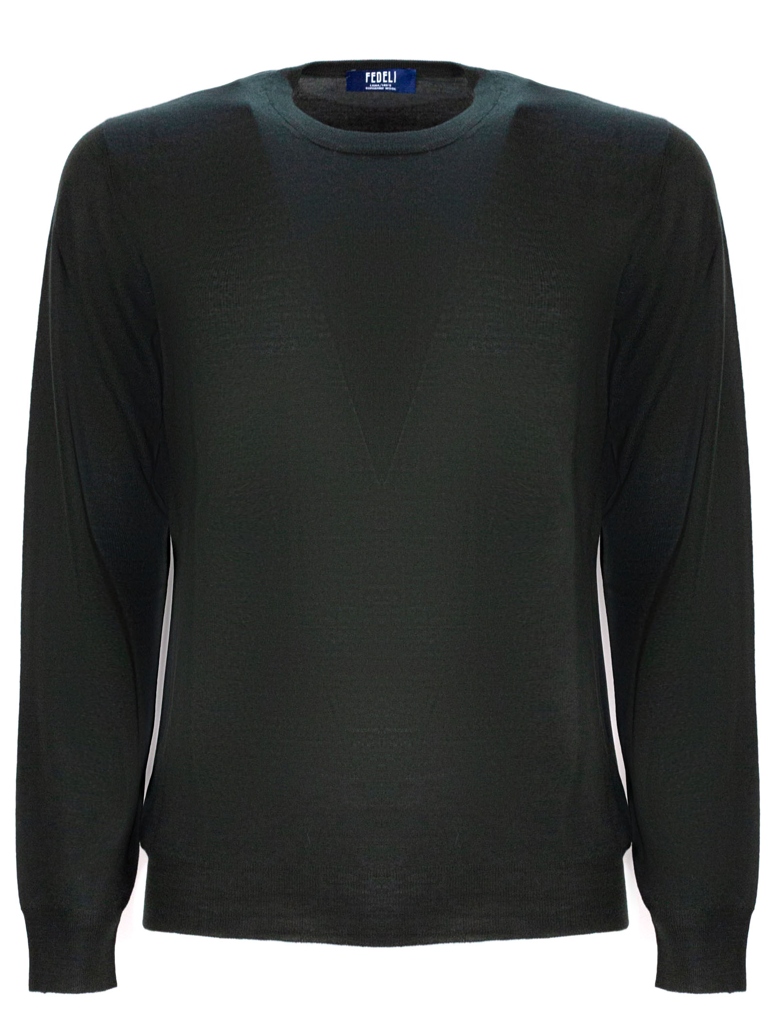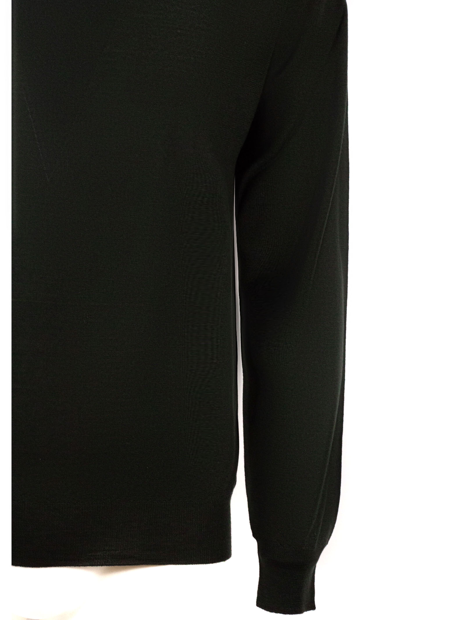 Dark green 140S virgin wool jumper with crew neck, long sleeves and ribbed trim