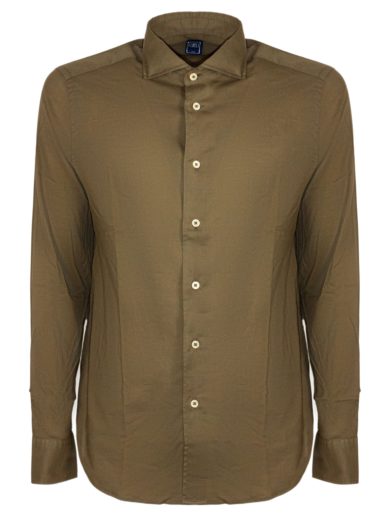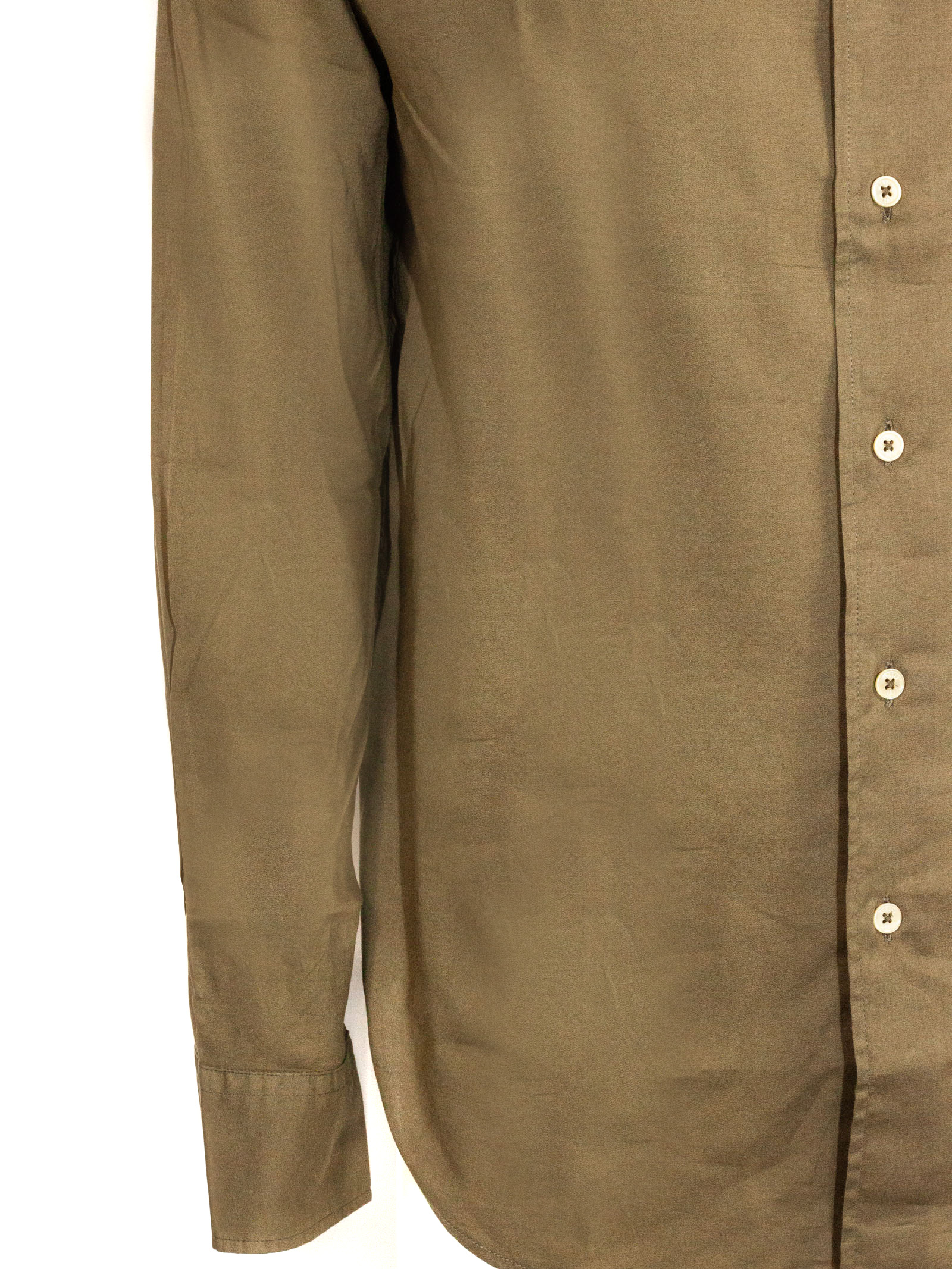 Green Cotton Voile Shirt, Super lightweight panamino cotton, With French neck and bottom box cut, Piece-dyed, with pinces