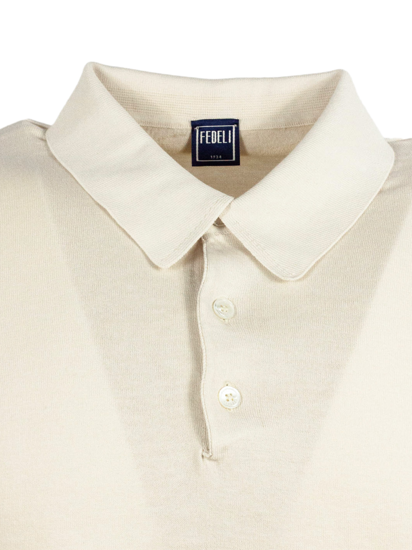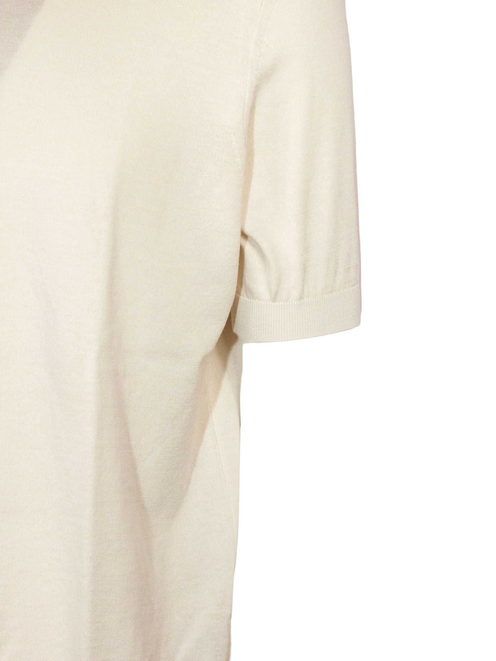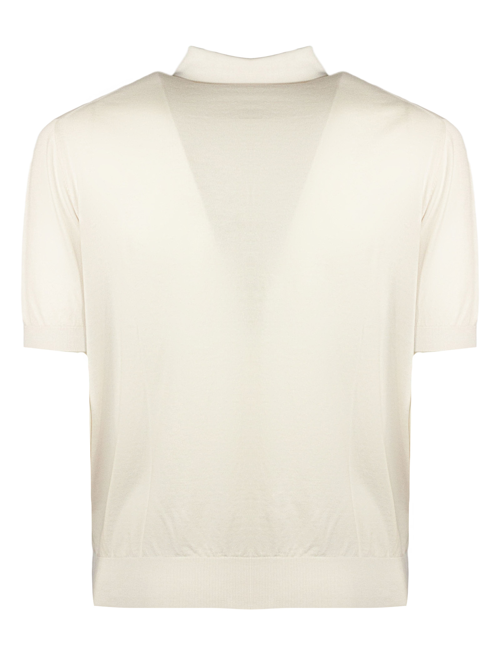 Light Beige Organic Cotton Short Sleeve Knit Polo, Buttoned front closure, Mother-of-pearl buttons, Garment-dyed, Plain stitch, 2 plies, 18 gauge