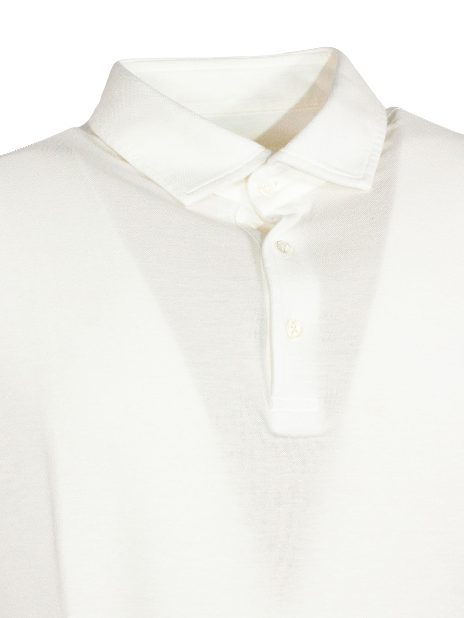 White Cotton Piquet Polo, Worked Details, Ribbed Details, Mother Of Pearl Buttons