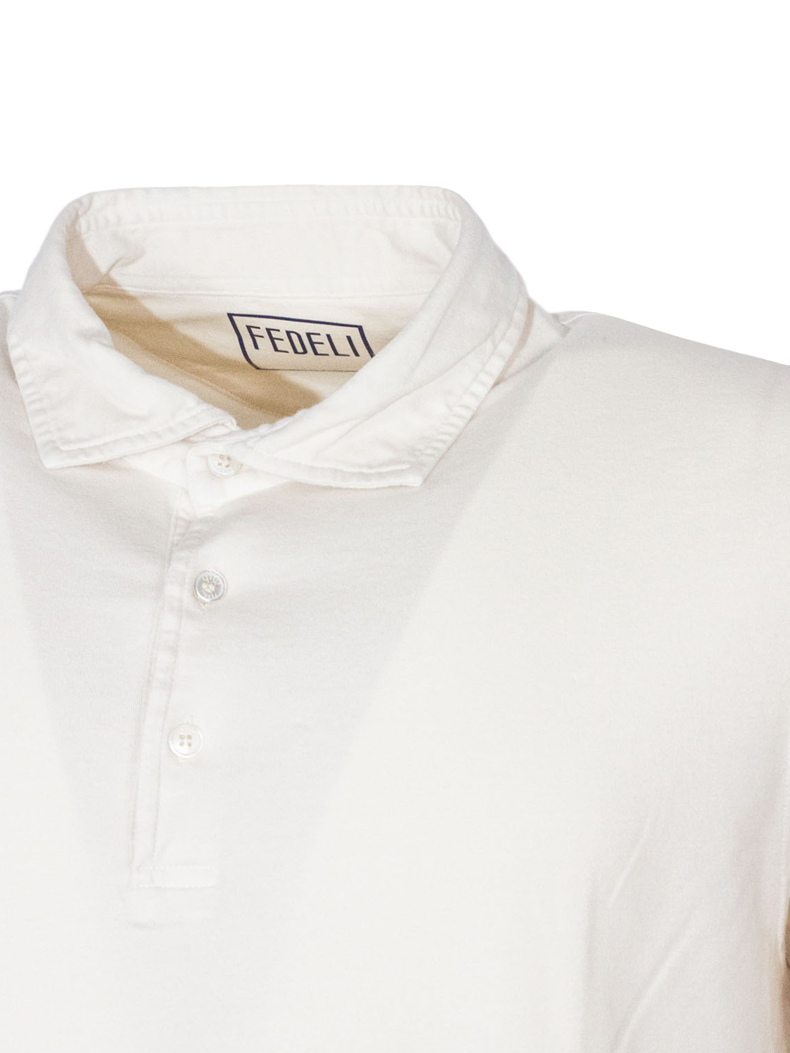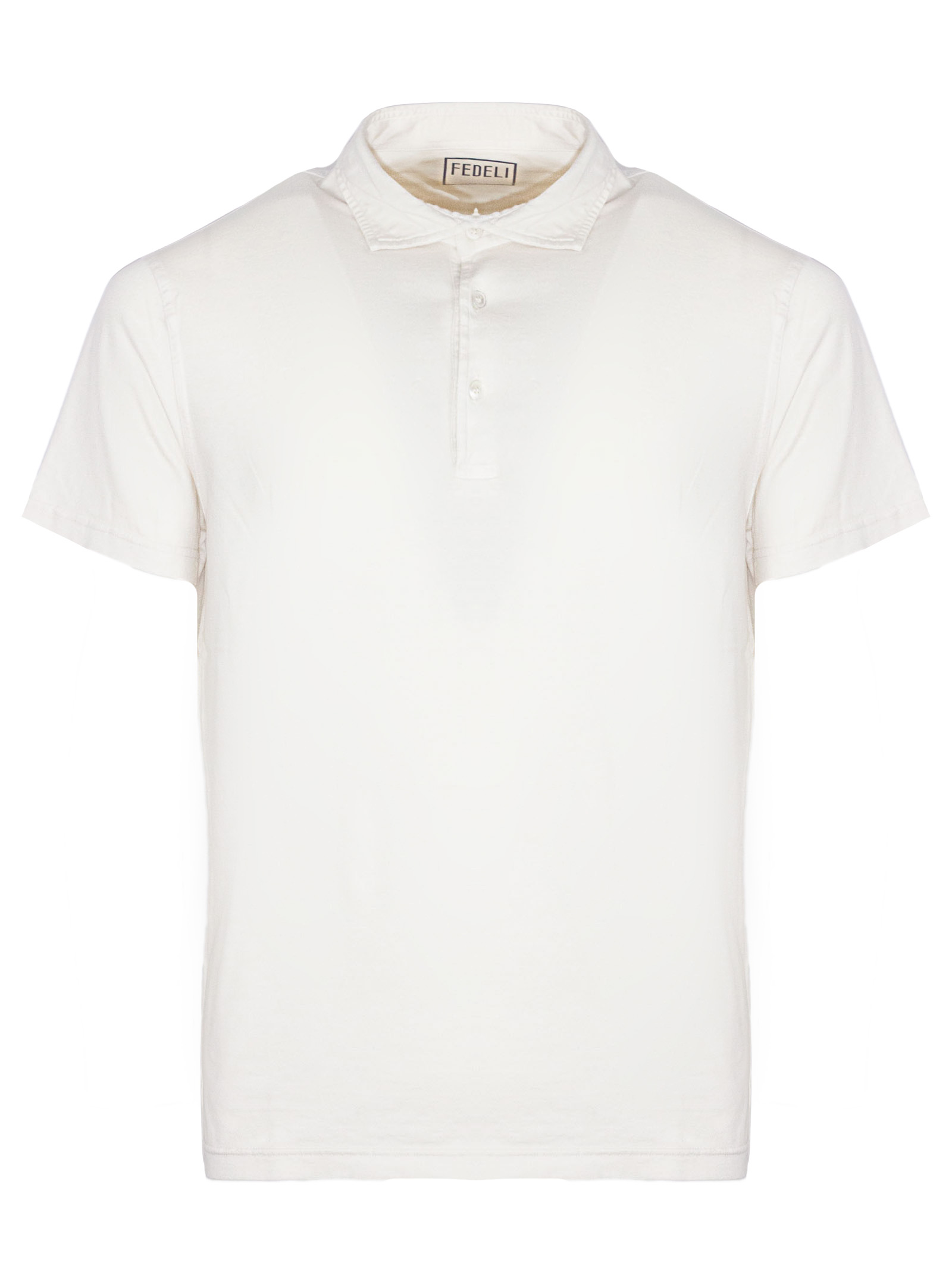 White cotton polo shirt with a classic collar, button fastening and short sleeves