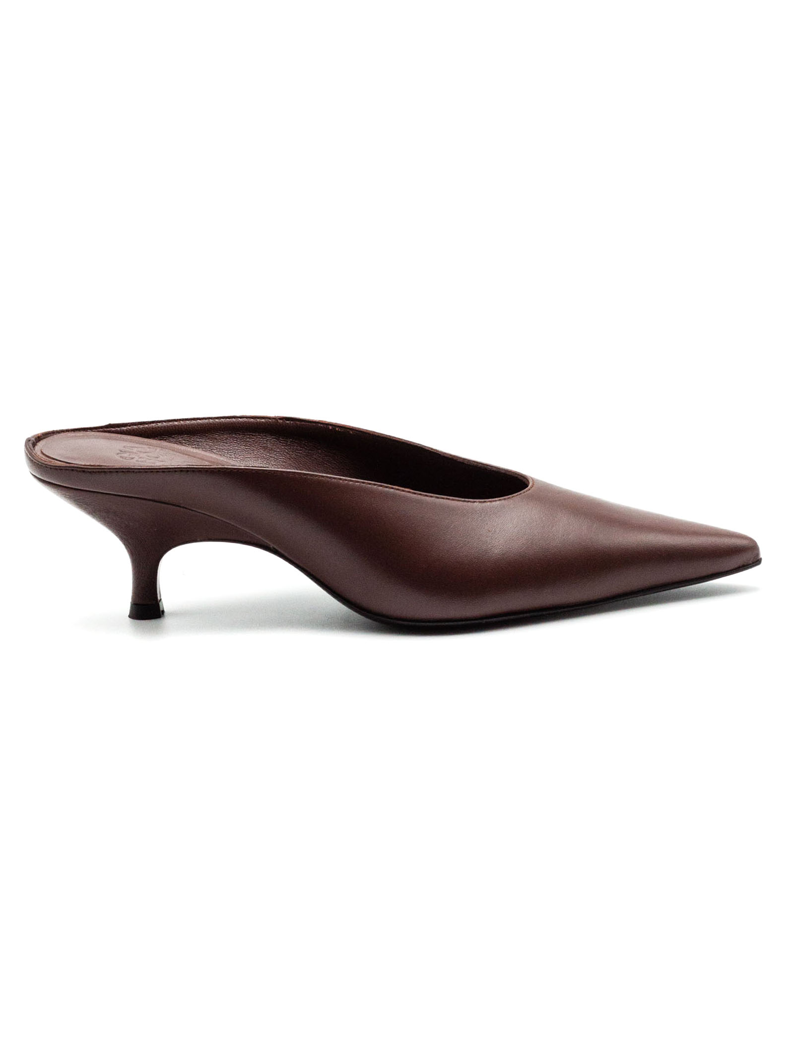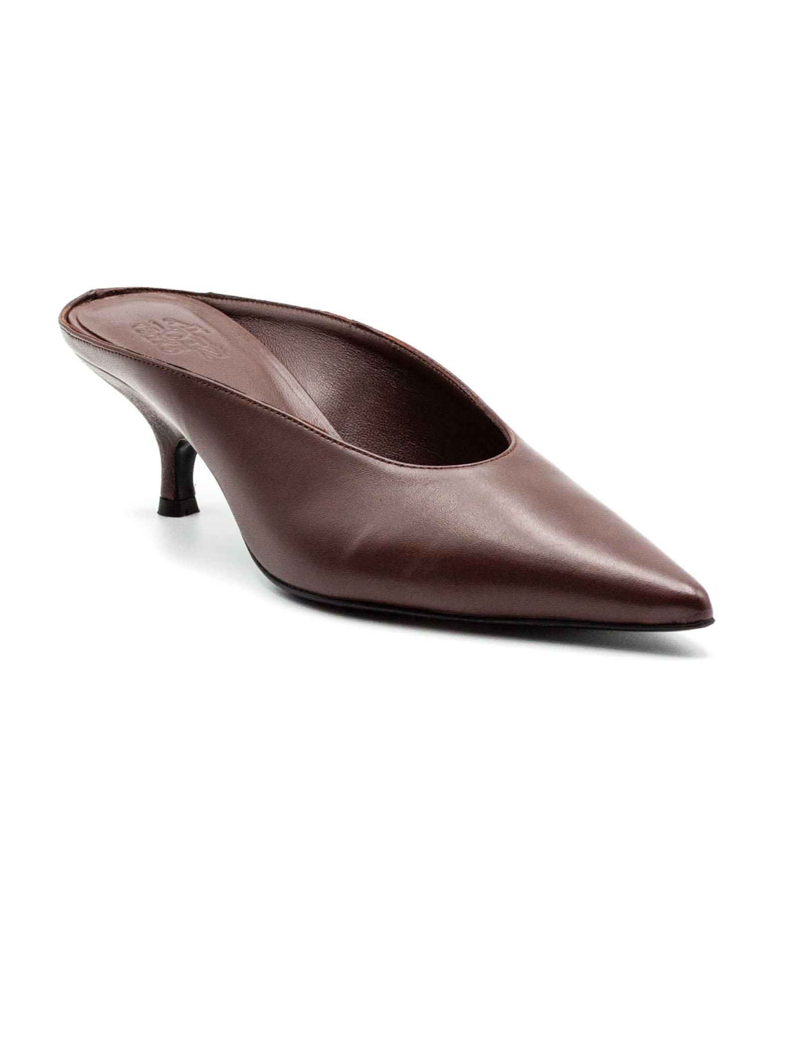 Brown Sabrina nappa leather mule, pointed toe, leather sole with logo, heel height 50mm, Leather 100%