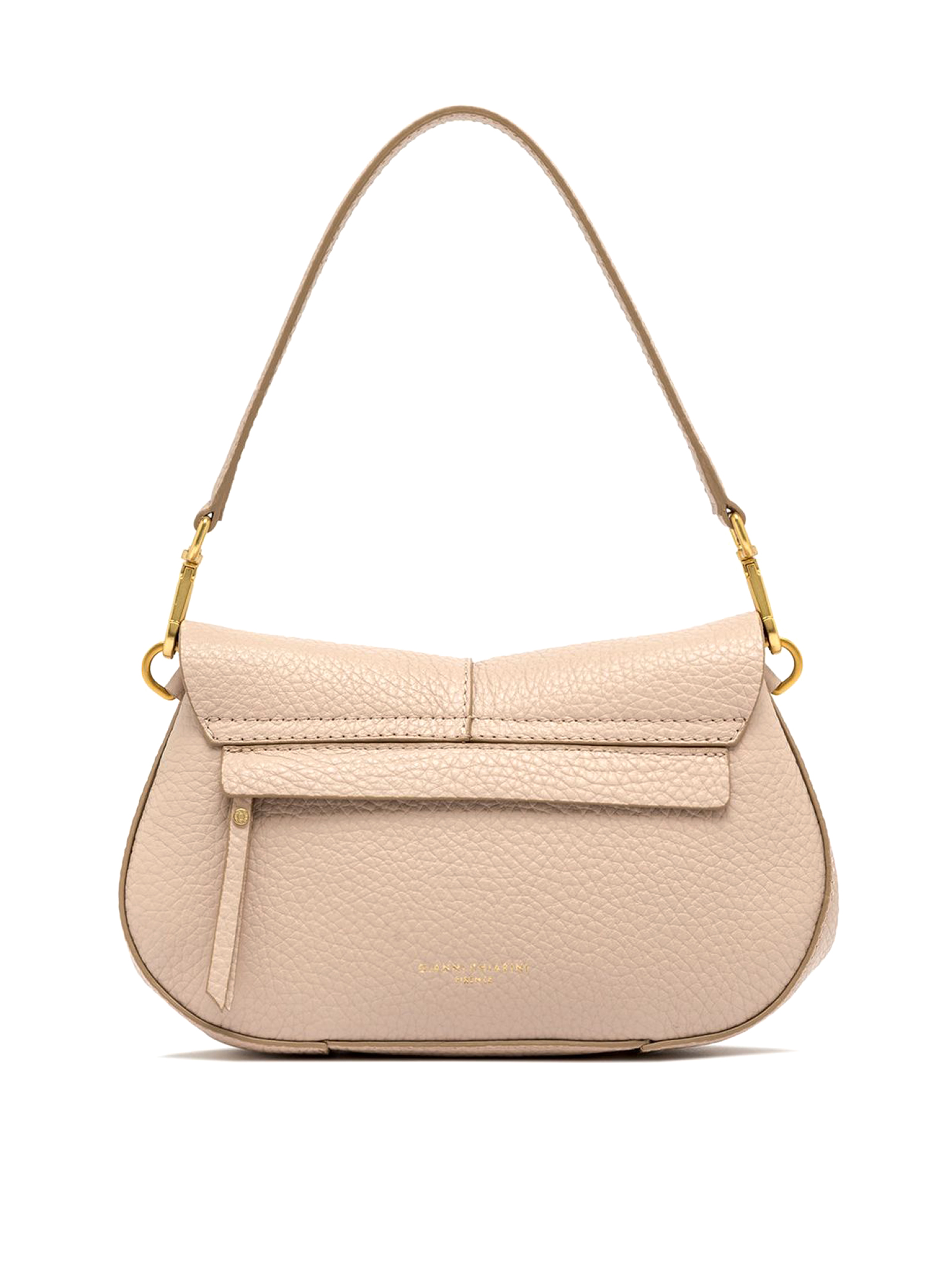 Helena Round in double pink bubble leather, with shoulder straps for dual carrying options. Practical and organised, it features a double internal compartment and a hidden pocket on the back of the bag, Dimensions: 28x16x7.5 cm