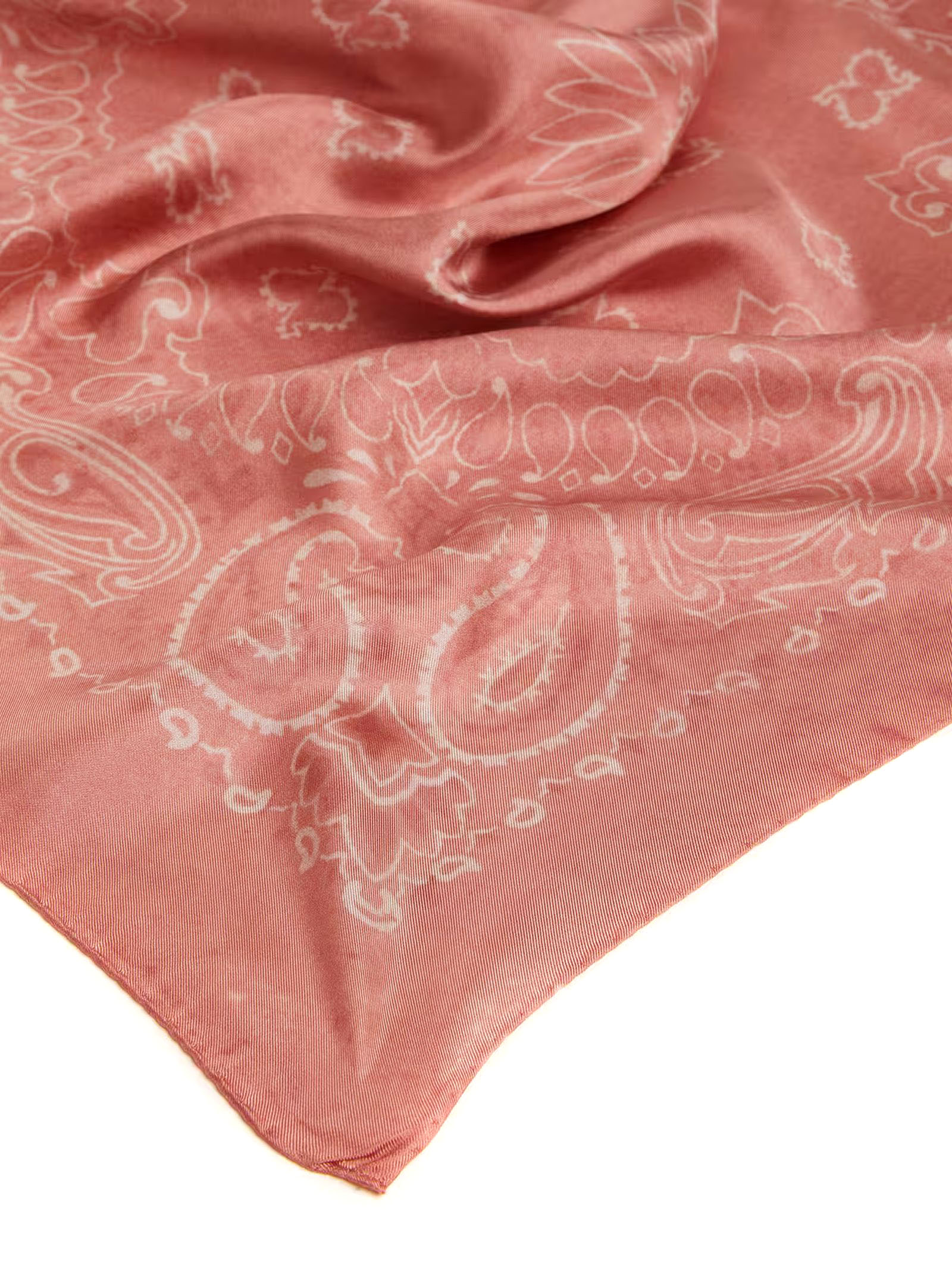Antique pink silk scarf with a paisley pattern, 70x70 cm