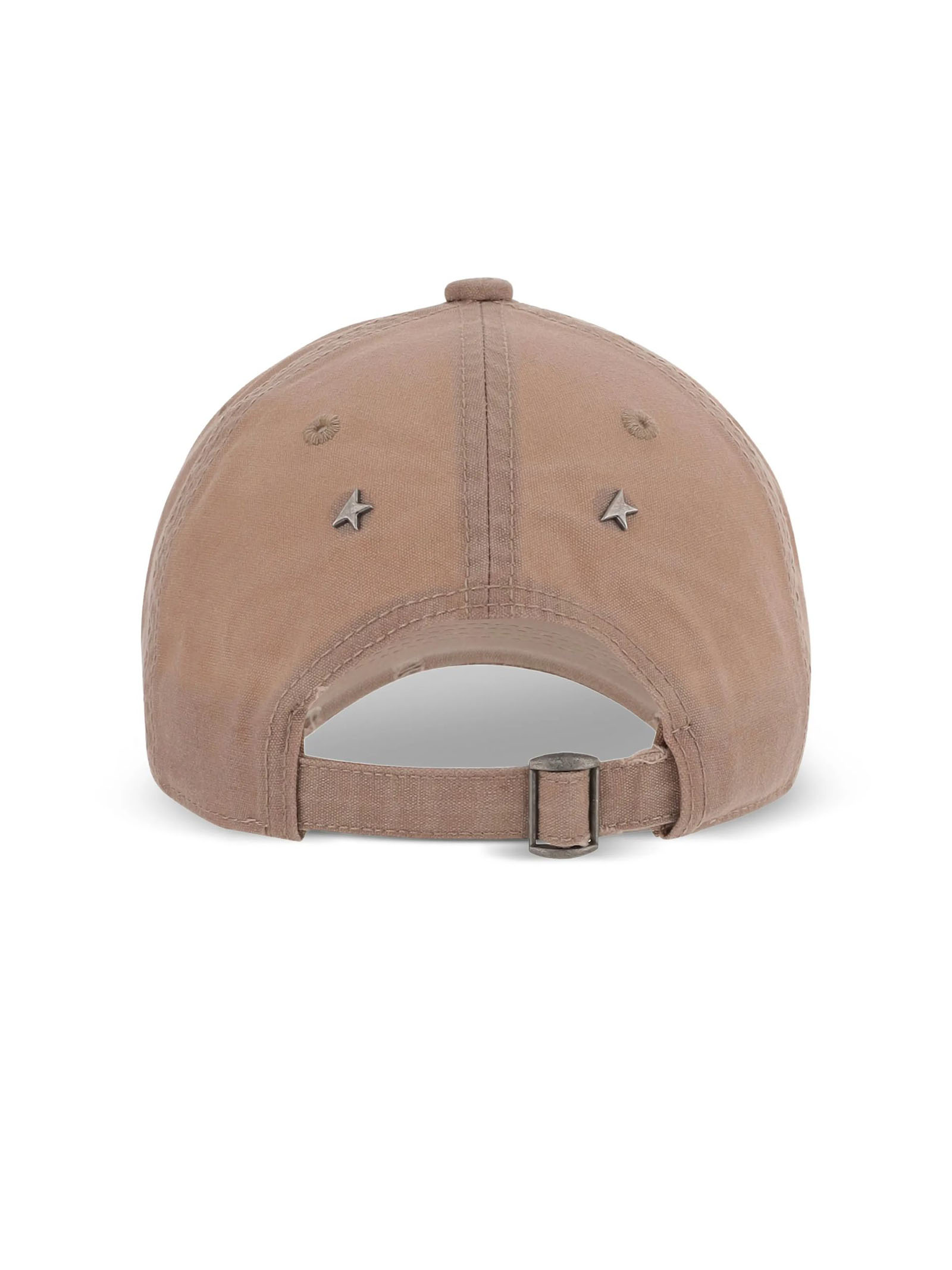 Beige cotton baseball hat, star-detail, adjustable-strap, distressed effect, Cotton 100%