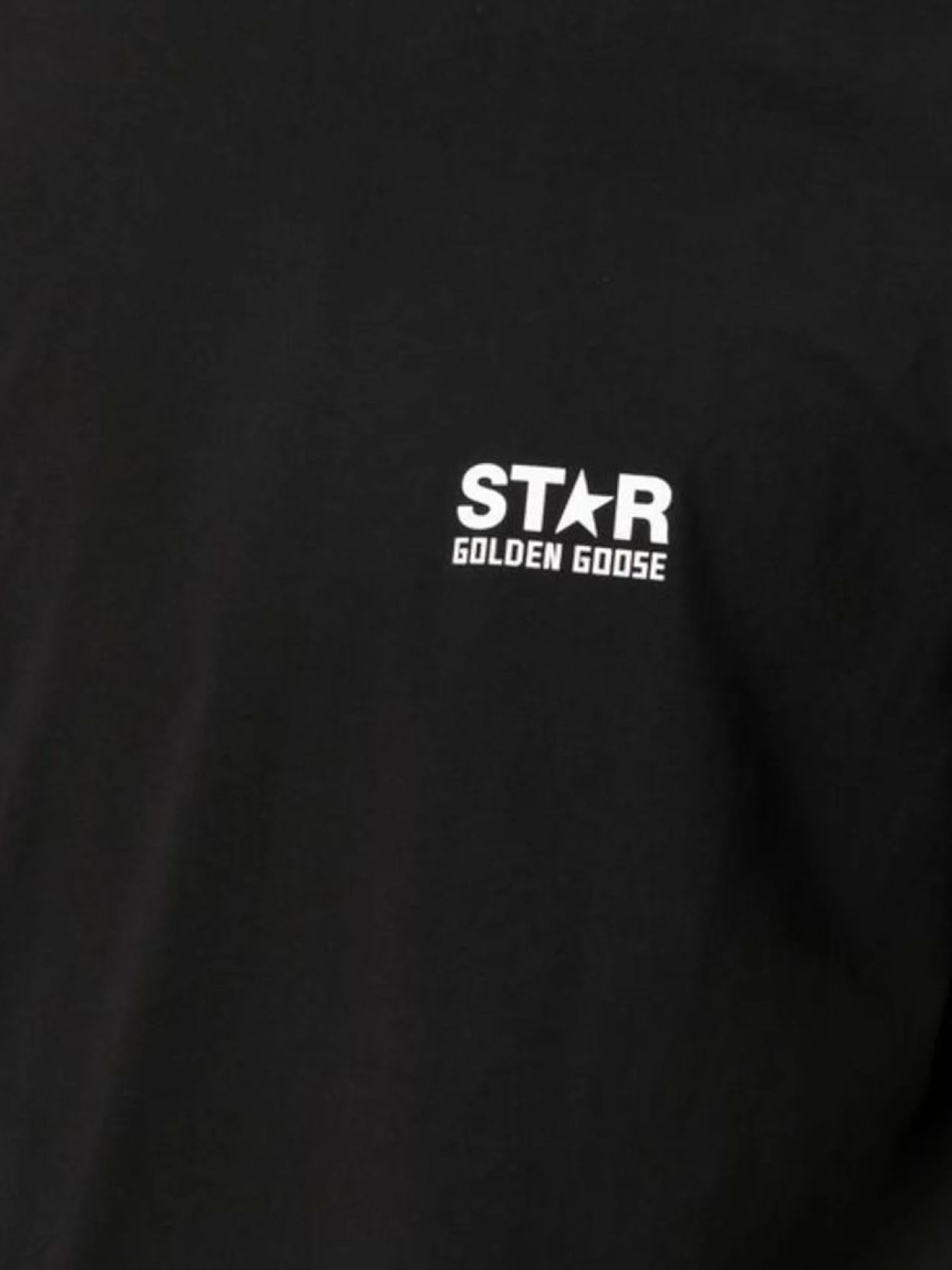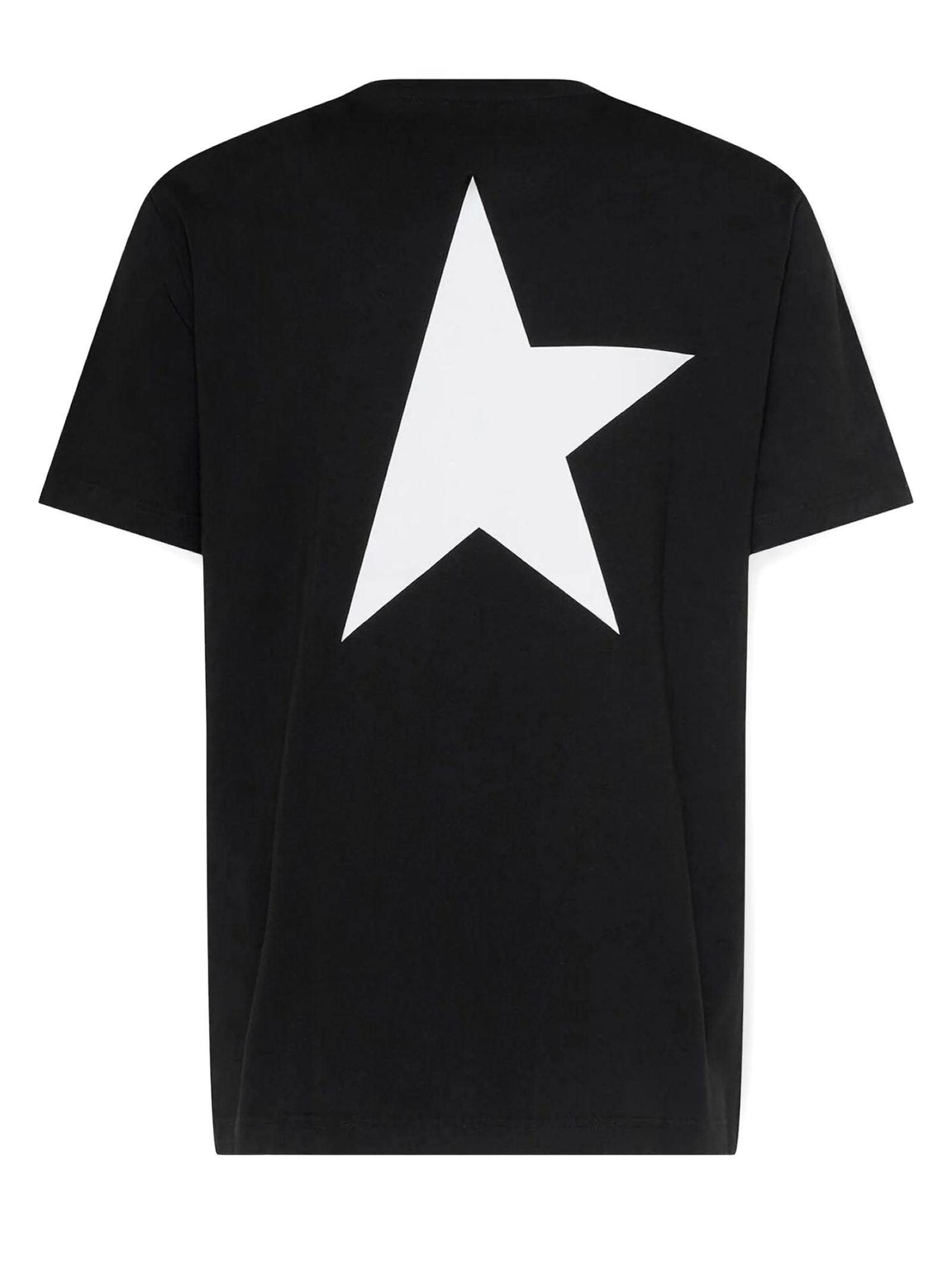 Black cotton T-shirt with star print on the back, logo, round neck, short sleeves