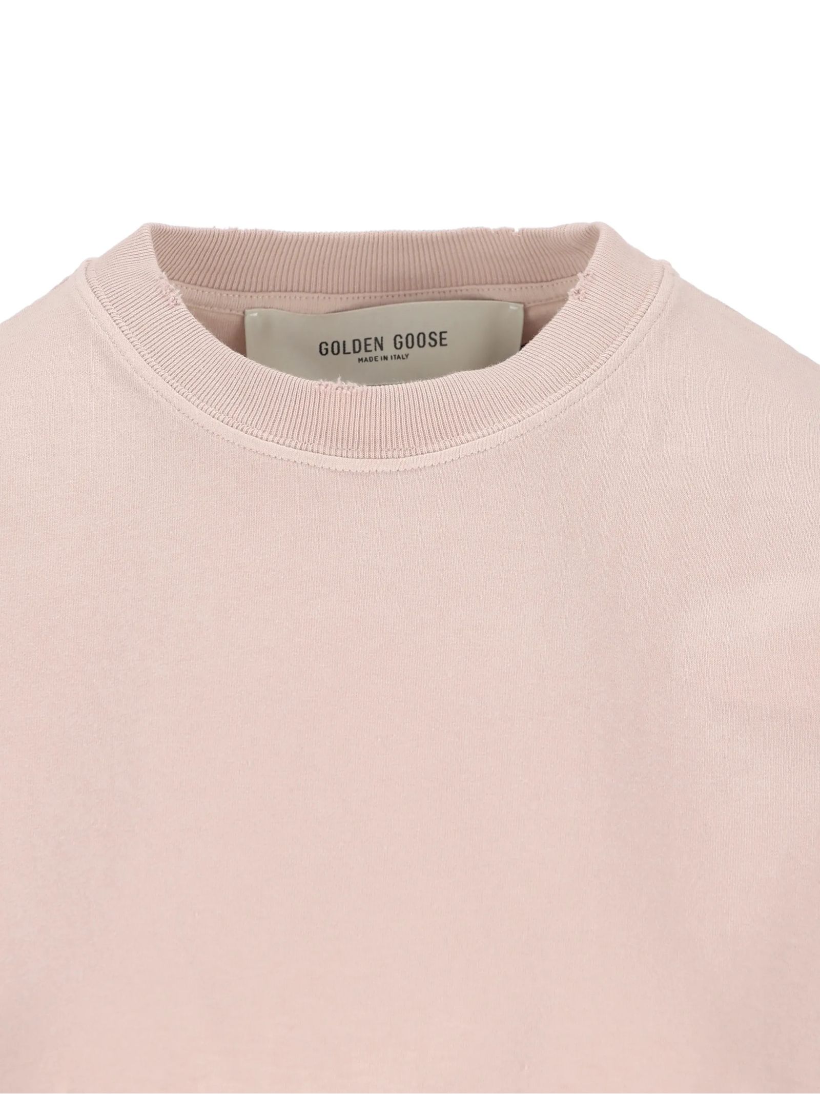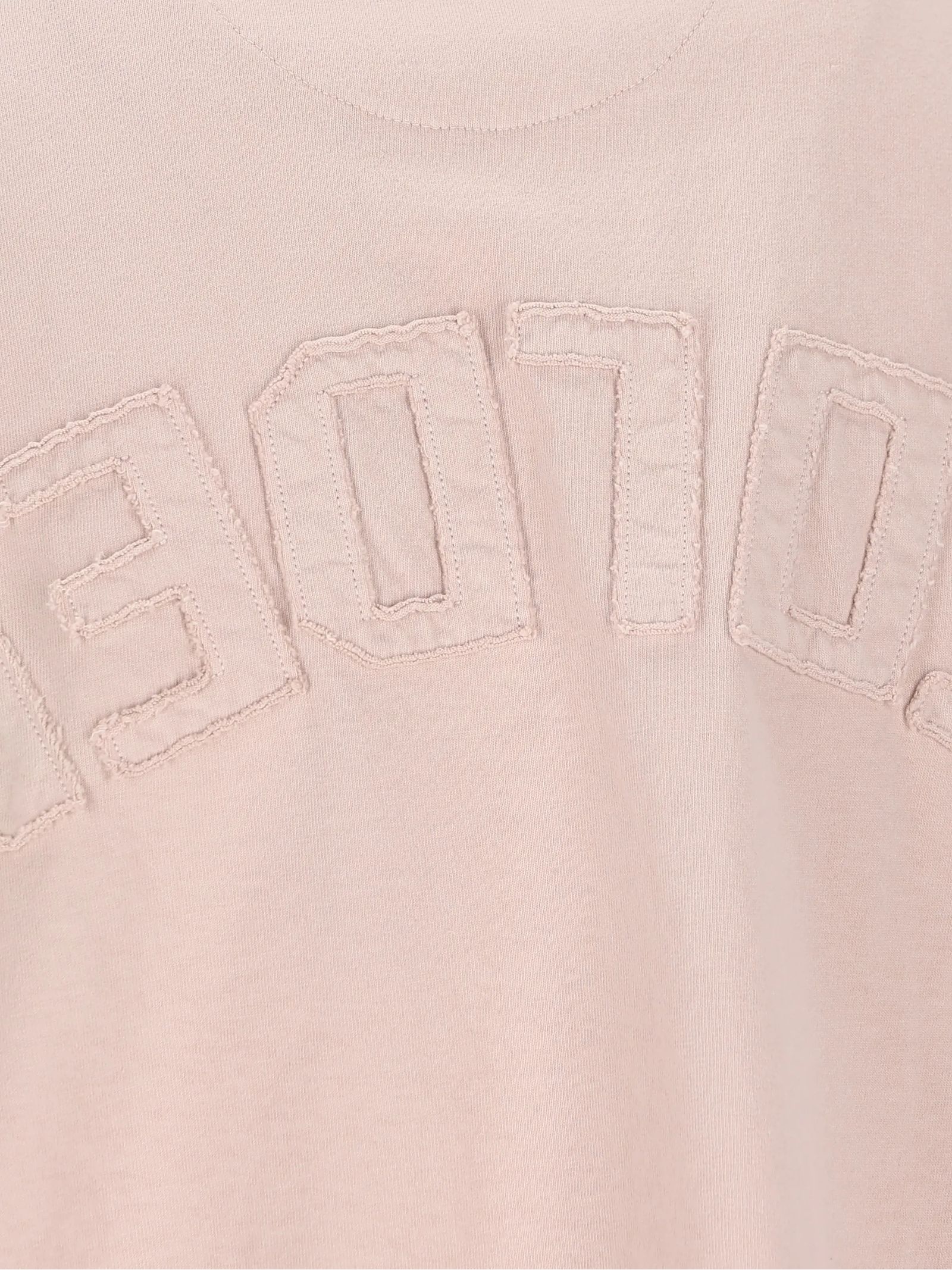 Pink cotton T-shirt with appliqué details, round neckline, tone-on-tone stitching