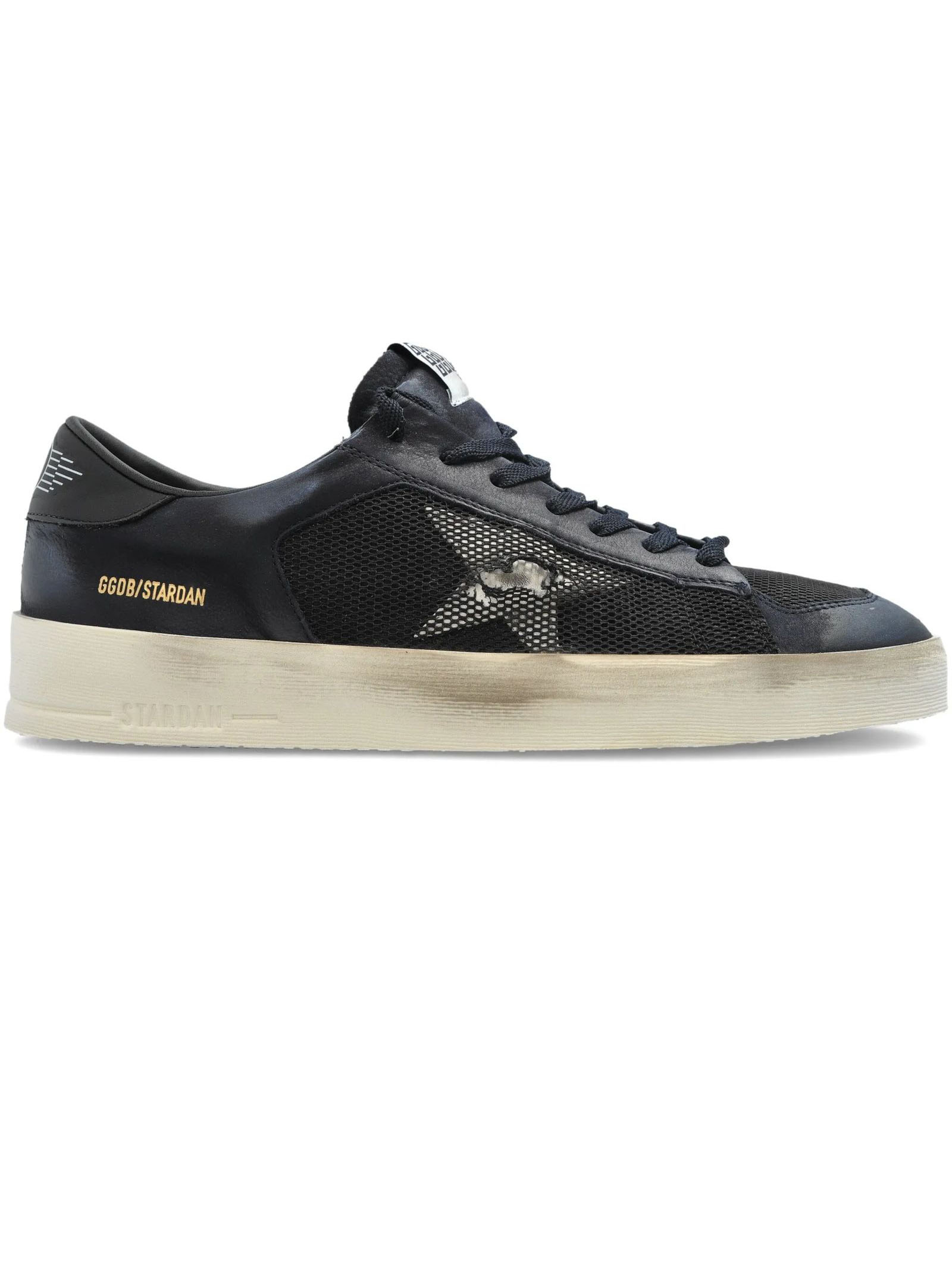 Stardan sneakers in dark blue suede with dark blue mesh inserts, white leather star, leather heel tab, dark blue nappa leather inserts, dark blue laces, vintage treatment, rubber sole