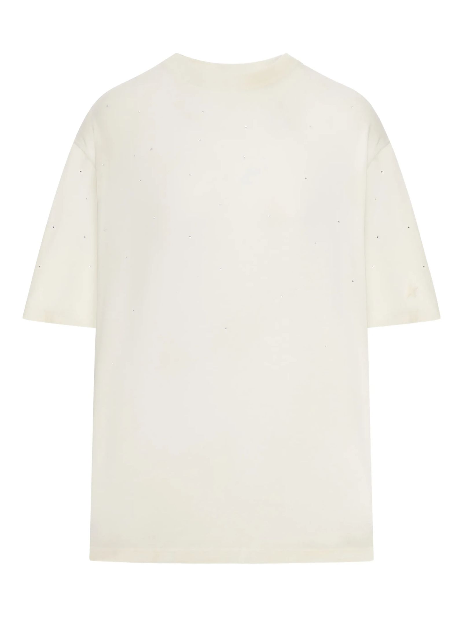 White cotton T-shirt with star design, logo, short sleeves, round neck, Cotton 100%