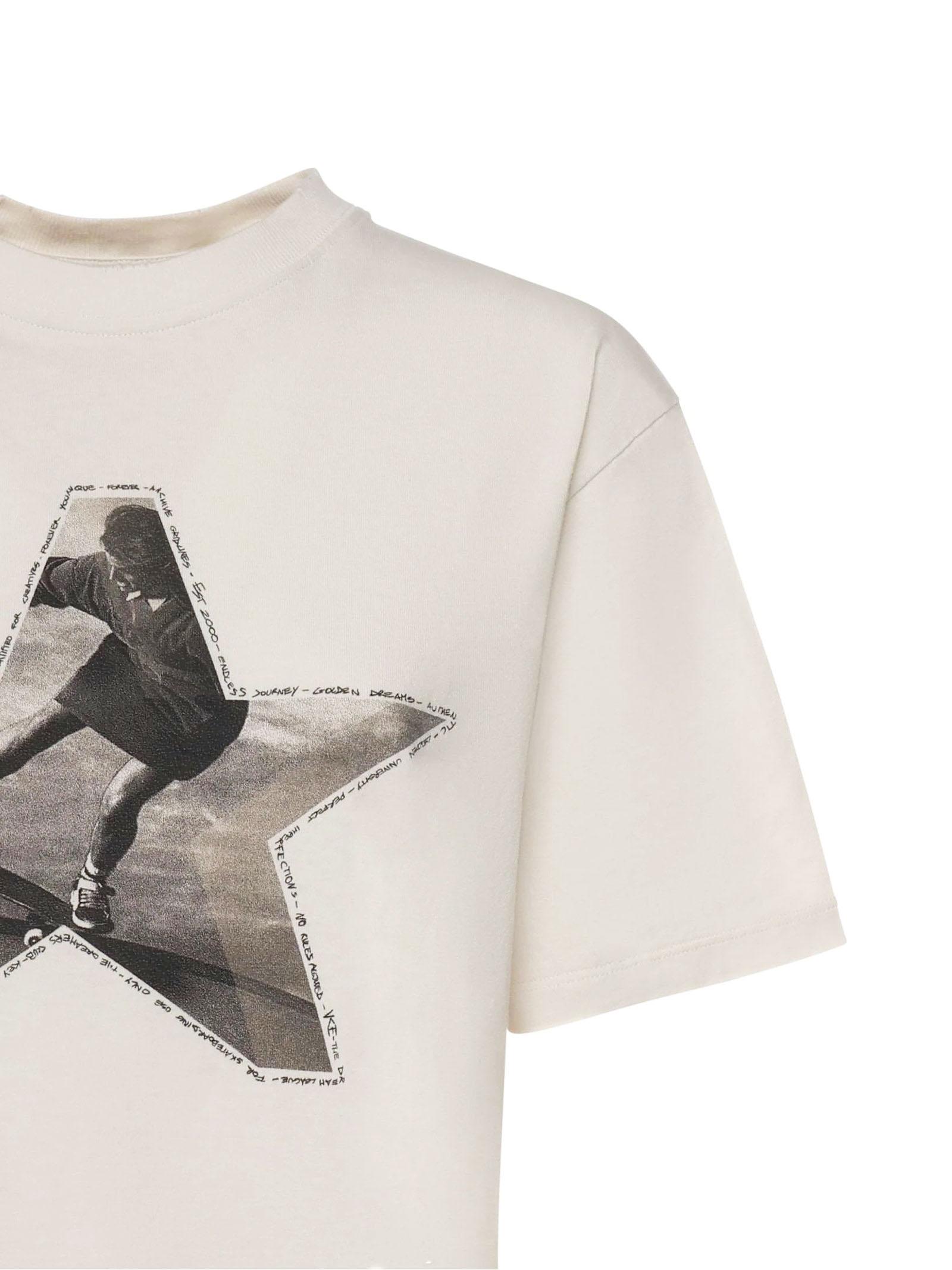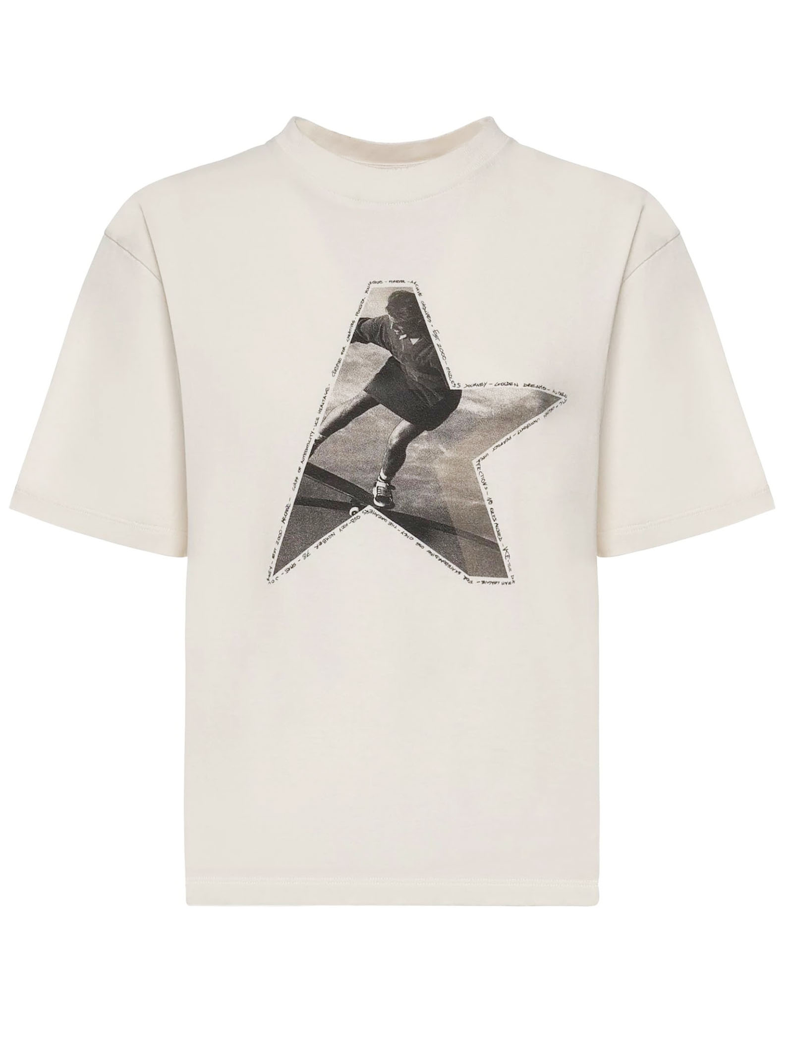White cotton T-shirt with round neck, short sleeves, reverse logo on the back, boxy fit
