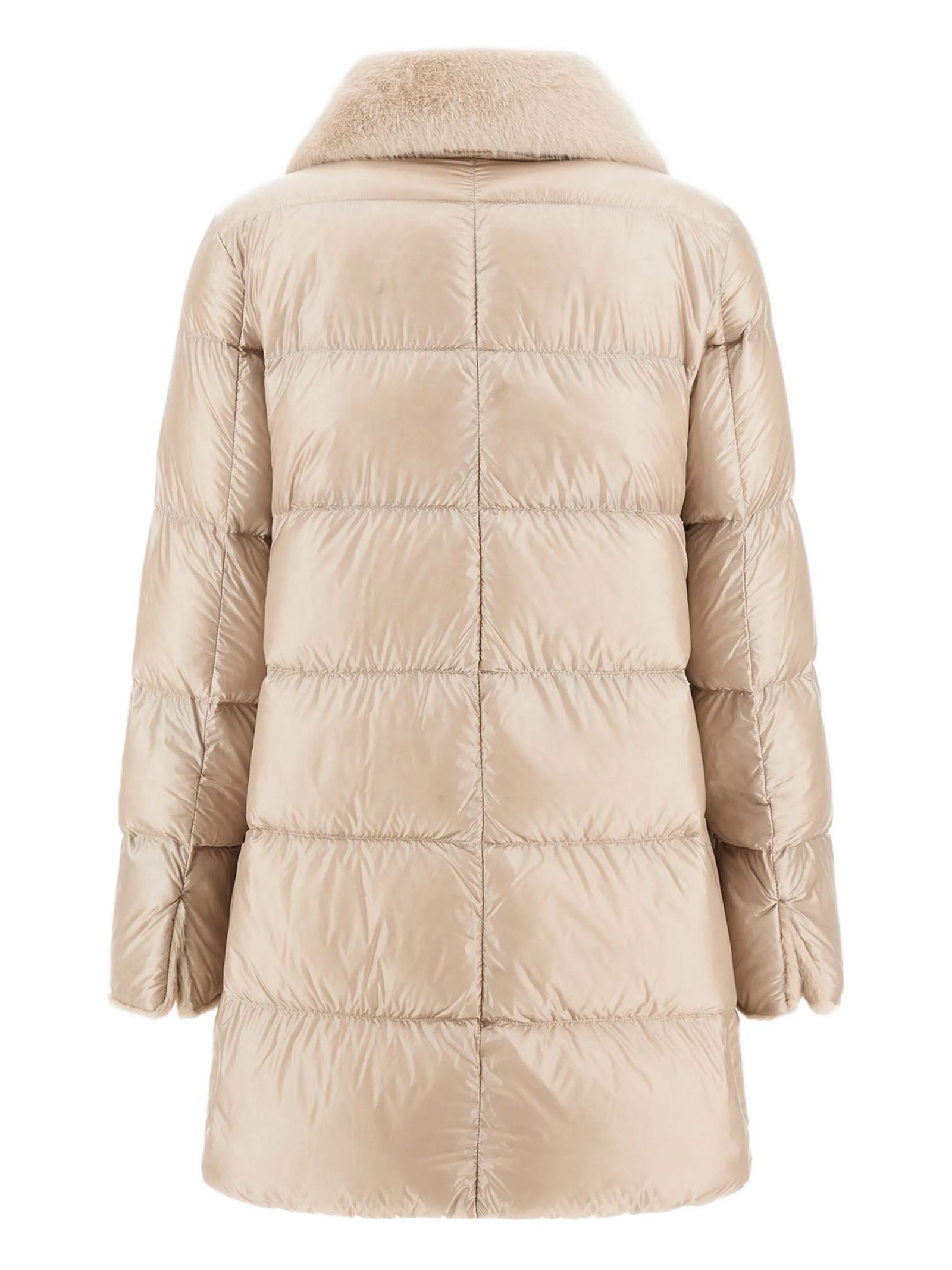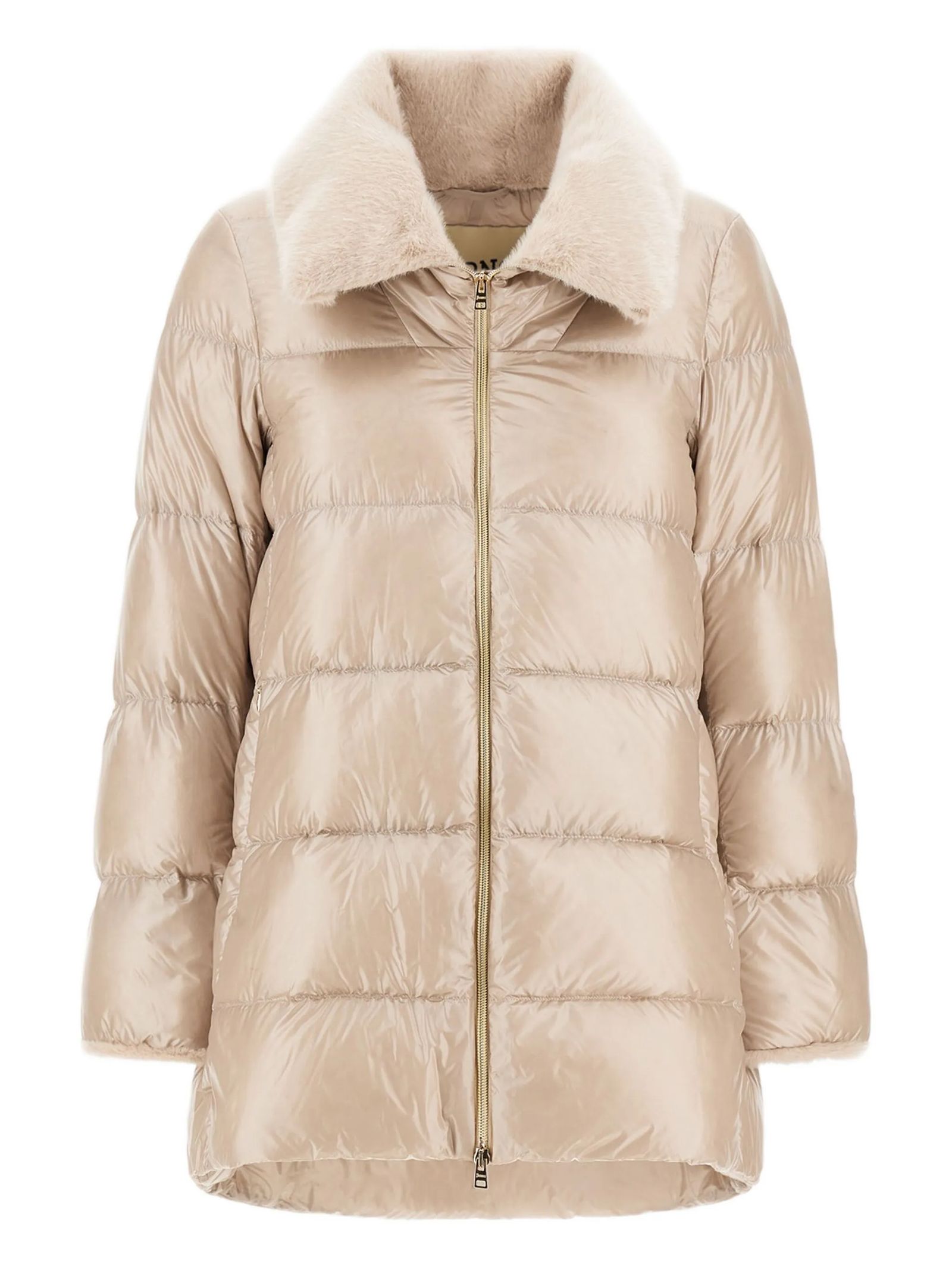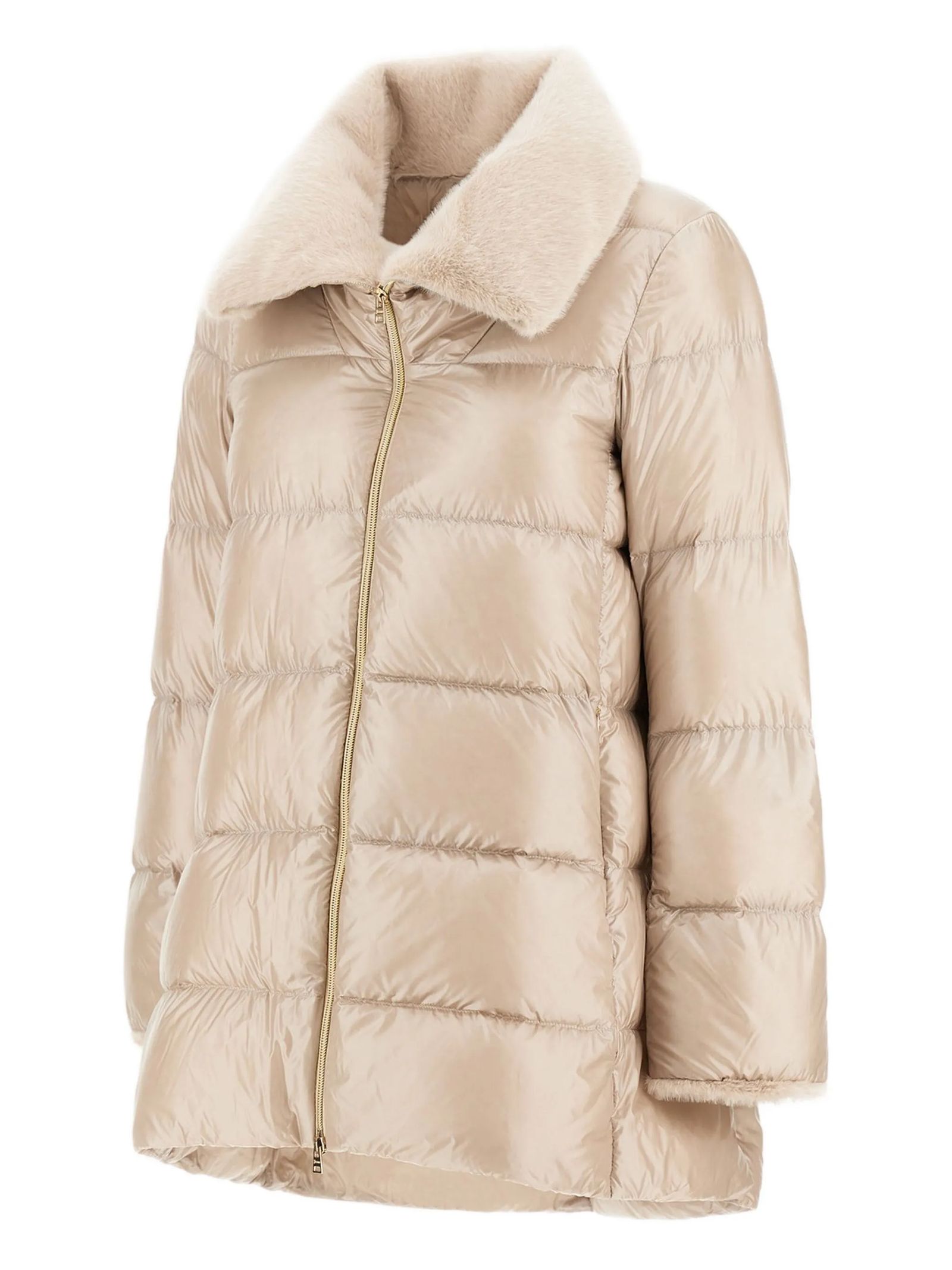 Nylon Ultralight And Lady Alternative Fur A-Shape Jacket, Regular fit, Striped quilting, Down padding, High neck, Side pockets with invisible zips, Cuff slits, Two-way zip closure