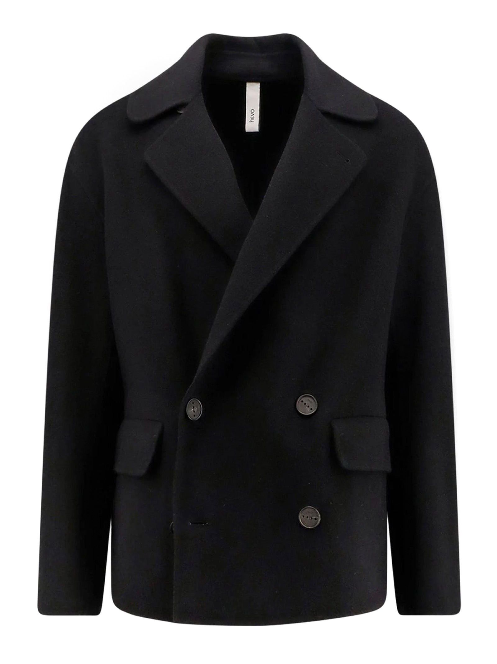Galesano jacket, double-breasted coat, drop shoulder sleeves lined with 100% viscose, wide lapels, and flap pockets