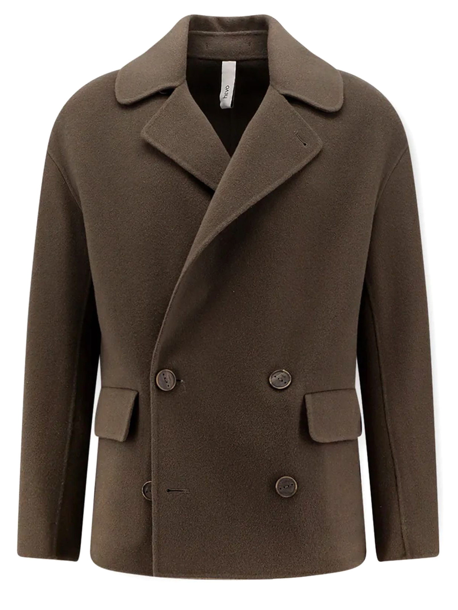 Galesano jacket, double-breasted coat, drop shoulder sleeves lined with 100% viscose, wide lapels, and flap pockets