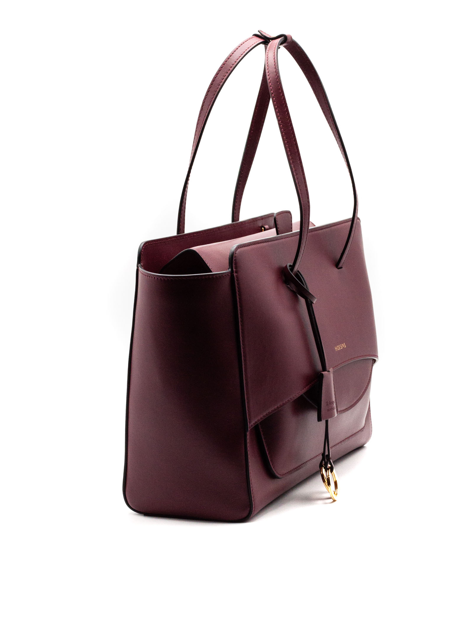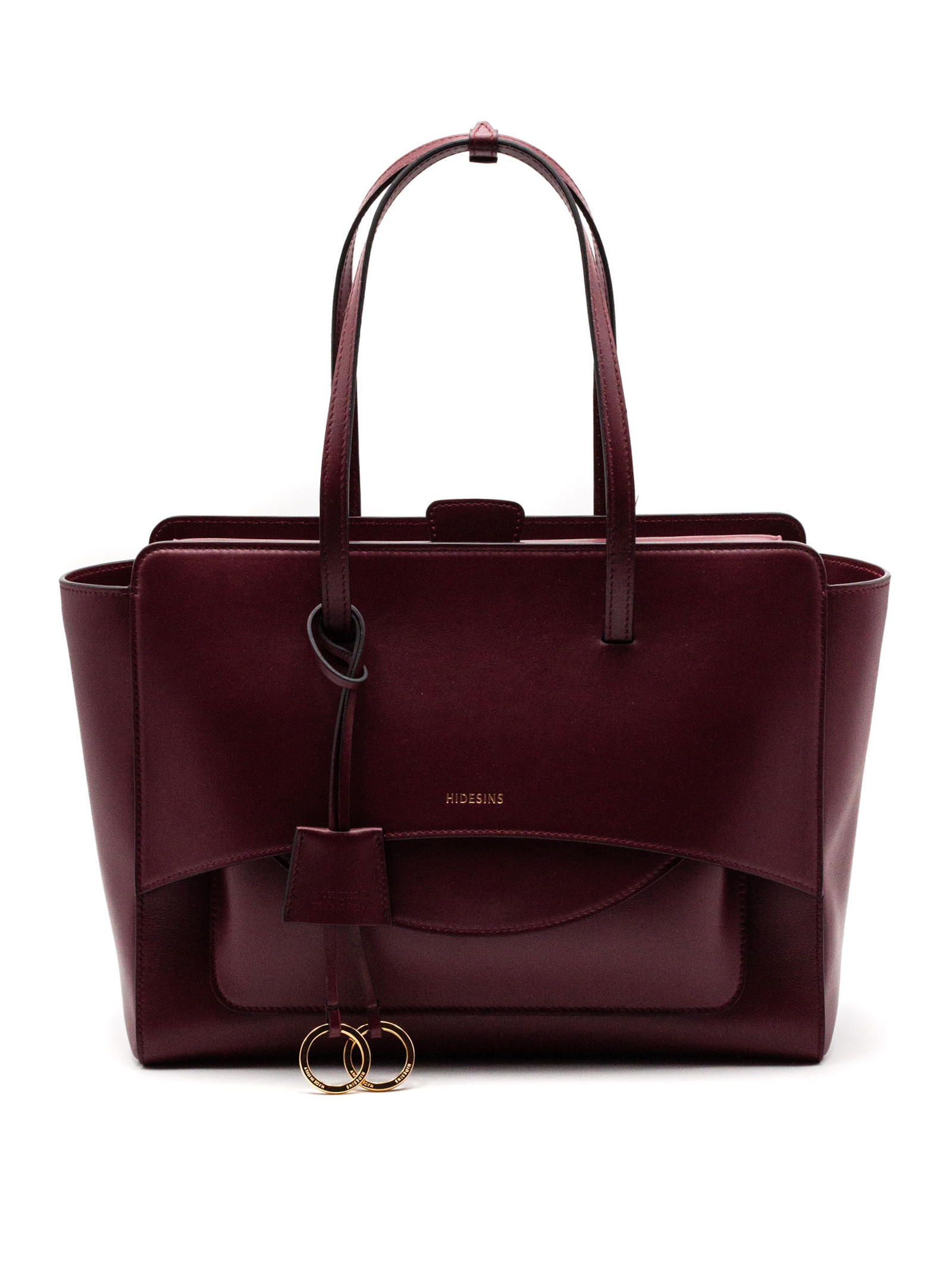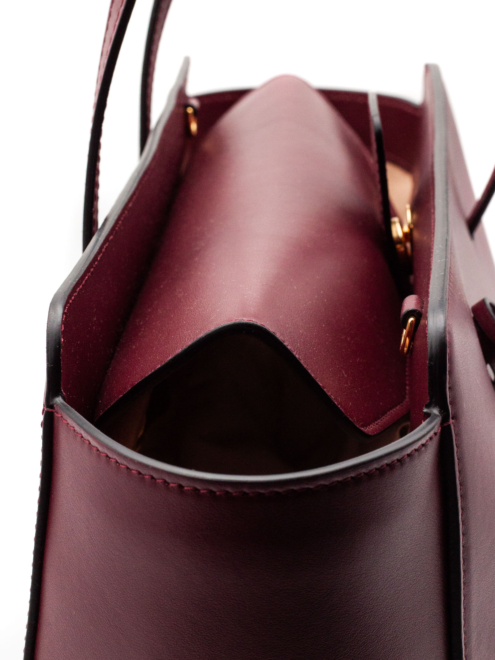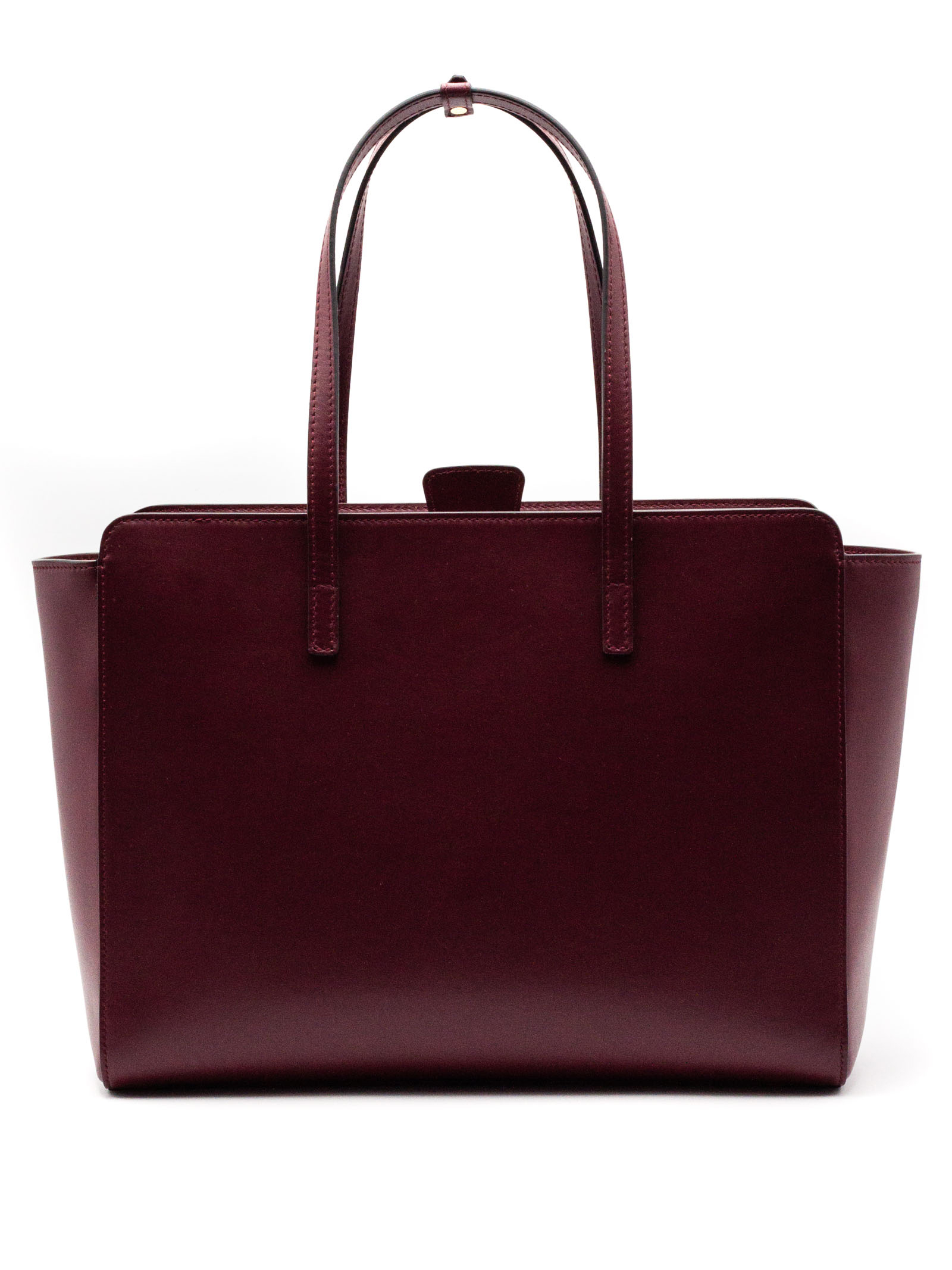 Bordeaux shoulder bag crafted in smooth calf leather and lined with cotton fabric, Pouch nestled inside one of the handles that blends seamlessly into the structure of the bag, Magnetic closure, Adjustable and removable cross-body strap, Flat bottom, Gold-plated metal hardware, Internal pockets, Fully lined in cotton, 100% Calfskin / Lining: 100% Cotton, height: 26 cm, width: 42 cm, depth: 13 cm