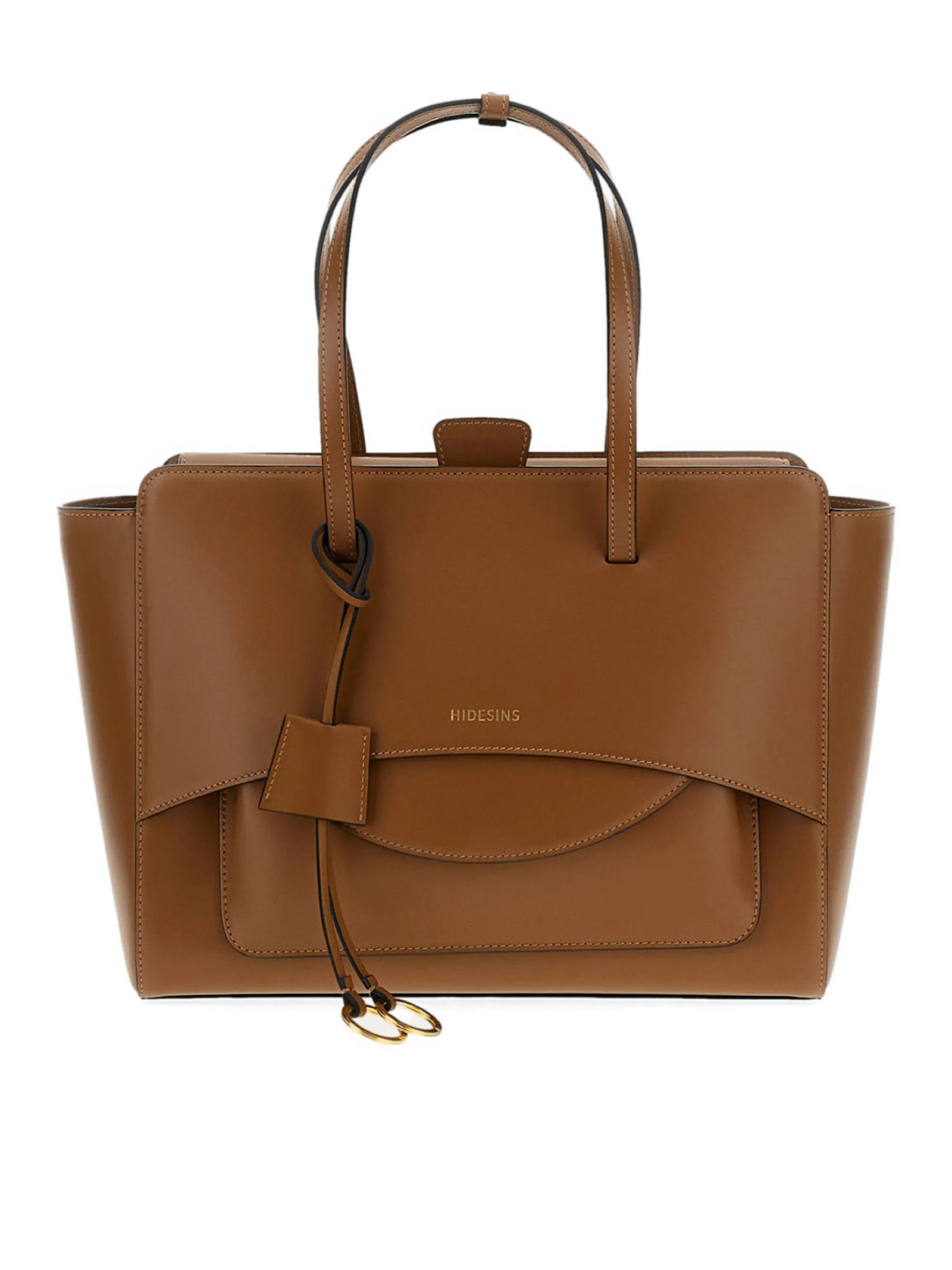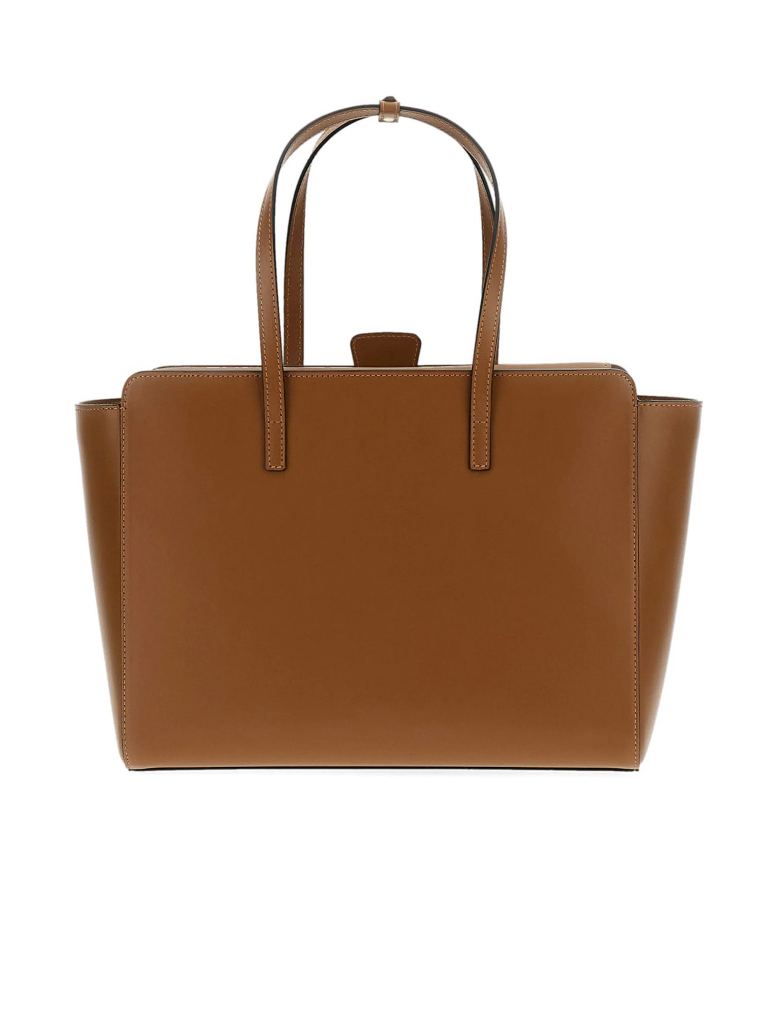 Brown shoulder bag crafted in smooth calf leather and lined with cotton fabric, Pouch nestled inside one of the handles that blends seamlessly into the structure of the bag, Magnetic closure, Adjustable and removable cross-body strap, Flat bottom, Gold-plated metal hardware, Internal pockets, Fully lined in cotton, 100% Calfskin / Lining: 100% Cotton, height: 26 cm, width: 42 cm, depth: 13 cm