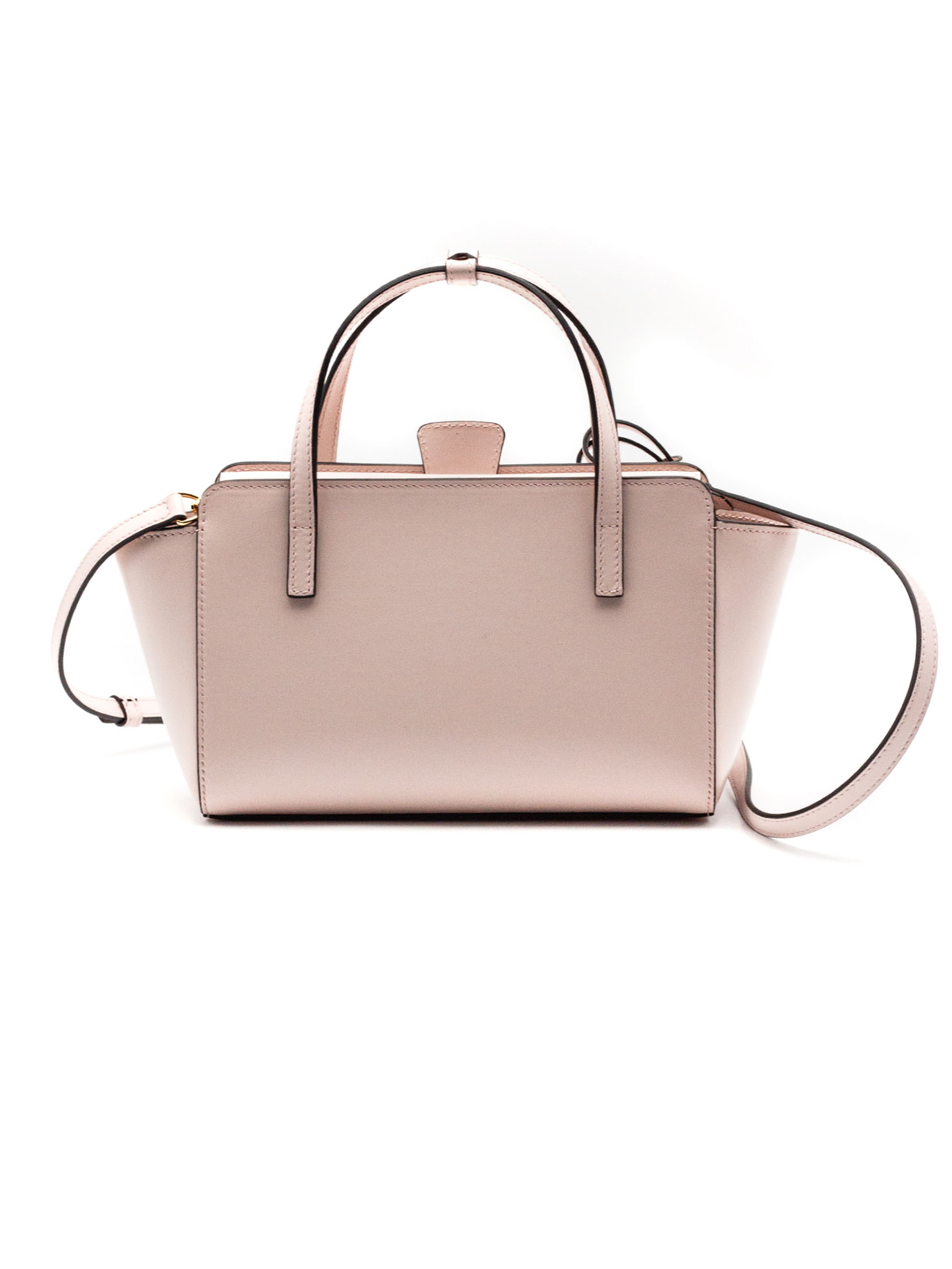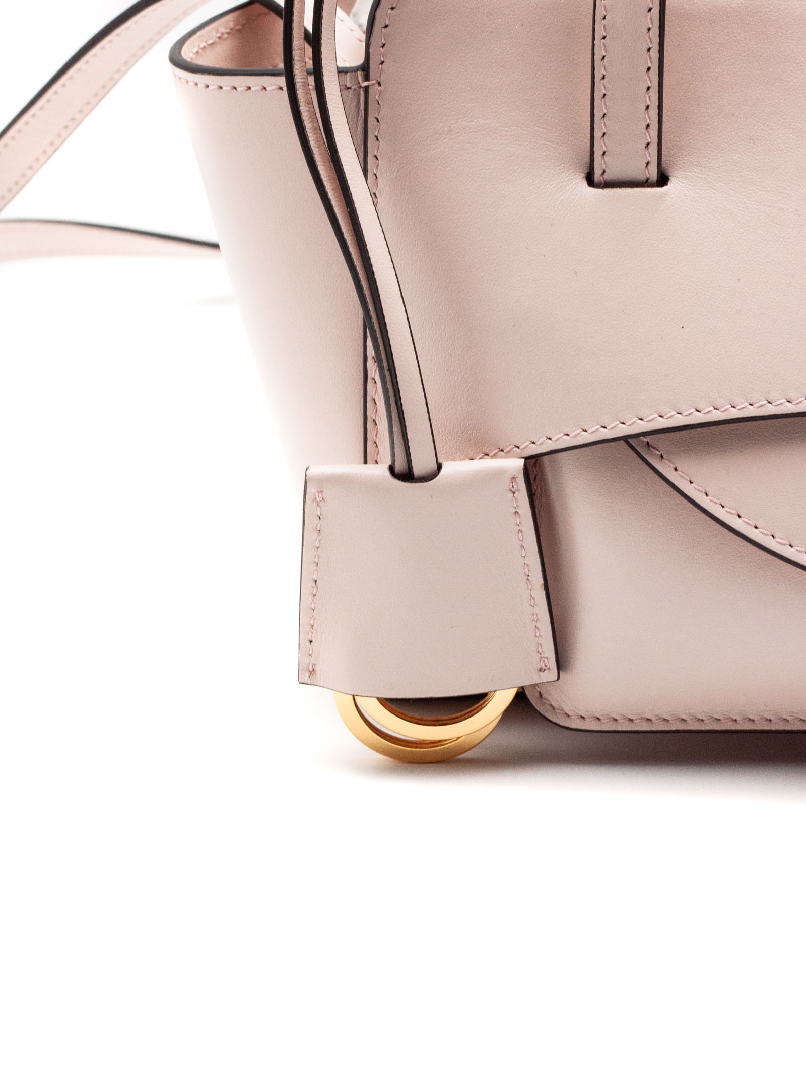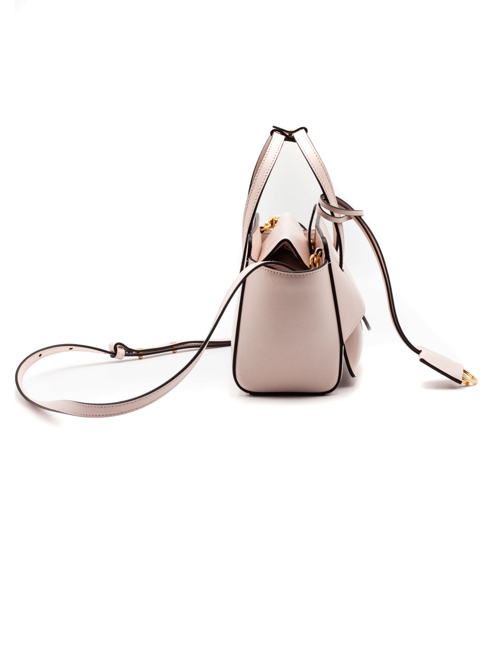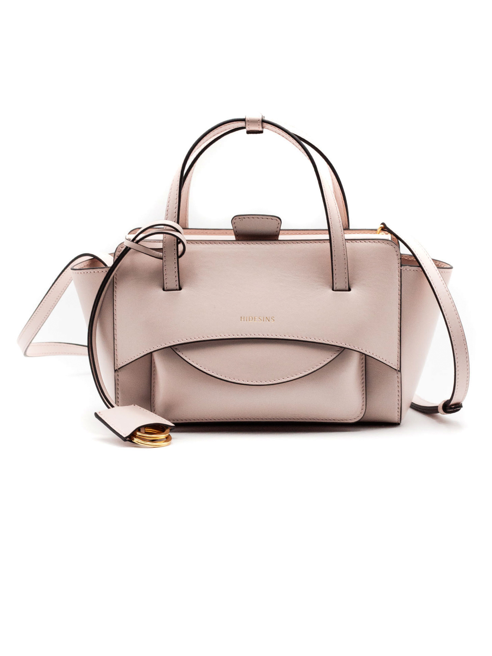 Light pink Flap S crossbody bag in smooth calf leather, Pouch nestled inside one of the handles that blends seamlessly into the structure of the bag, Magnetic closure, Adjustable and removable cross-body strap, Flat bottom, Gold-plated metal hardware, Internal pockets, Fully lined in cotton, Height: 16 cm, Width: 29 cm, Depth: 11,5 cm