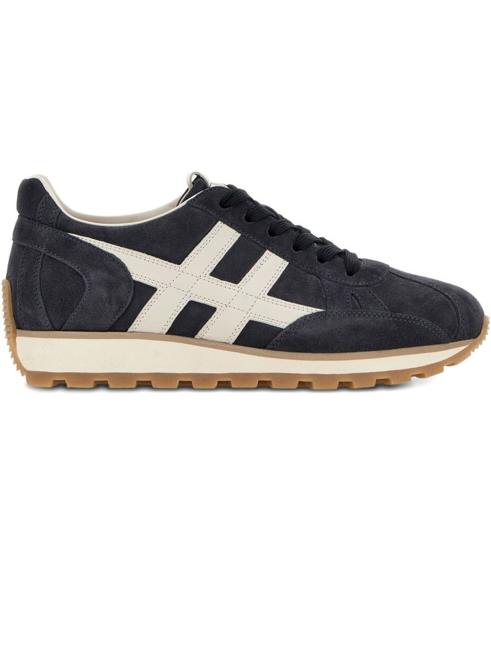86er sneakers in blue suede, smooth leather H applied to the side, soft 4.5 mm leather-covered insole, EVA sole, total height 4 cm