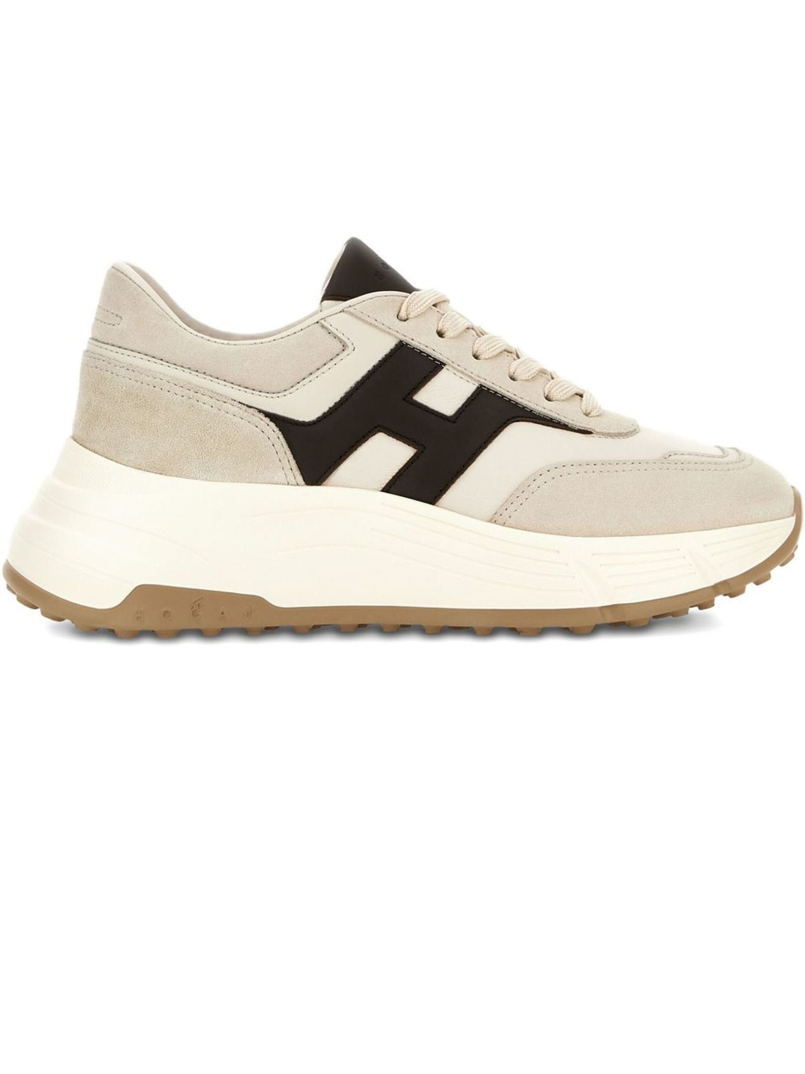 beige front lace-up fastening logo-embellished side panels branded insole round toe