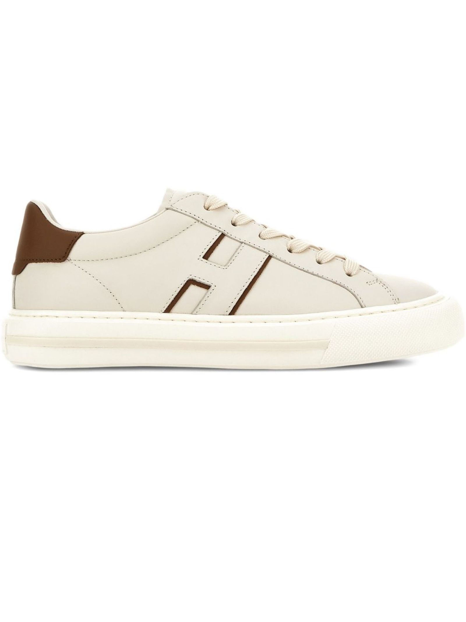 ecru brown leather heel insert H stripe detail front lace-up fastening flat rubber sole