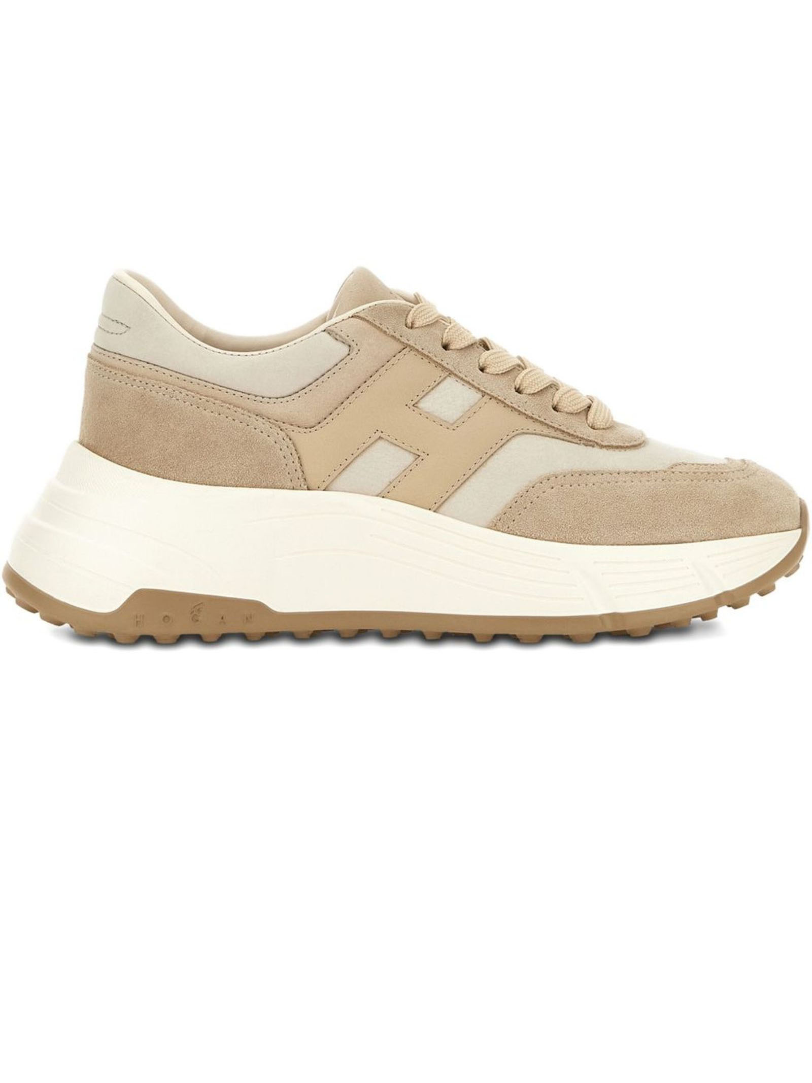 light beige front lace-up fastening ridged rubber sole logo patch to the side branded insole