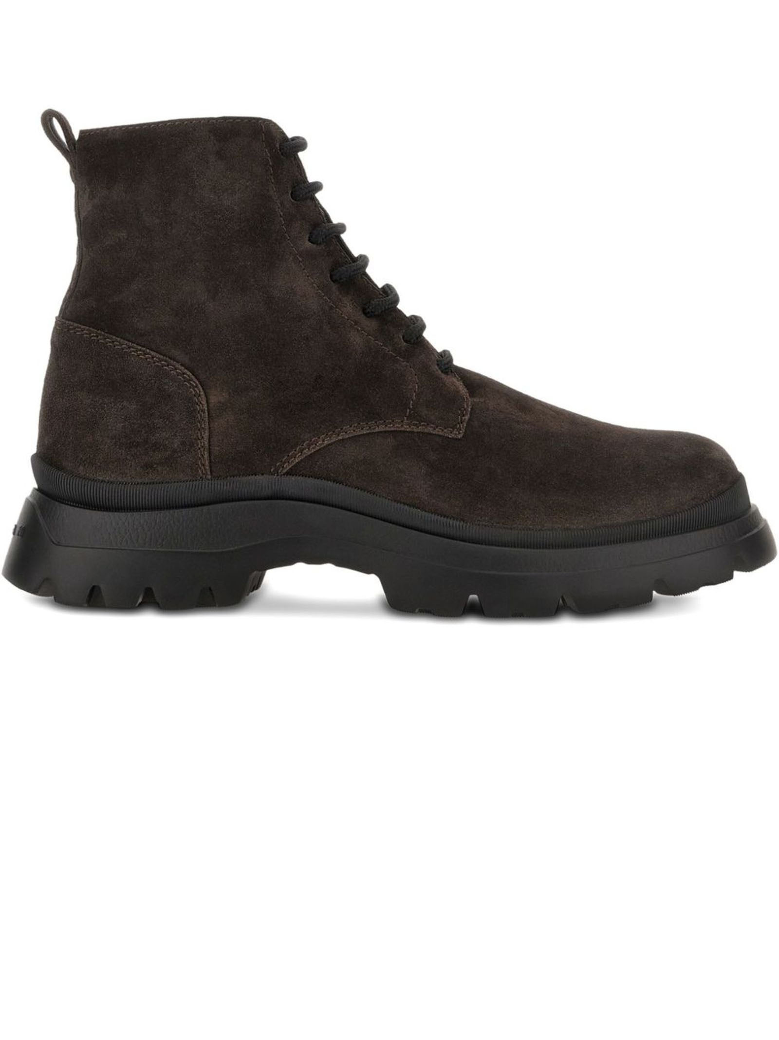 brown front lace-up fastening pull-tab at the heel round toe flat rubber sole