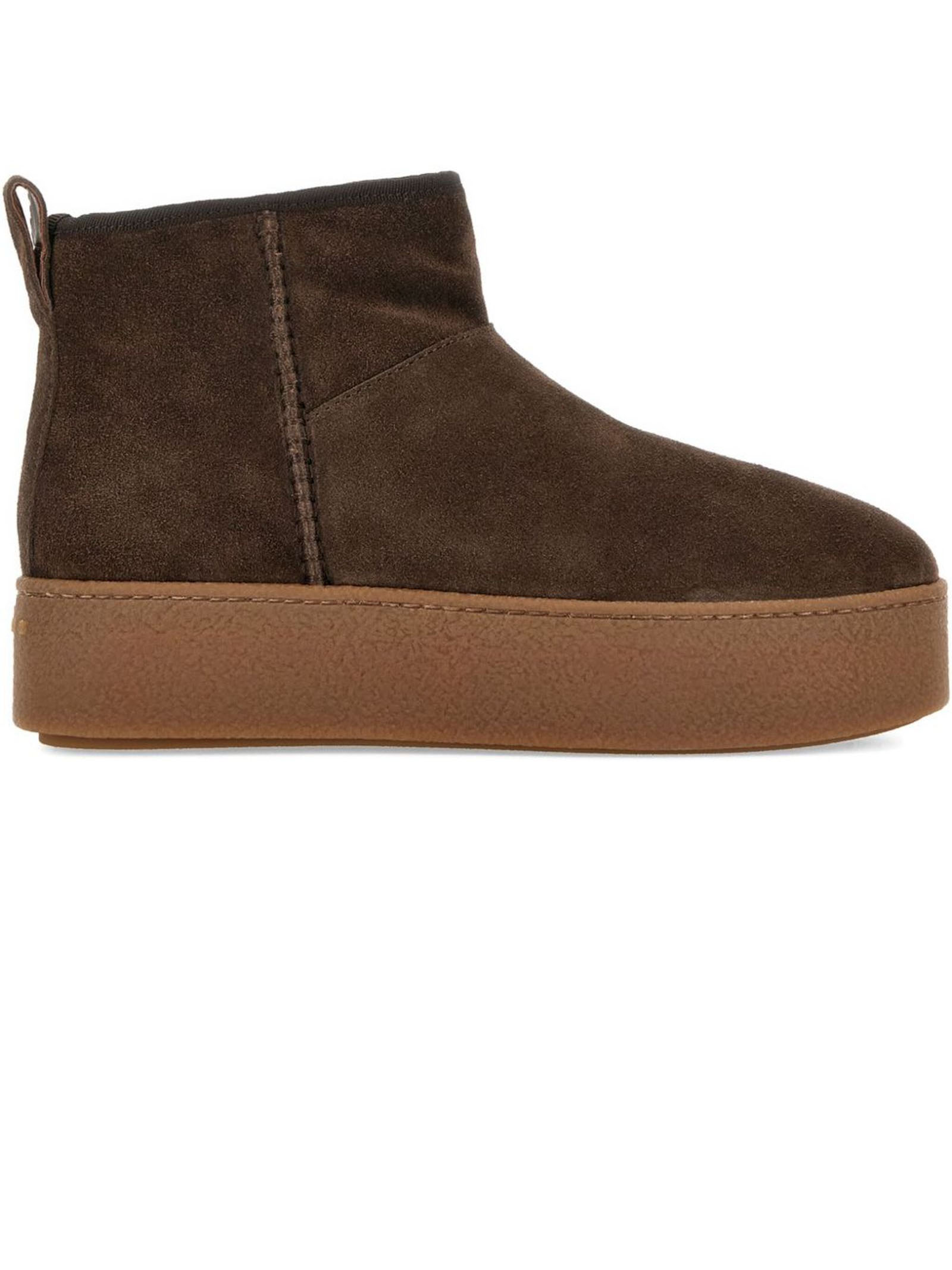 chocolate brown pull-tab at the heel platform sole rubber sole ankle-length