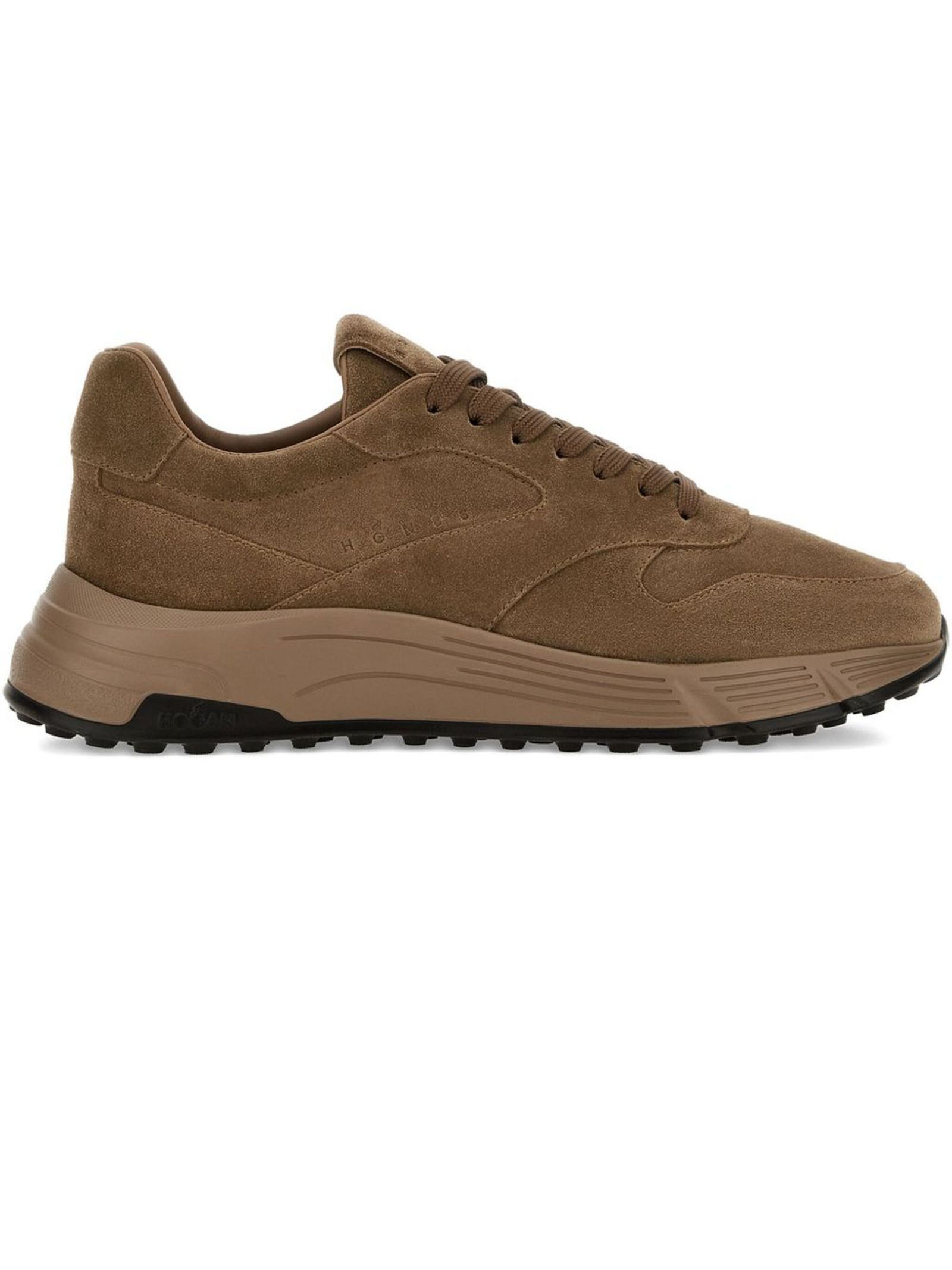 camel brown front lace-up fastening branded insole rubber sole logo patch at the tongue