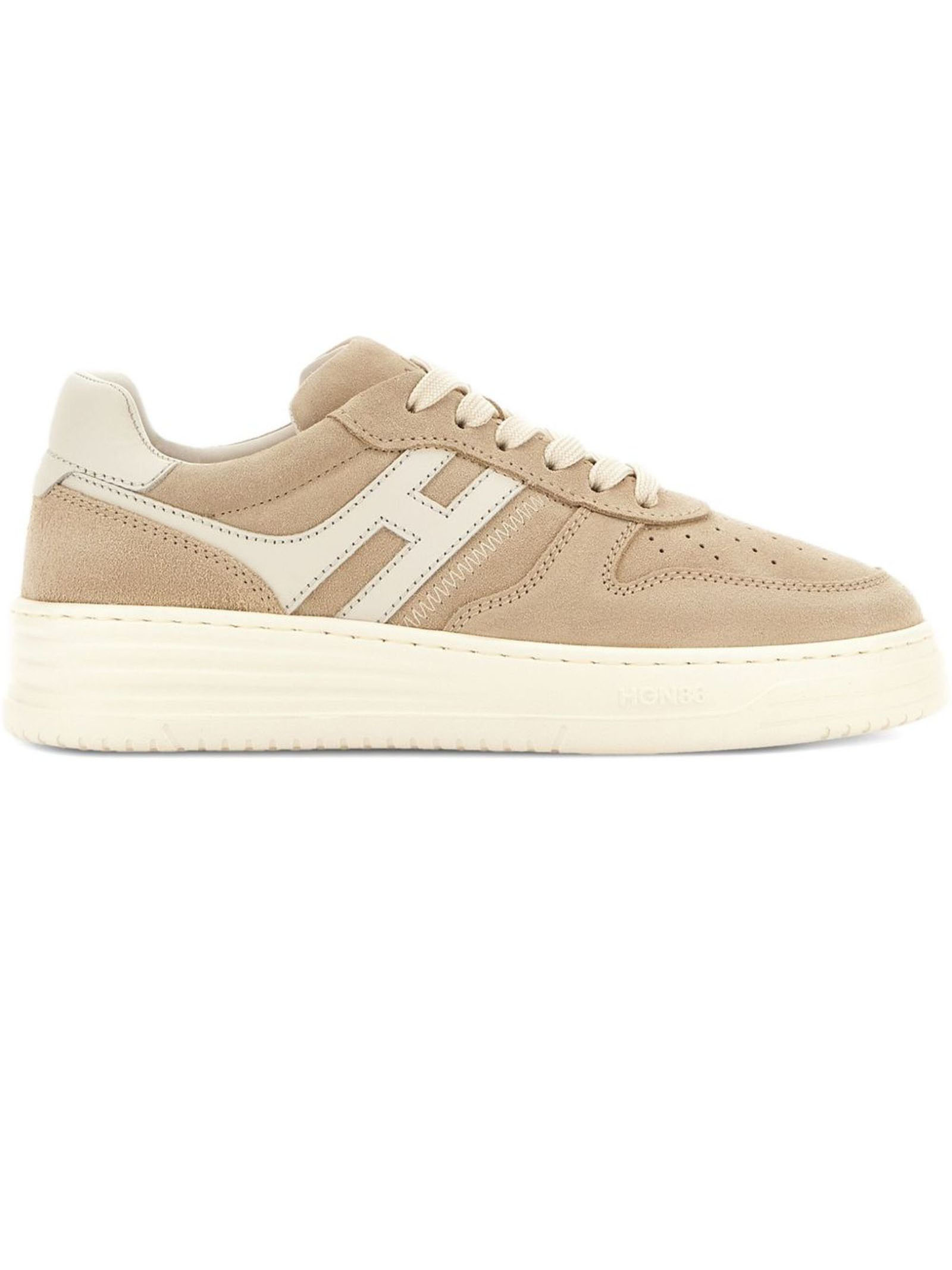 beige front lace-up fastening perforated toebox round toe branded insole