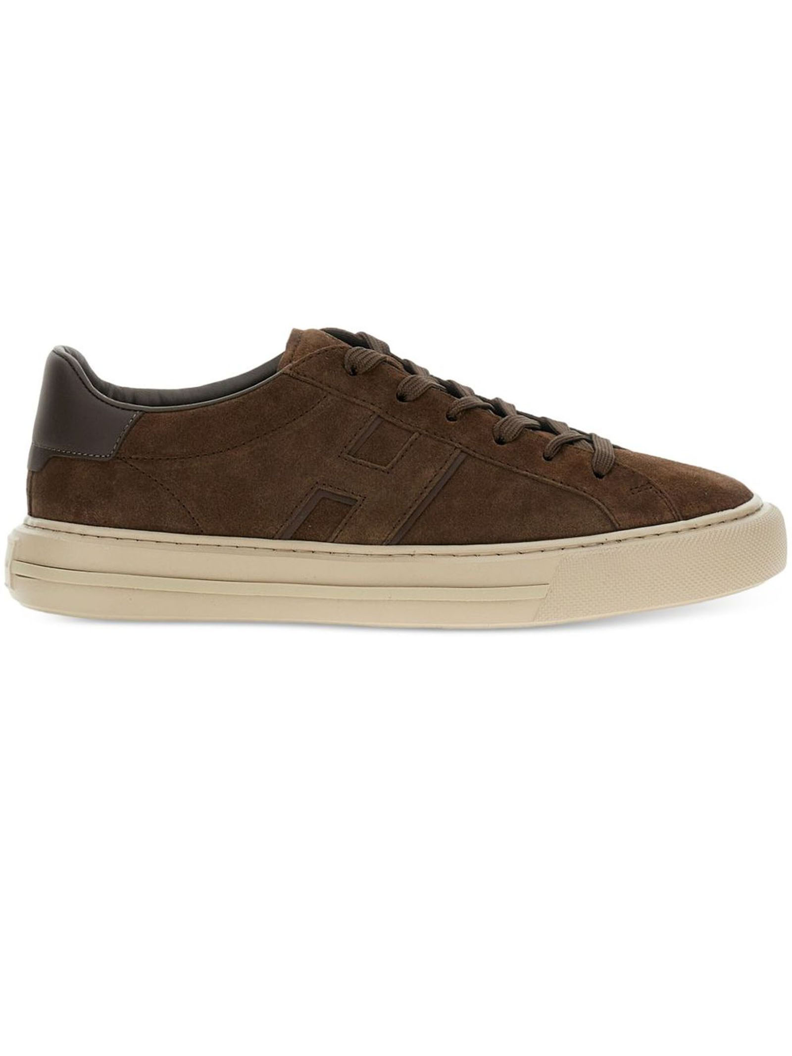 dark brown suede upper leather heel-tab H side detail lace-up fastening