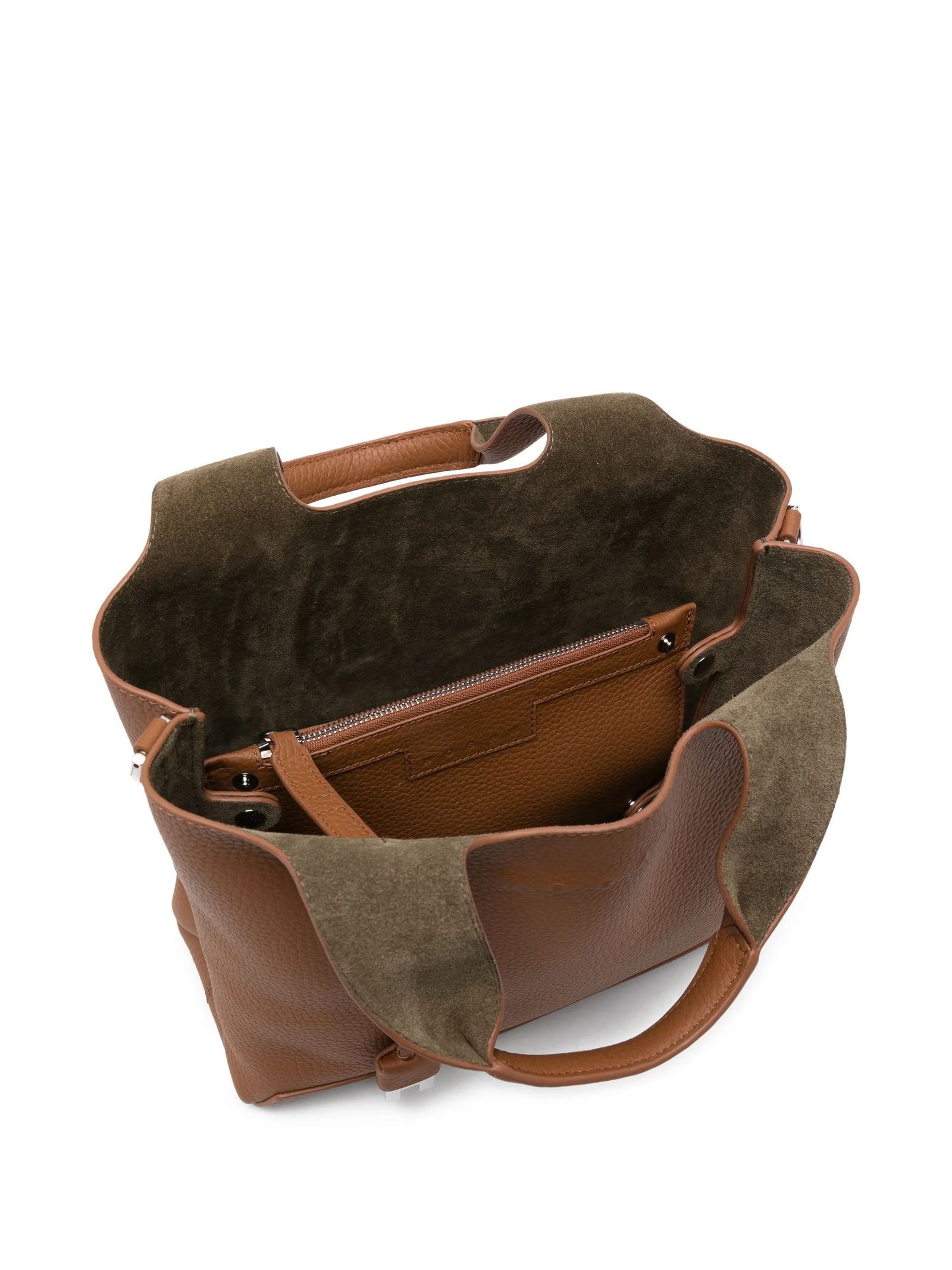 Brown Leather Tote Bag, Top Handles, Logo Plaque, Shoulder Strap, Internal Zip-Fastening Pocket, Depth 12 Cm, Handle 14 Cm, Height 25 Cm, Width 30 Cm