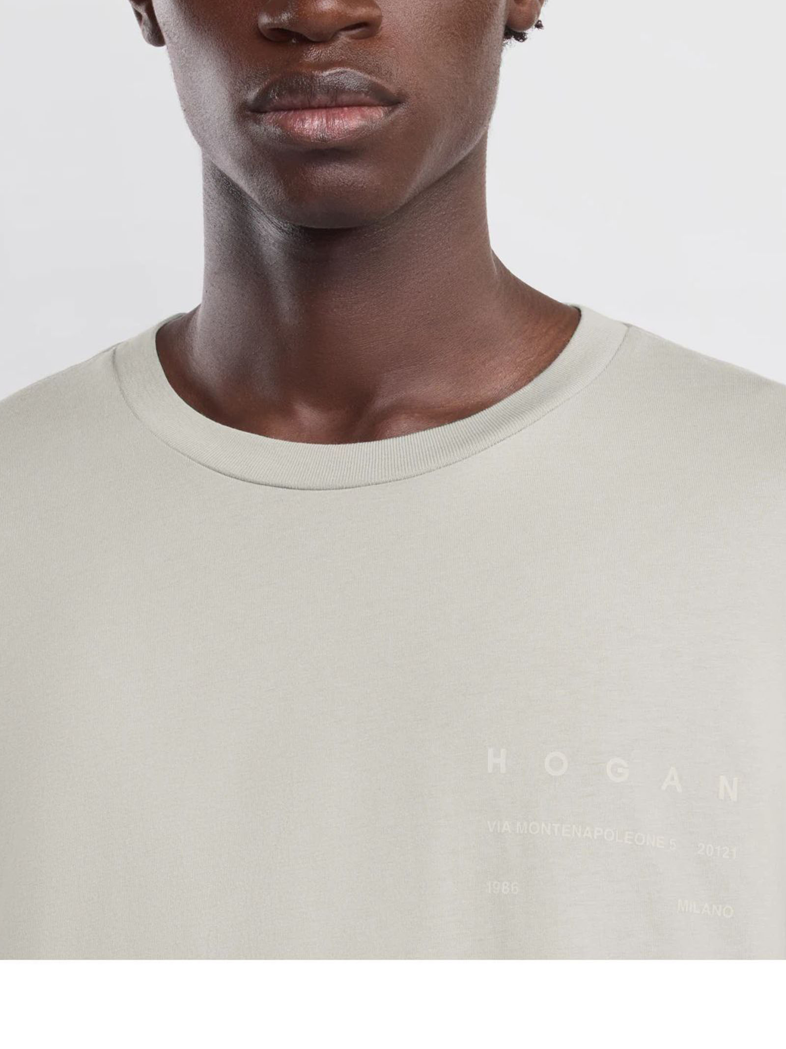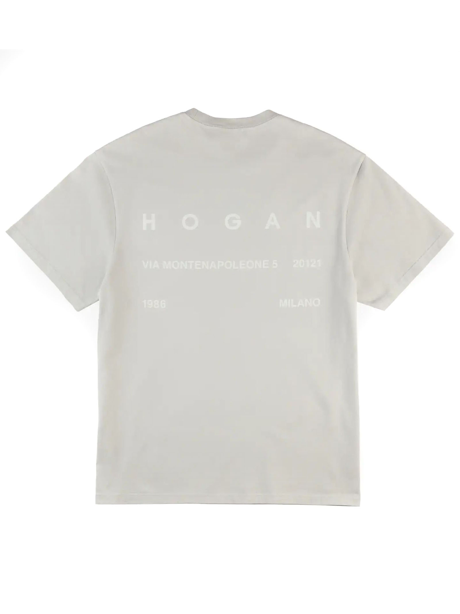 Boxy-fit crew neck T-shirt in cotton jersey. Featuring a print with the Via Monte Napoleone address logo on the front, it has a larger screen-printed version of the same logo on the back