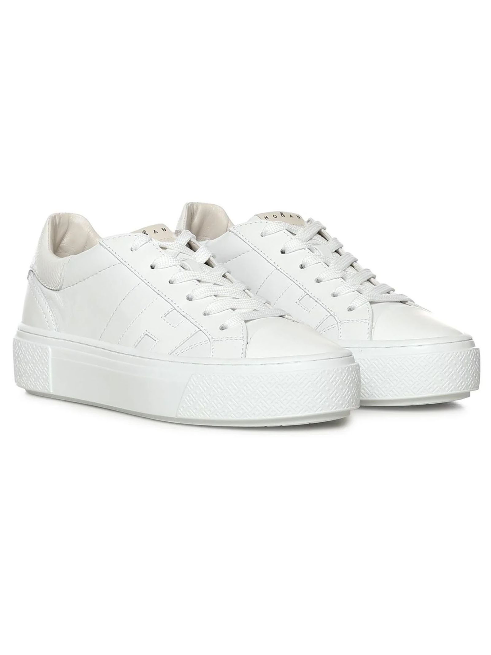 Hogan Crosswind White Sneakers, Nappa leather and suede upper, Smooth and rubberized leather details, Side H, 8 mm memory foam insole, Rubber sole, Total height 5.6 cm