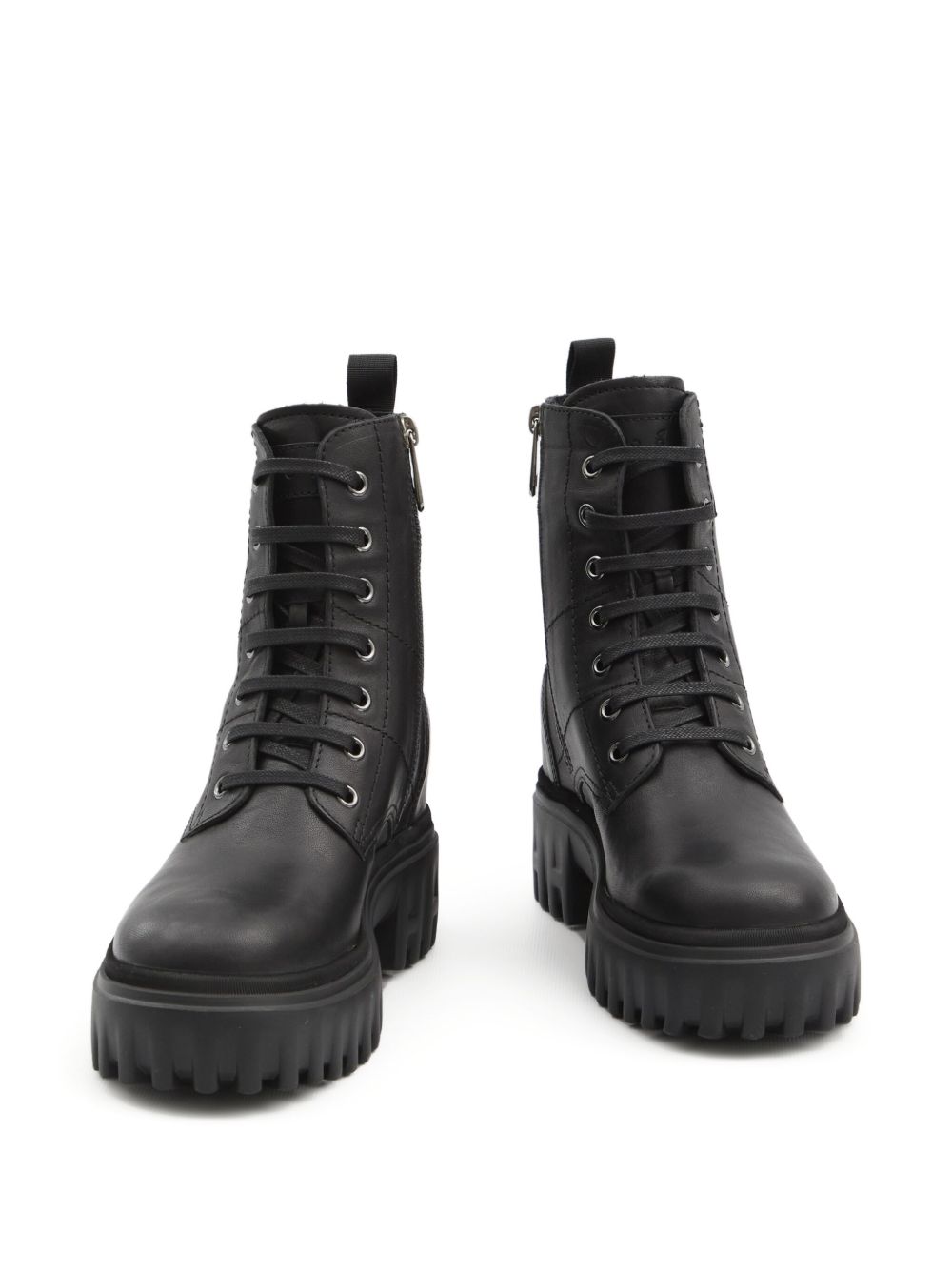 Hogan H700 Black Combat Boots, Leather upper, Hogan patch with brand address embossed, Zipper on the inside, Leather lining, 8 mm memory foam insole, Rubber sole, Total height approx. 7.6 cm