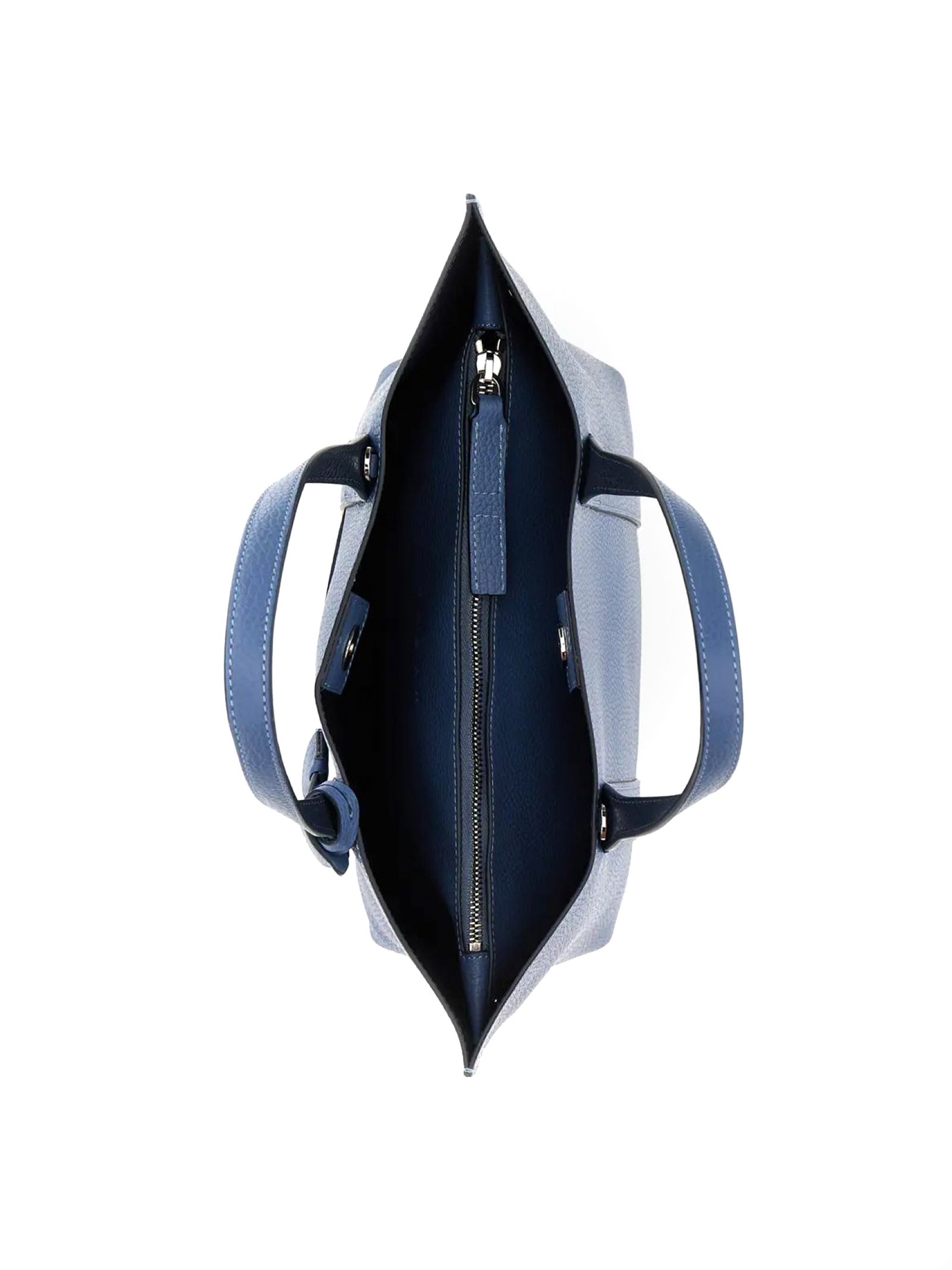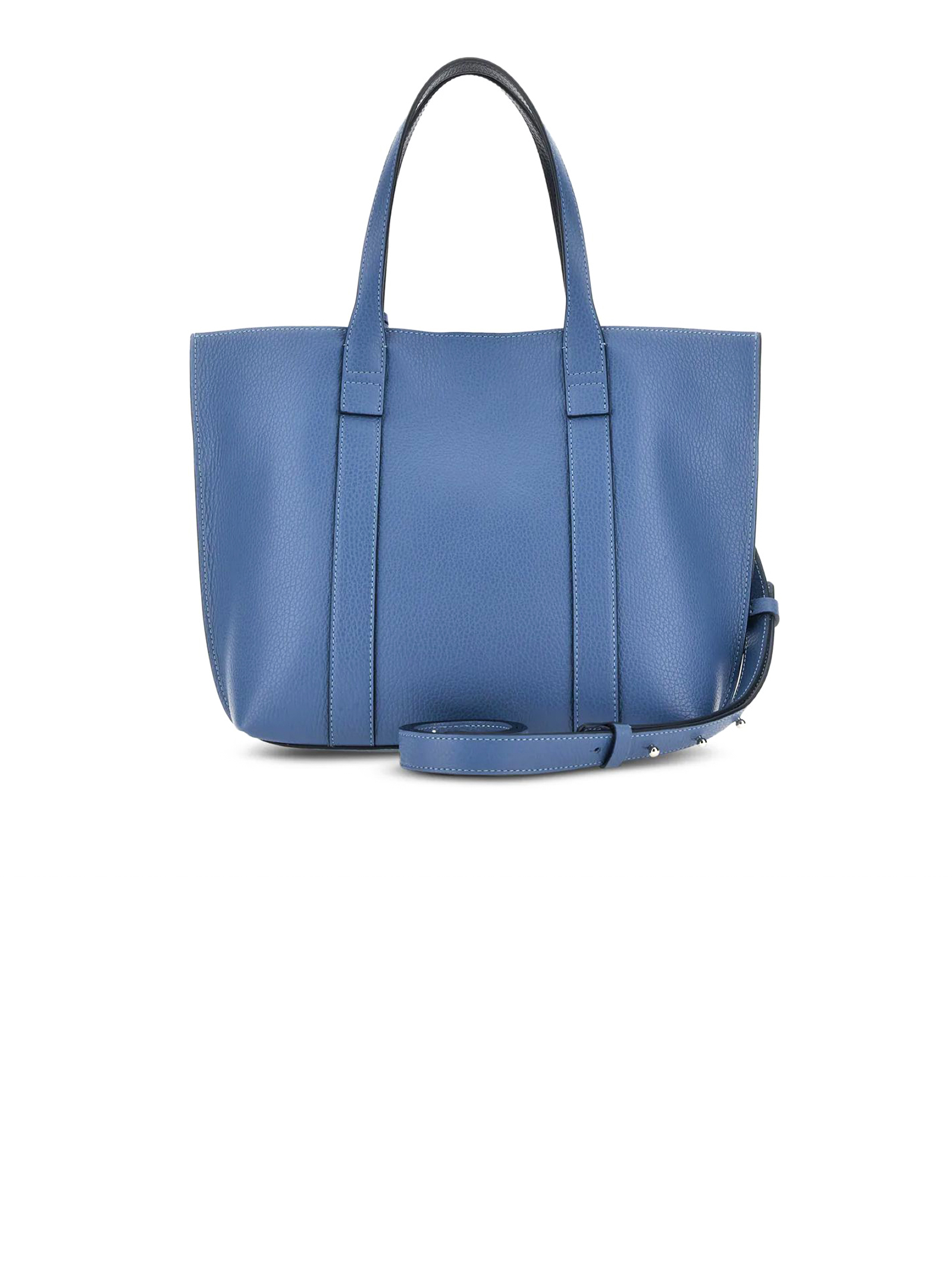 Hogan Script Small Blue Shopping Bag, Item made of leather, Hogan logo embossed, Dimensions: 35 x 23 x 11 cm, Fixed handles, Adjustable and removable shoulder strap, Magnetic button closure