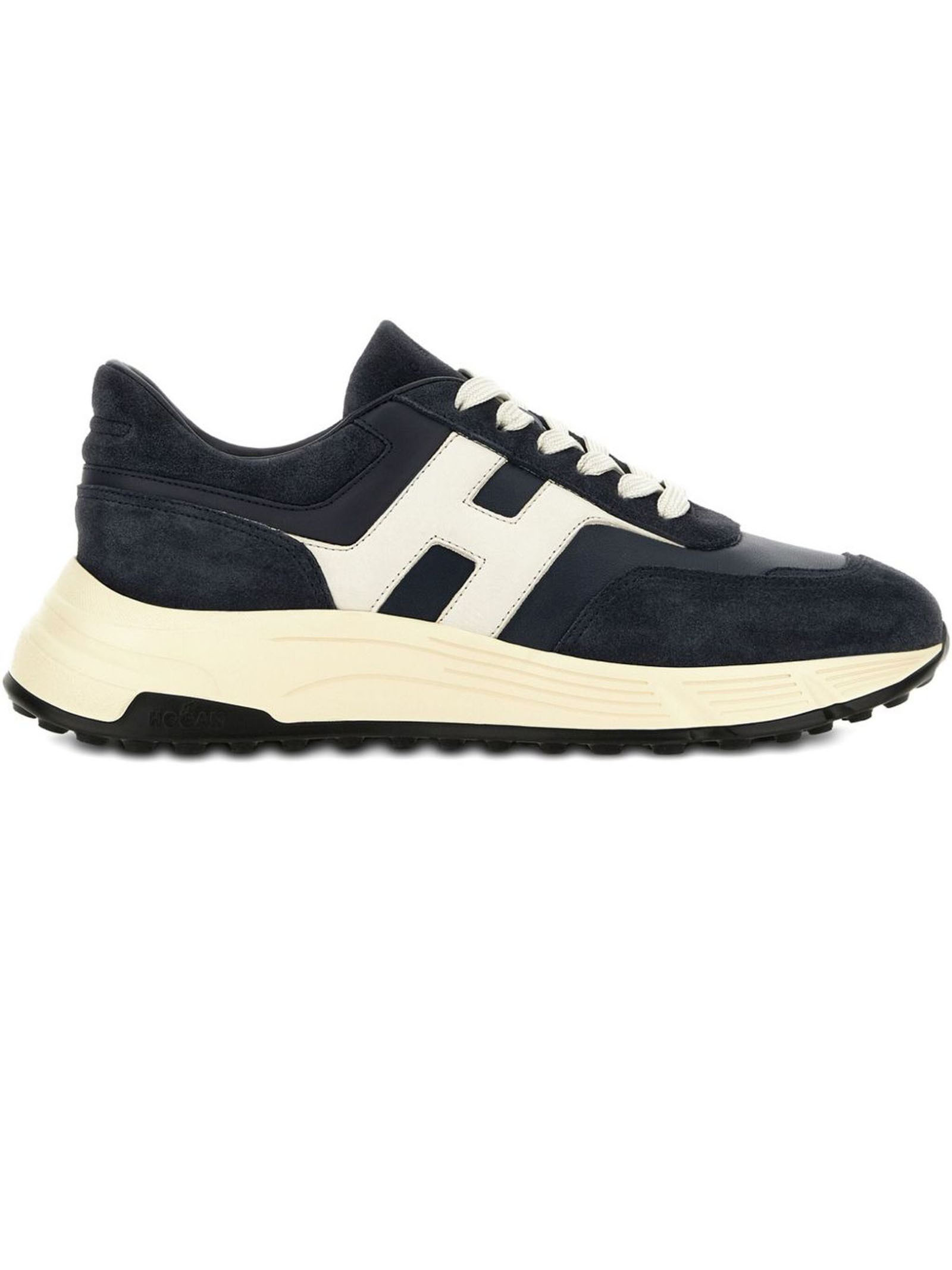midnight blue front lace-up fastening memory foam insole chunky rubber sole appliqué logo