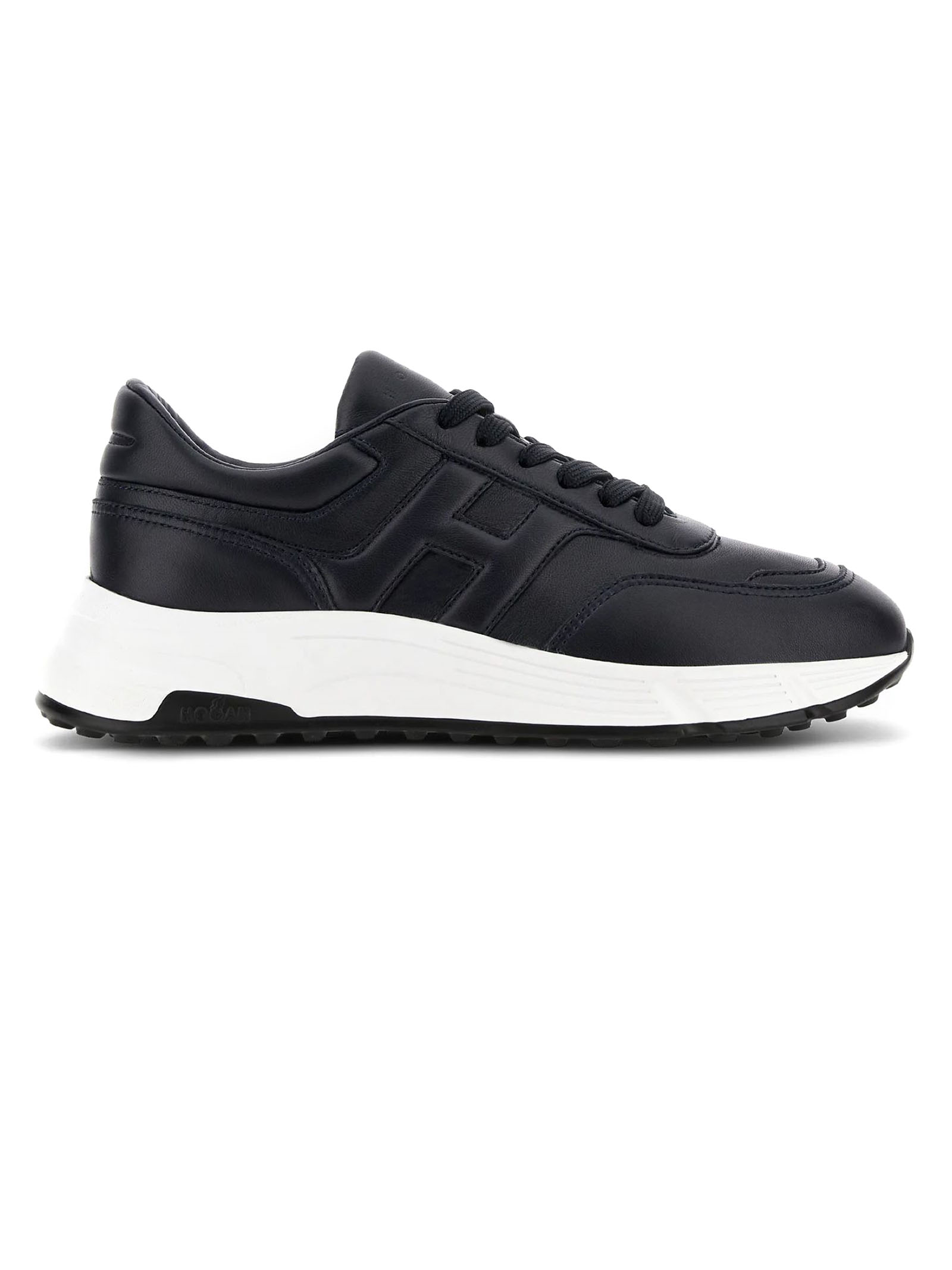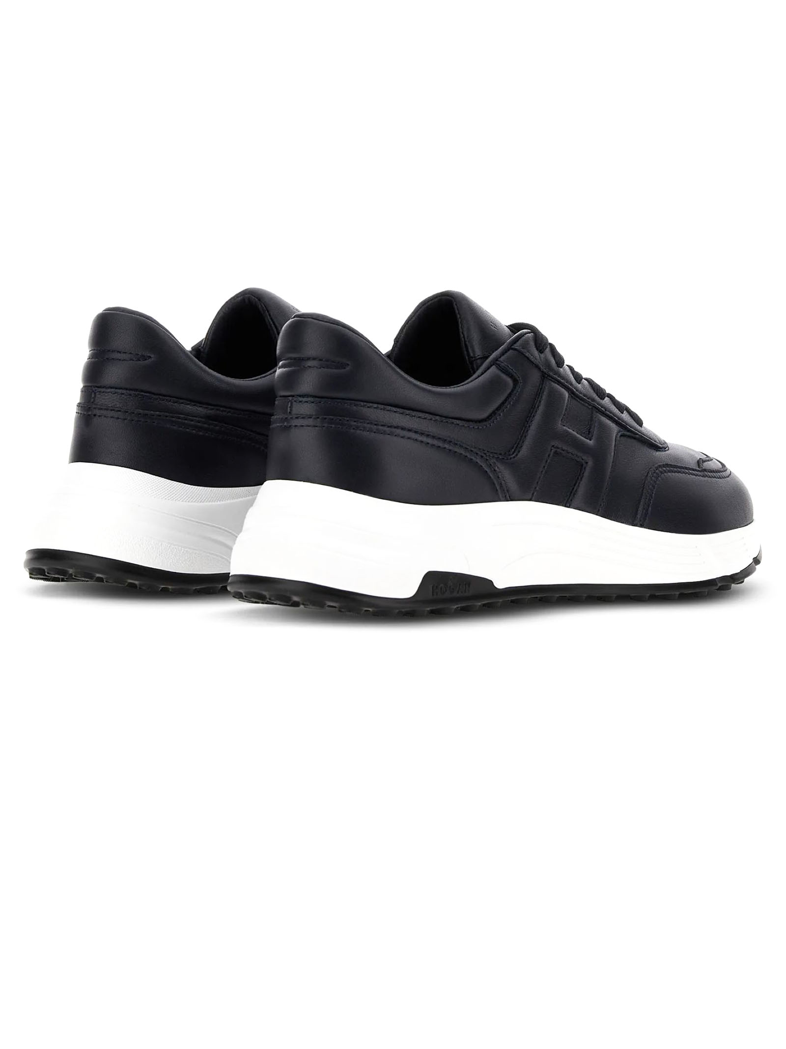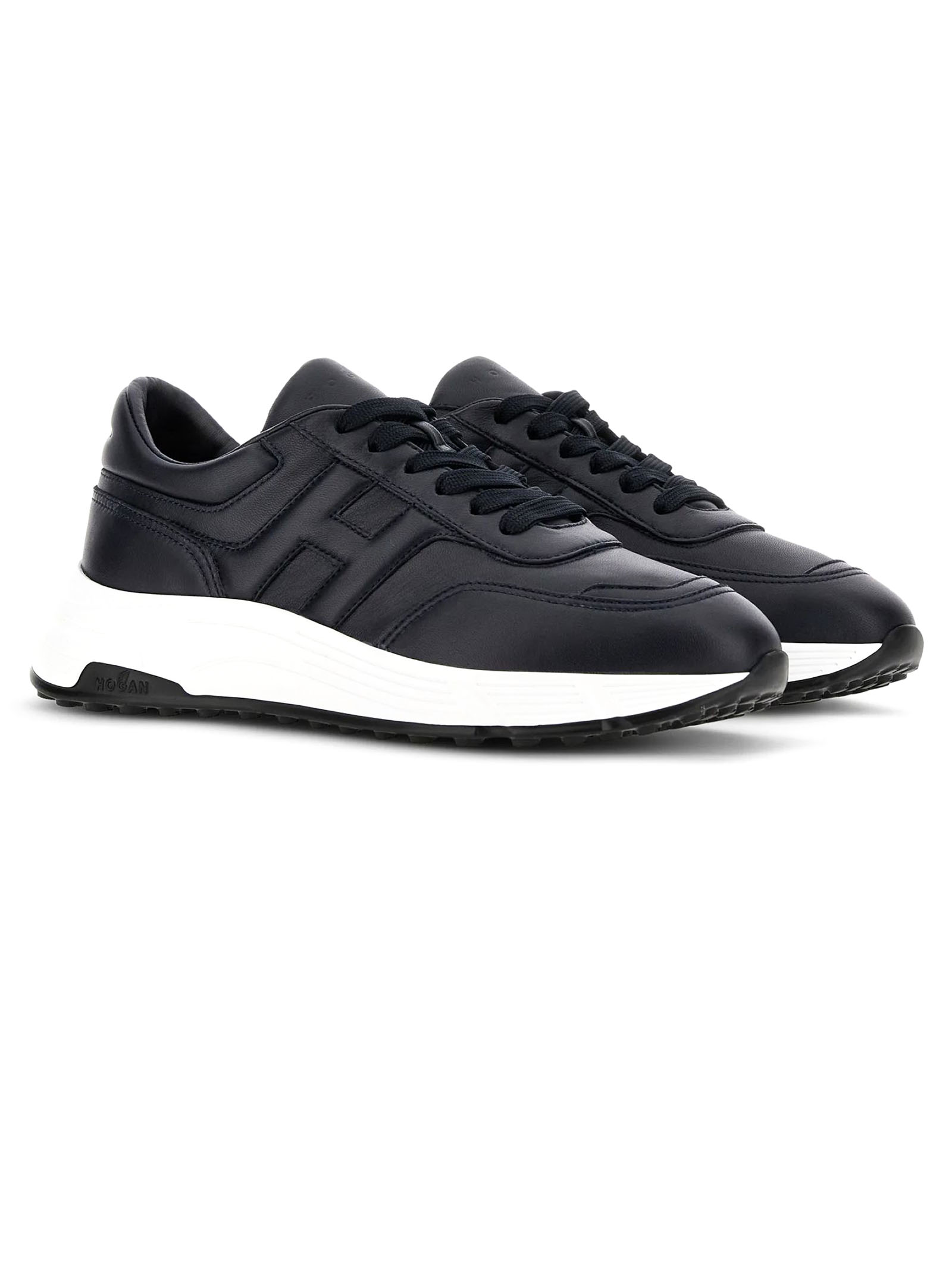 Hyperlight trainers in blue nappa leather, slanted H on the side, 8 mm memory foam insole, rubber sole, total height 4.5 cm