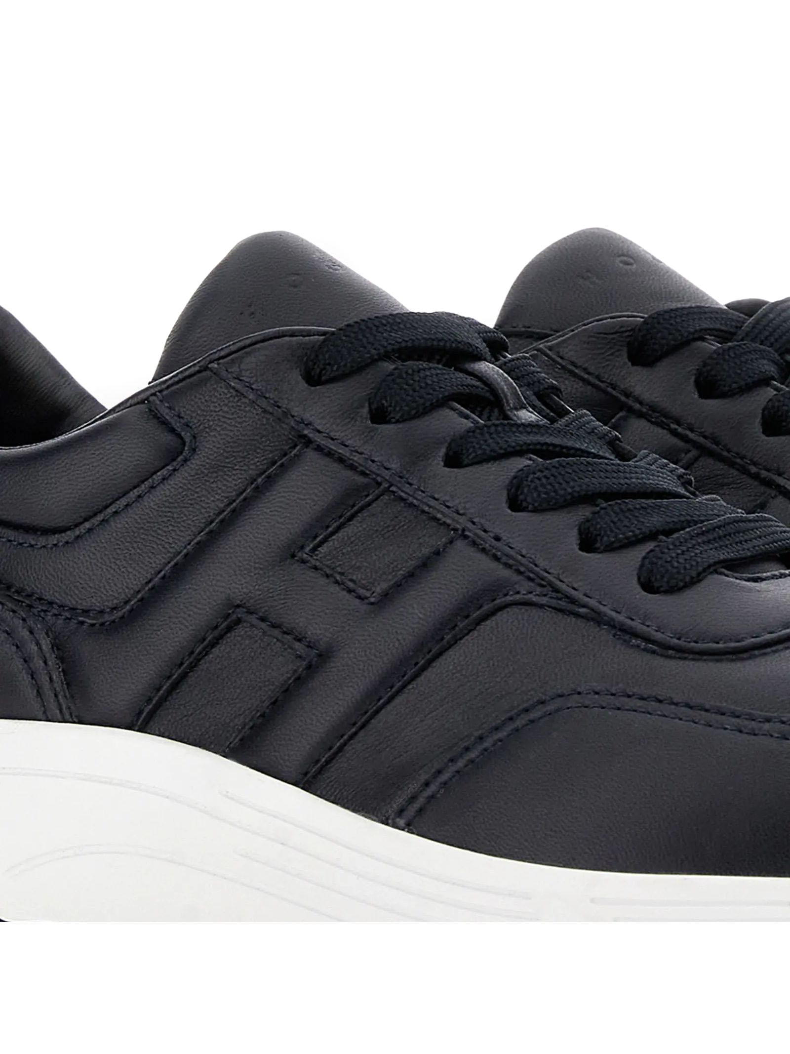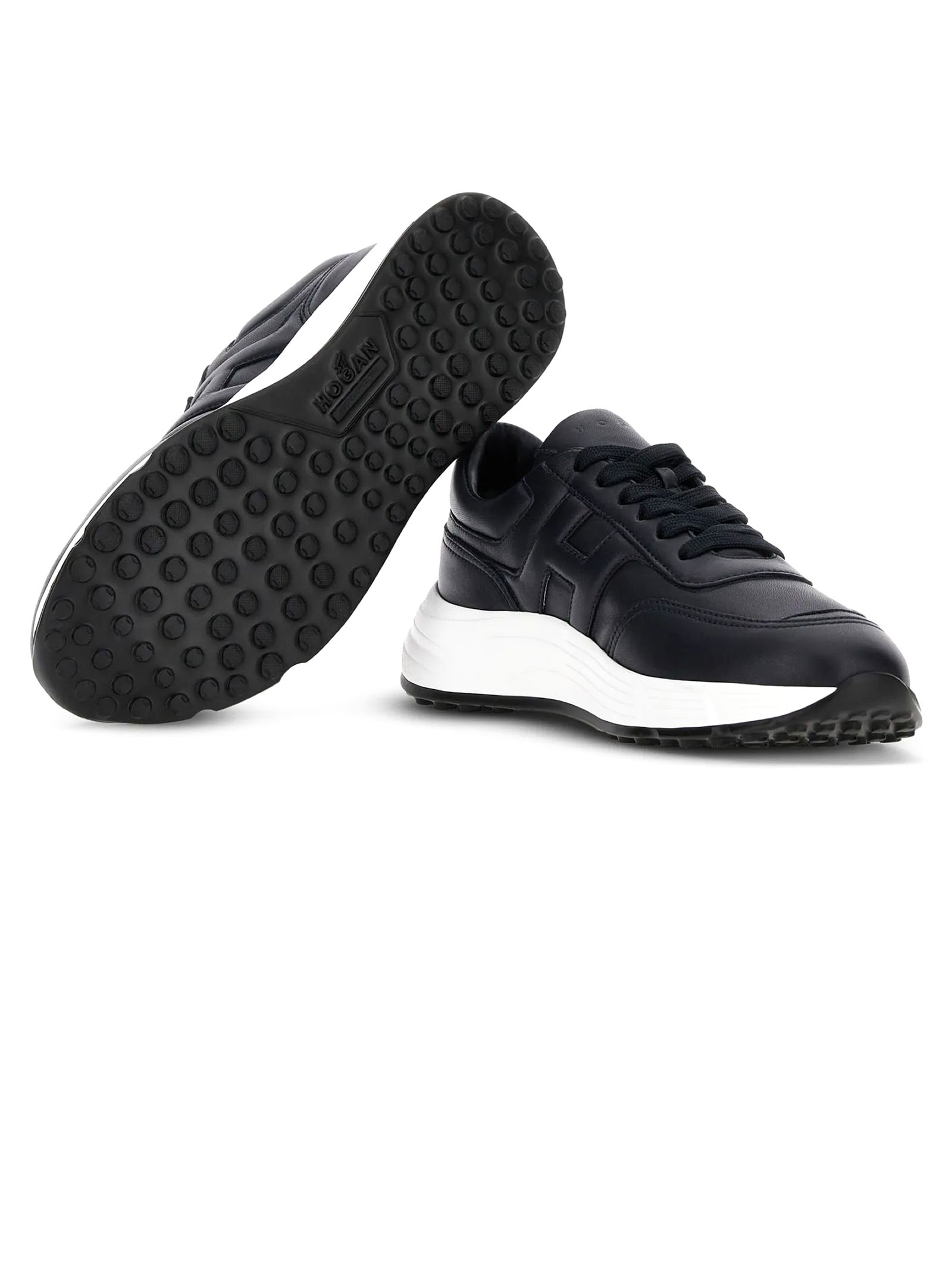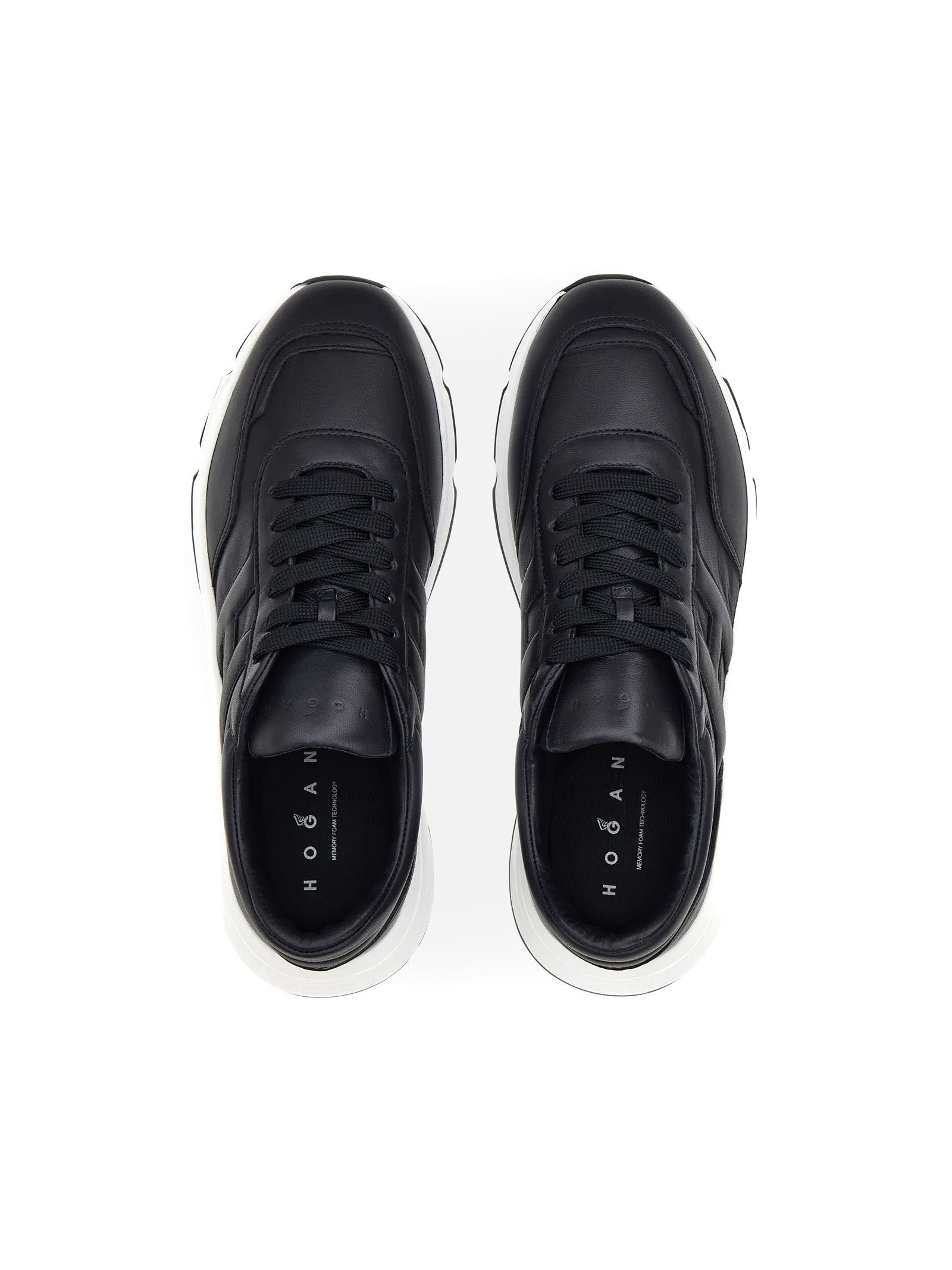 Hyperlight trainers in blue nappa leather, slanted H on the side, 8 mm memory foam insole, rubber sole, total height 4.5 cm