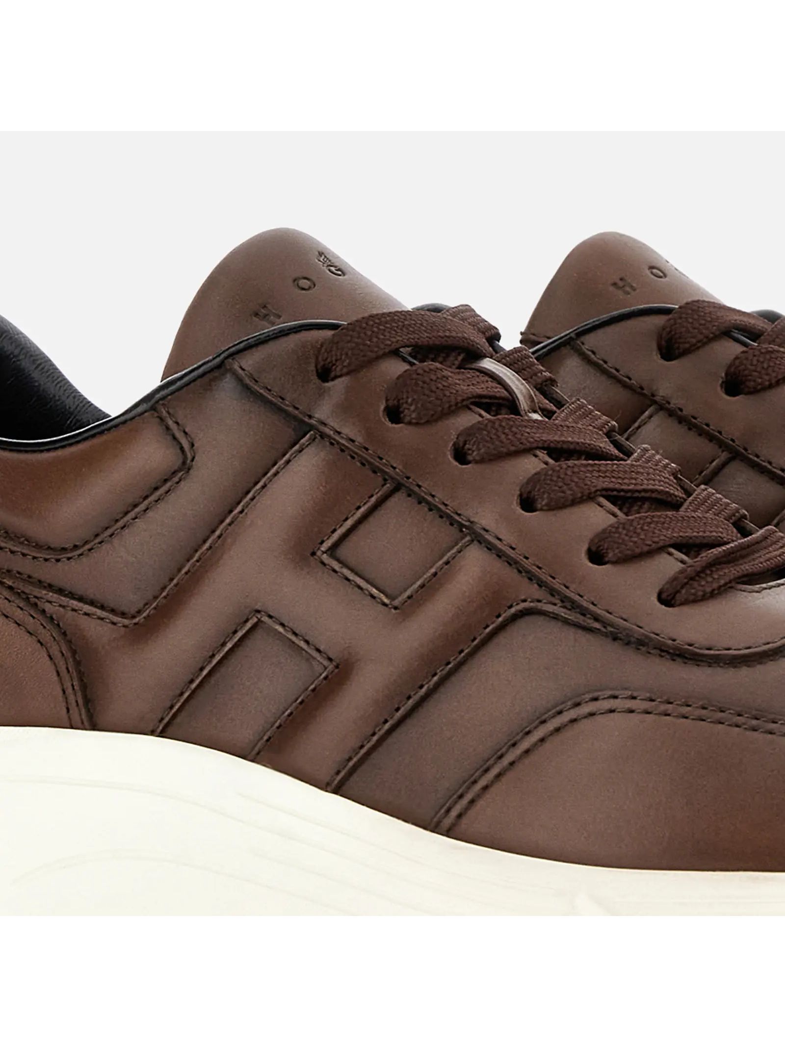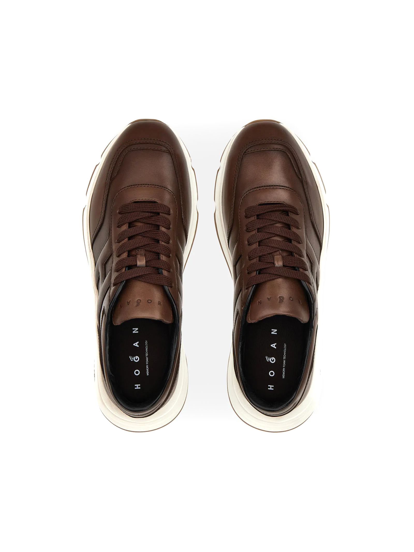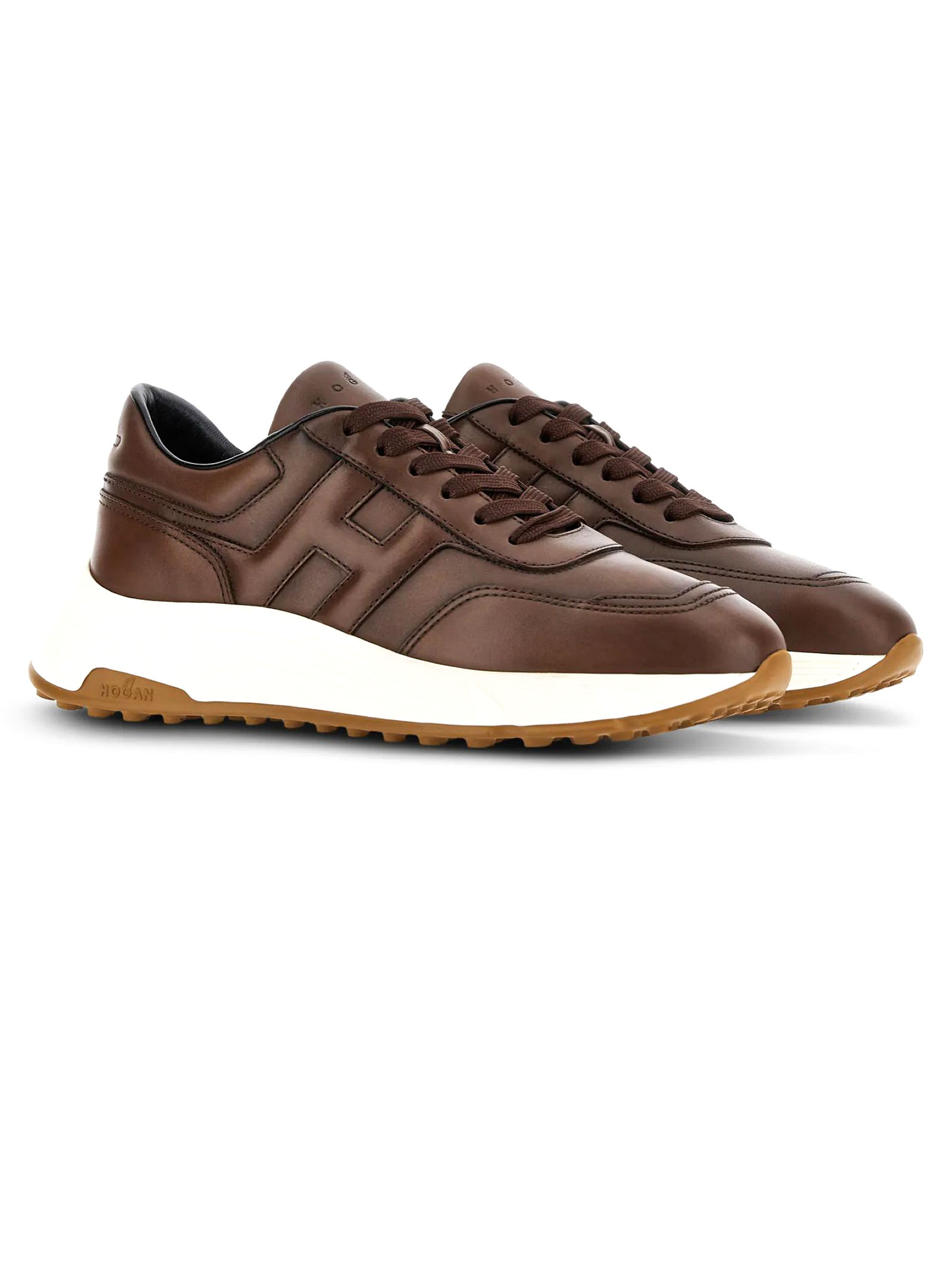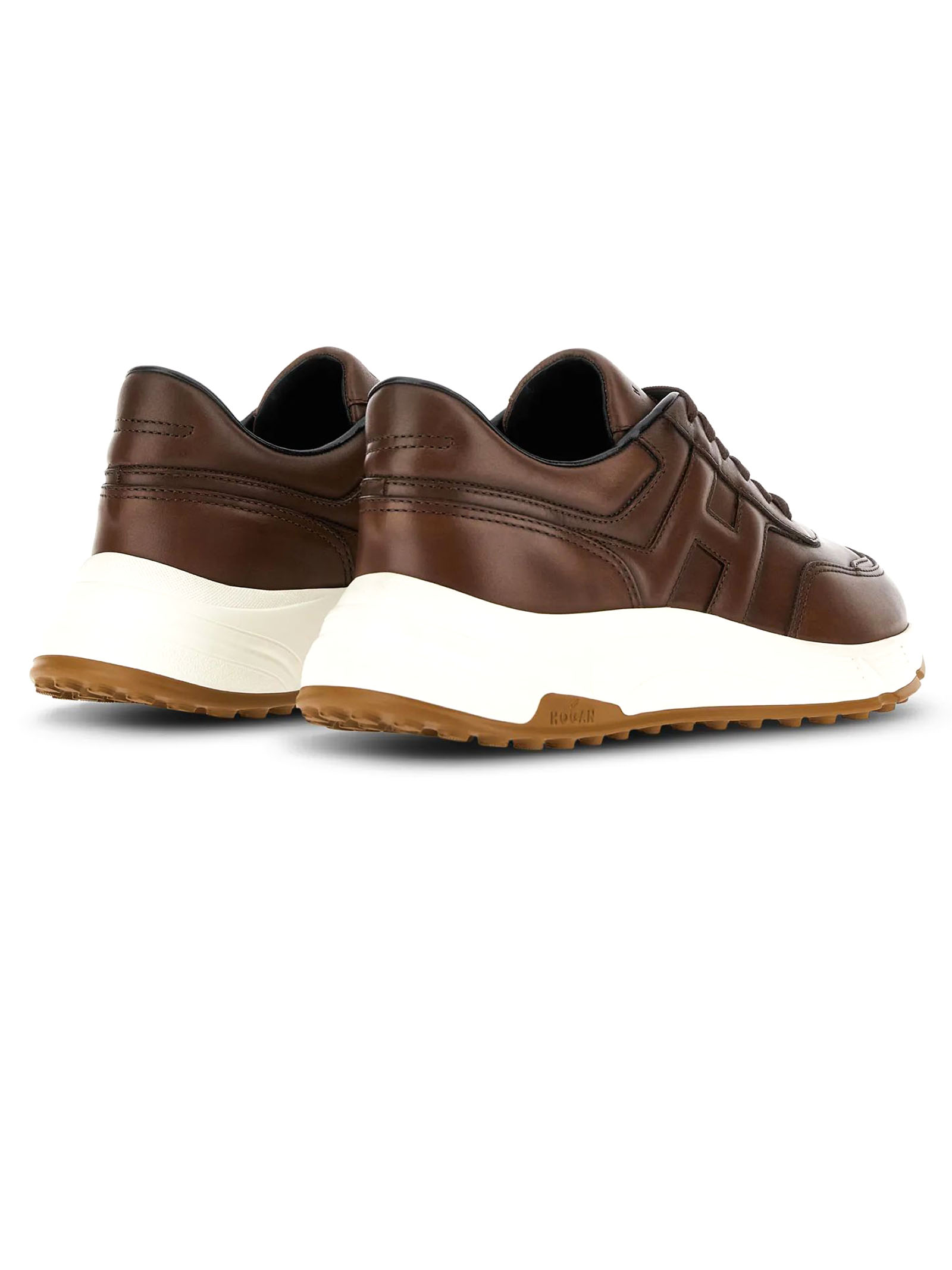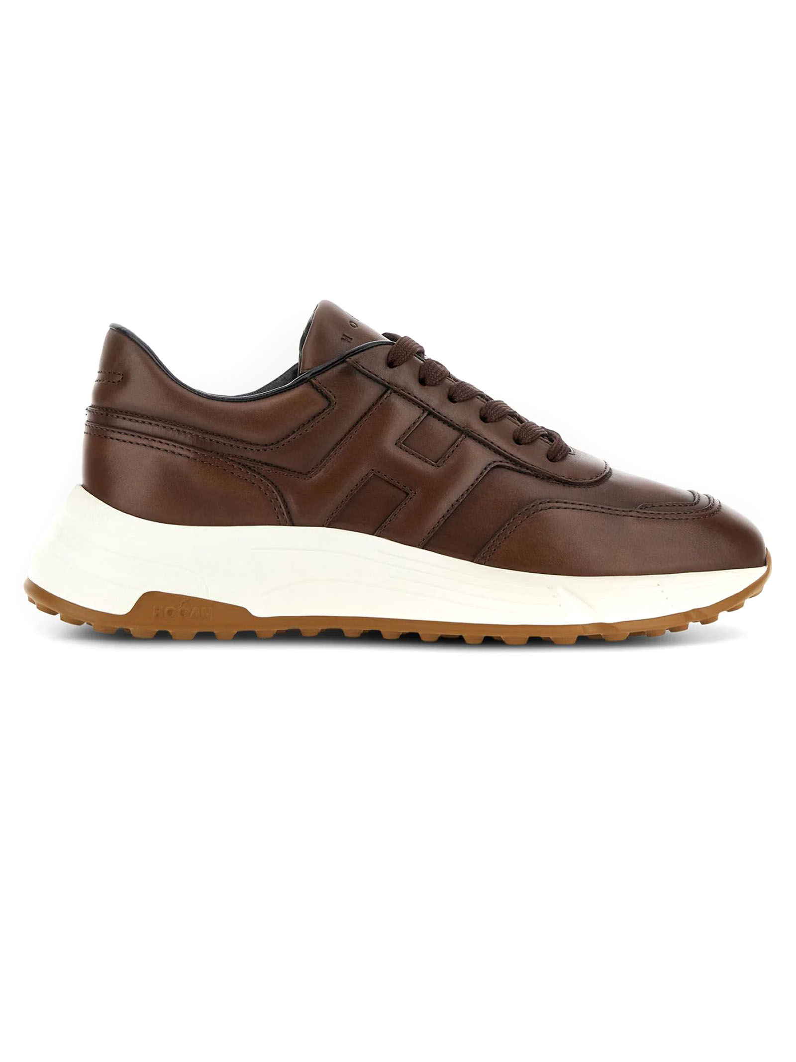 Hyperlight trainers in brown nappa leather, slanted H on the side, 8 mm memory foam insole, rubber sole, total height 4.5 cm