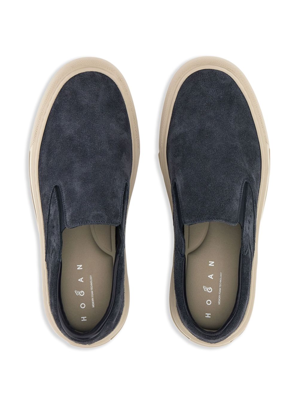 Slip-ons Hogan Rebel Blue, Suede upper, Hogan logo embossed on the side, Elastic inserts on the sides, Leather lining, Memory foam insole, Rubber sole, Total height 3.8 cm